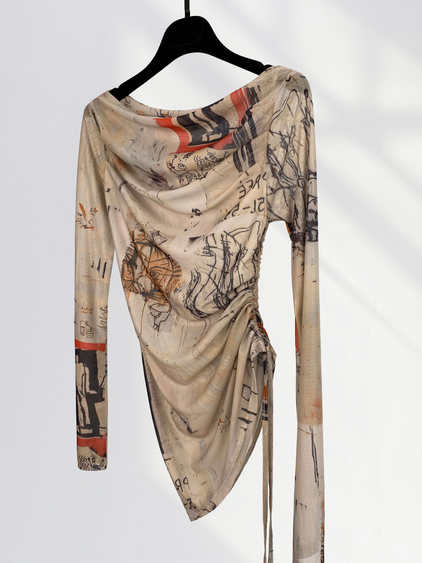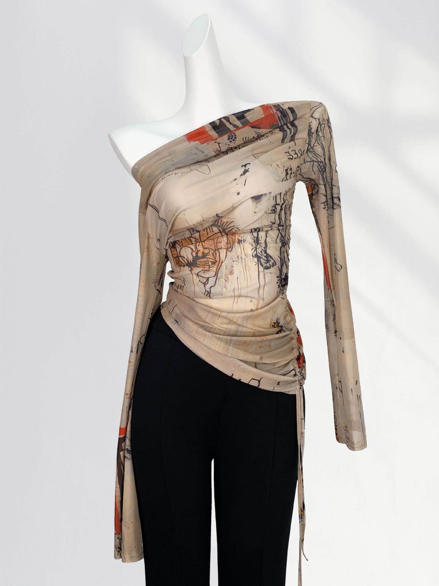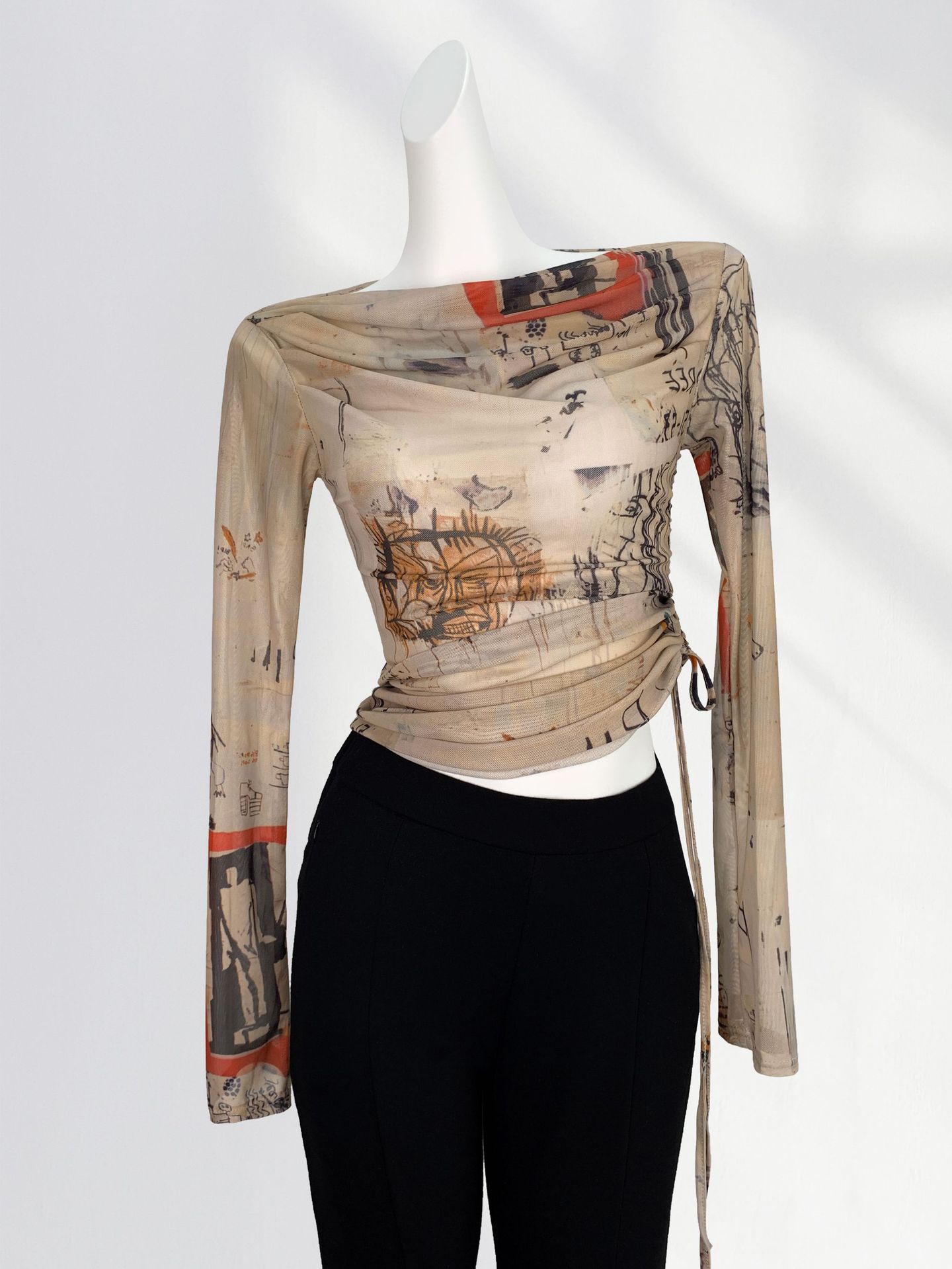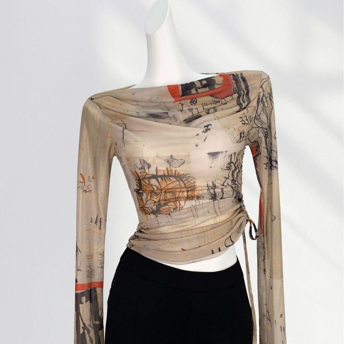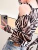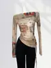 Camiseta básica de manga larga con cordón irregular de alta calidad para mujer, top de malla con hombros descubiertos para chica hot, camiseta con cordones de verano