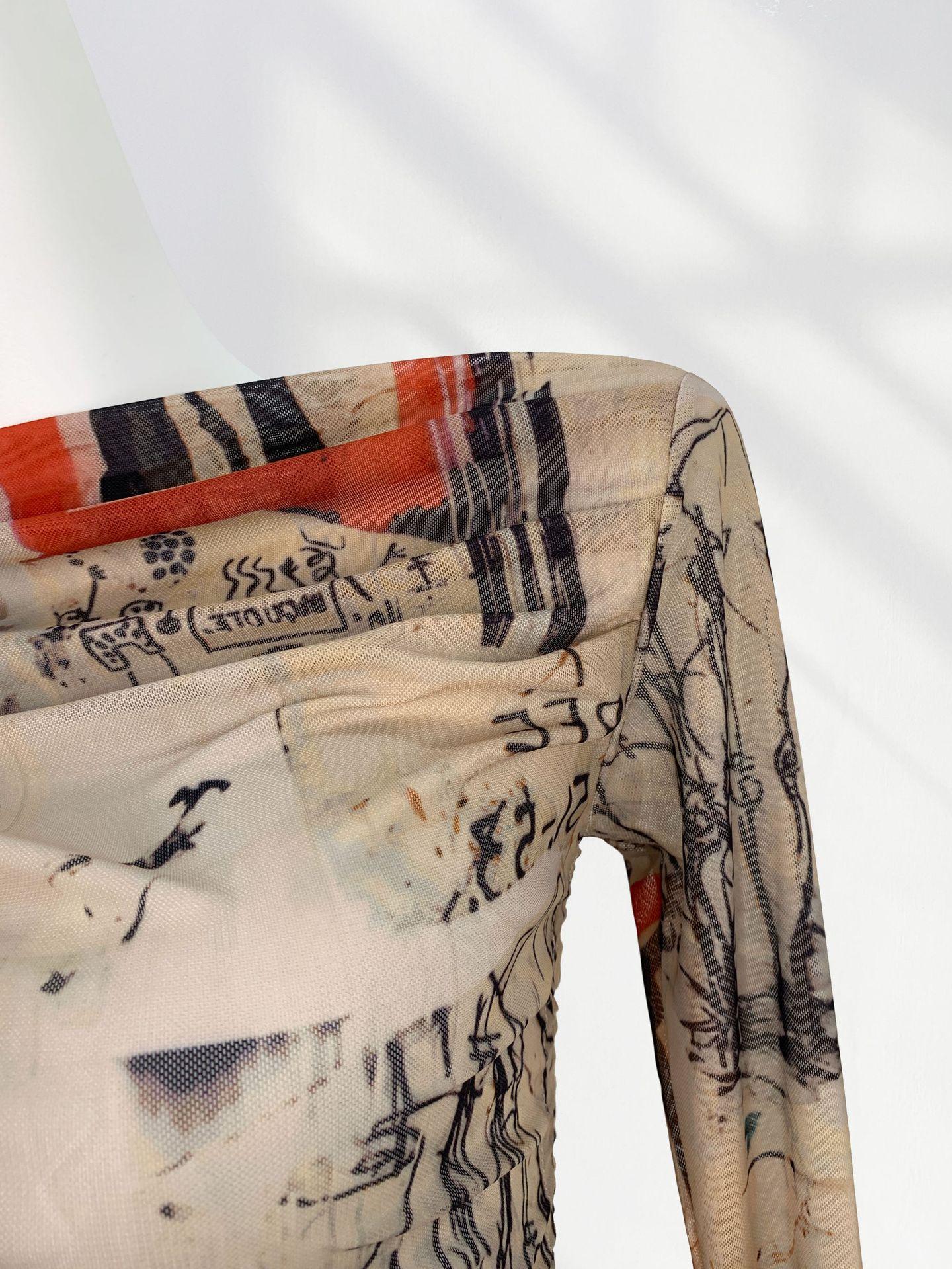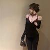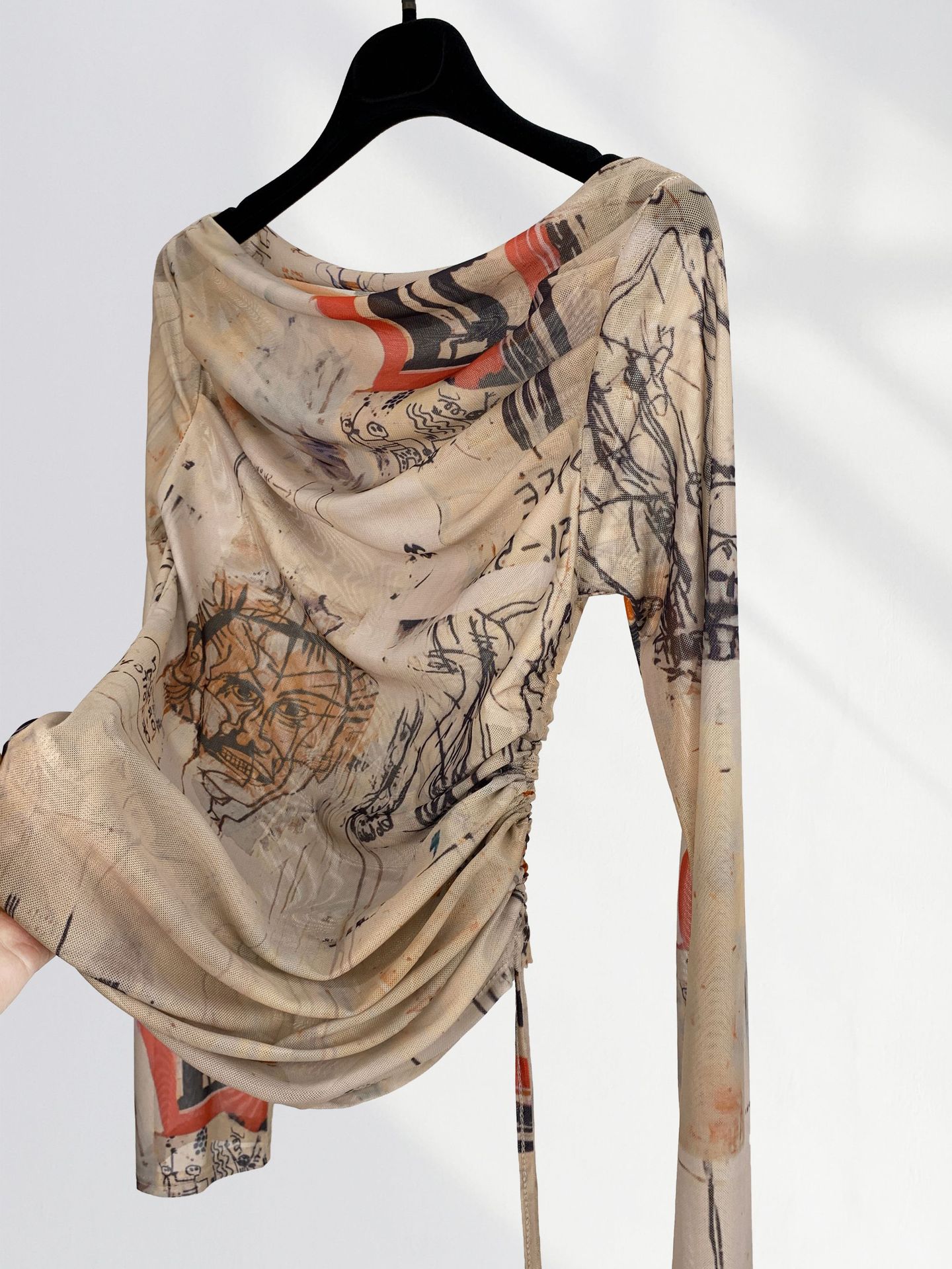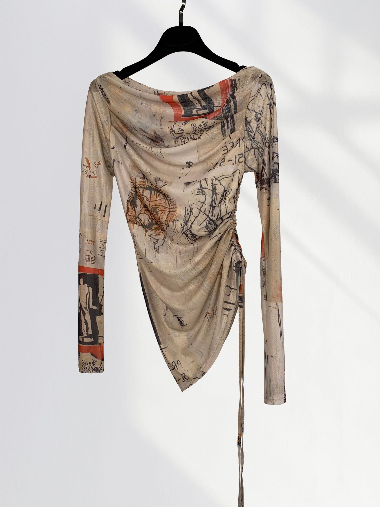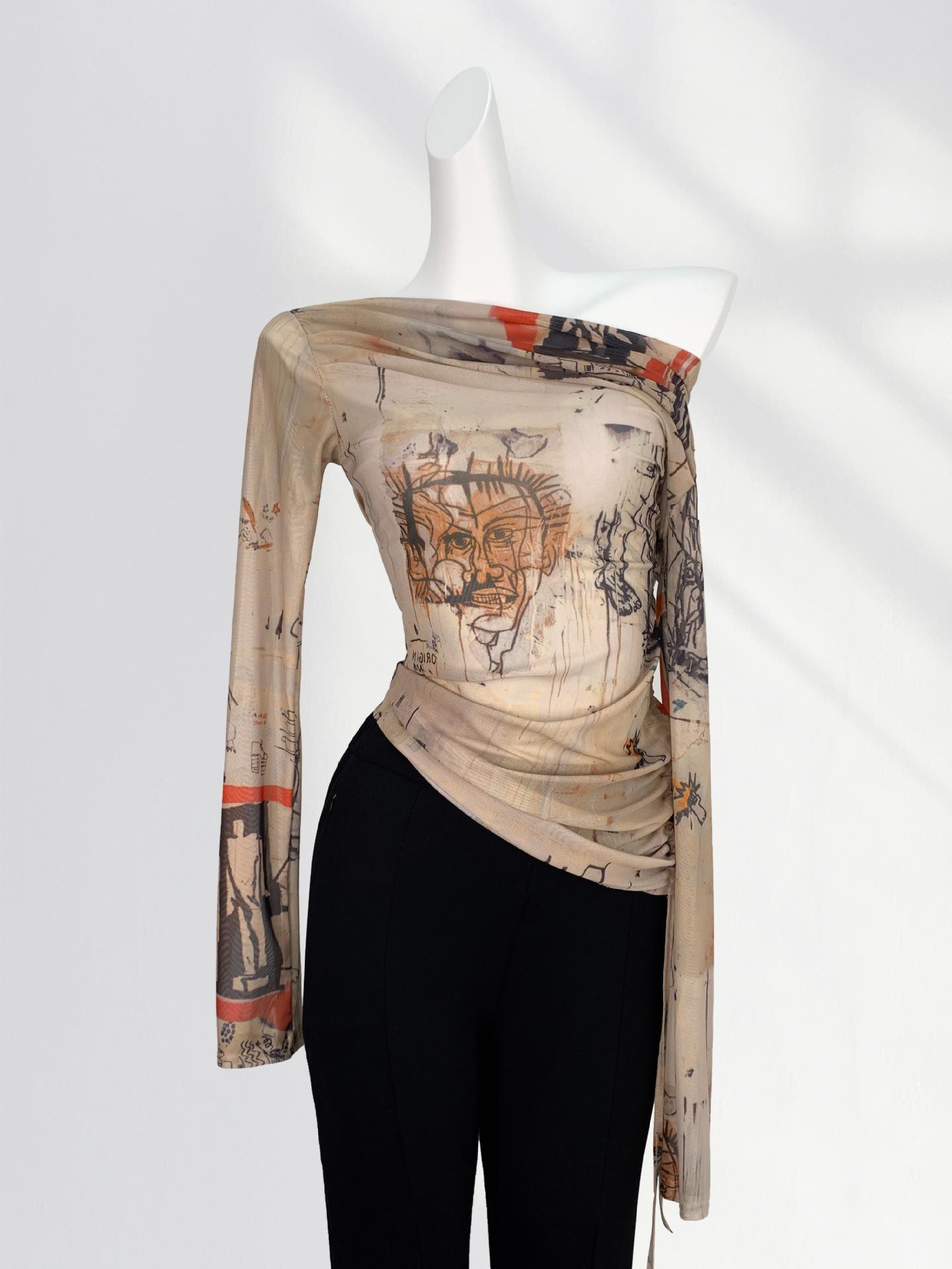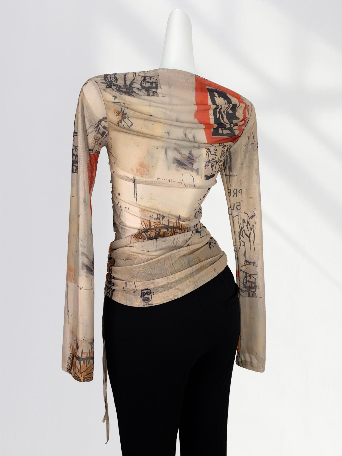 Camiseta básica de manga larga con cordón irregular de alta calidad para mujer, top de malla con hombros descubiertos para chica hot, camiseta con cordones de verano