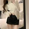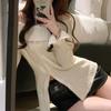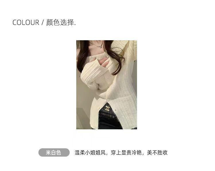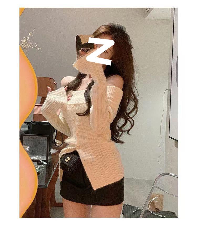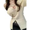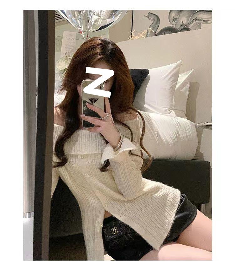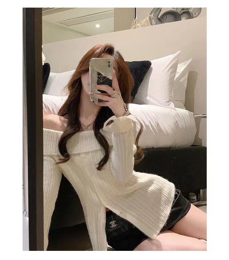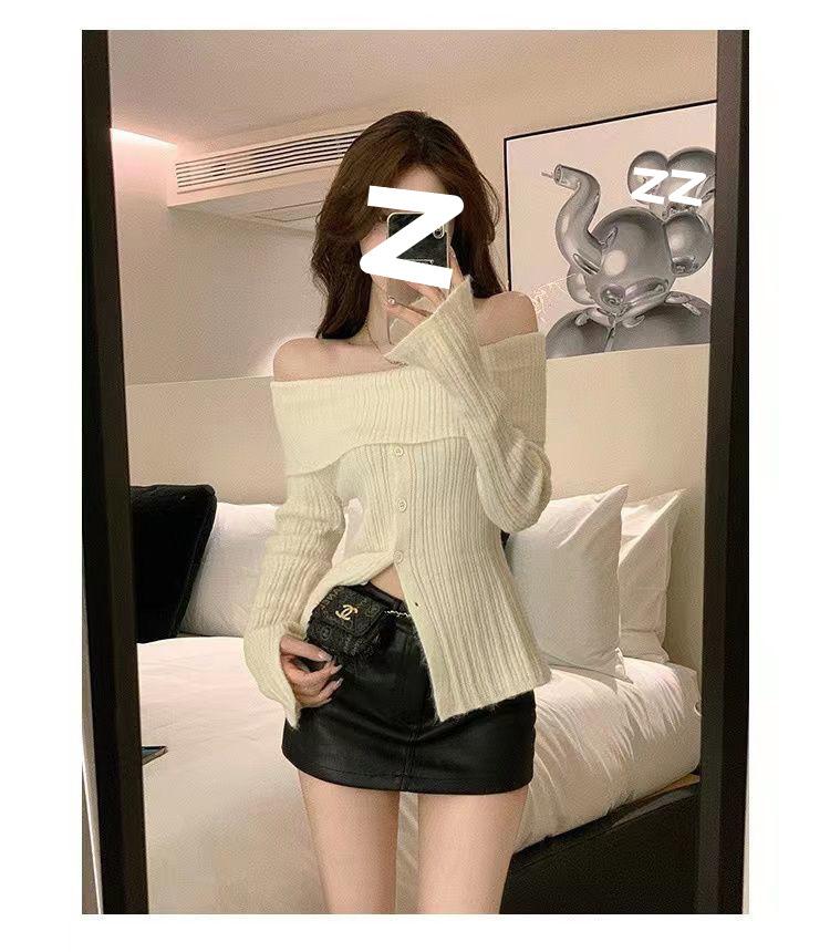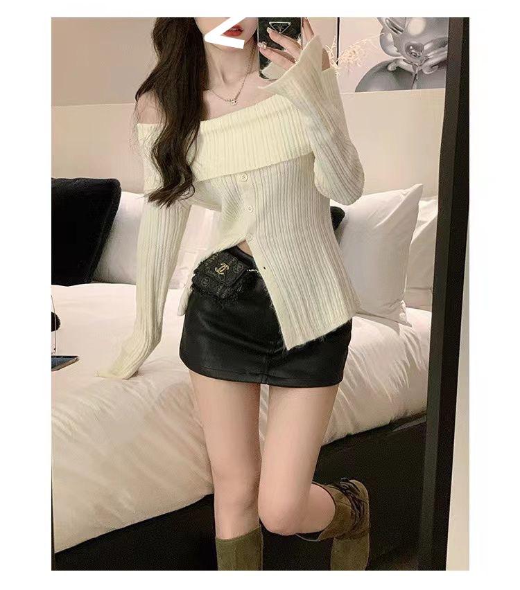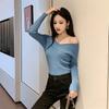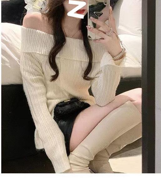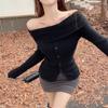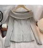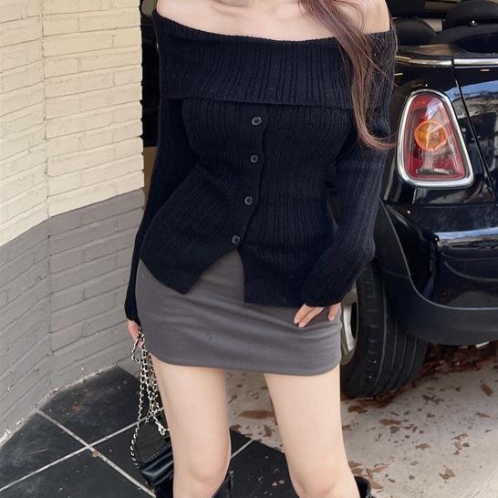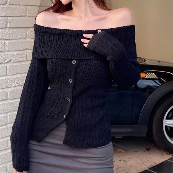 Suéter de manga larga fino con hombros descubiertos para mujer, suéter adelgazante con abertura irregular único de principios de otoño de 2023
