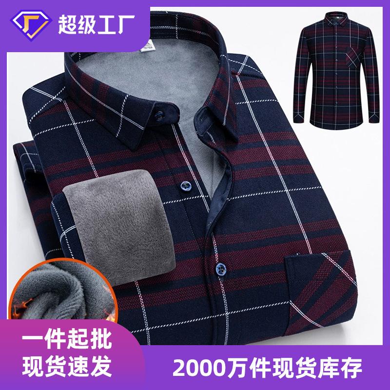 Mercancía de Fábrica Seleccionada Cuidadosamente Camisa a Cuadros Gruesa Cepillada con Forro Polar para Hombre Camisa de Manga Larga Moderna para Hombre Maduro y Joven Parte Superior Cálida Otoño e Invierno
