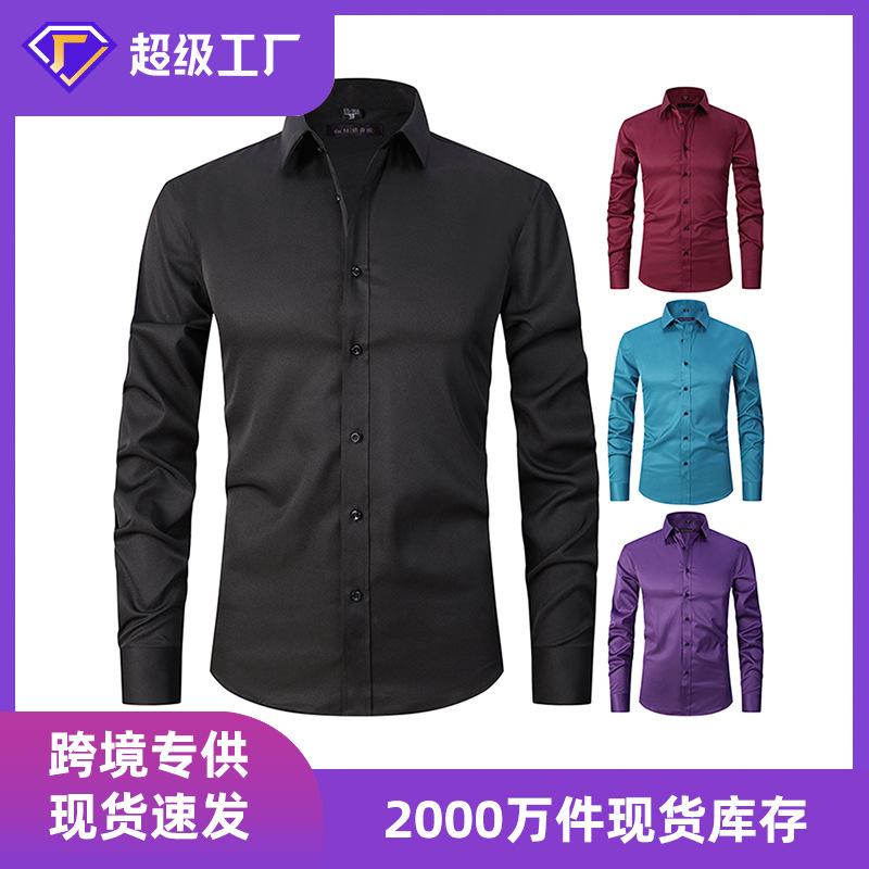 Camisa elástica en cuatro direcciones de venta caliente transfronteriza Primavera/Verano para hombre de manga larga de venta caliente sin costuras sin planchado casual de negocios camisa blanca