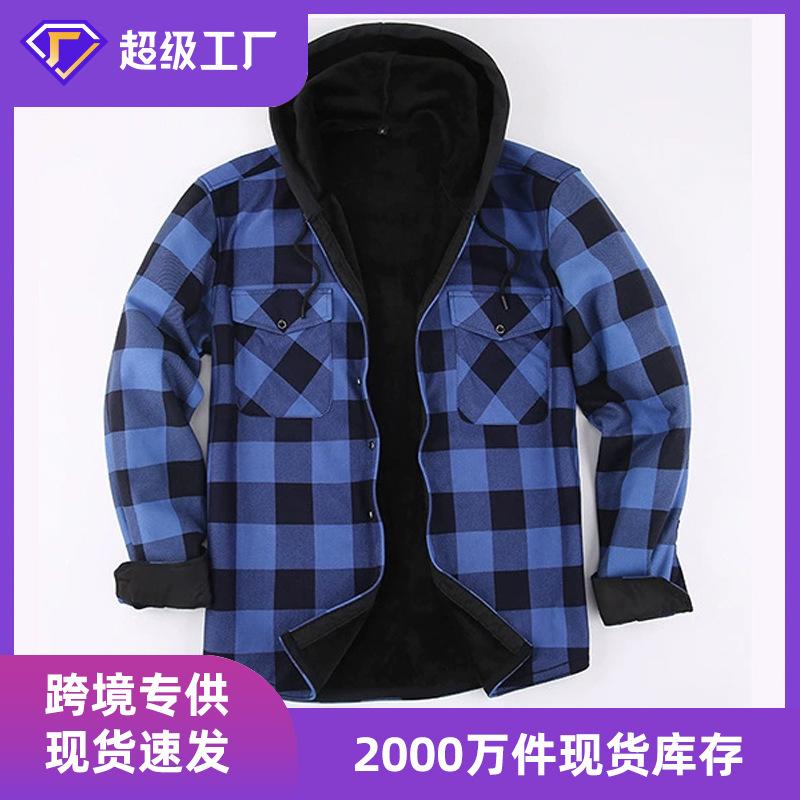Sudadera con capucha Comercio exterior Nuevo para hombre Capa Talla extra Cálida Camisa de cuadros Otoño/Invierno Forrado de vellón Grueso Top Manga larga Camisa cálida