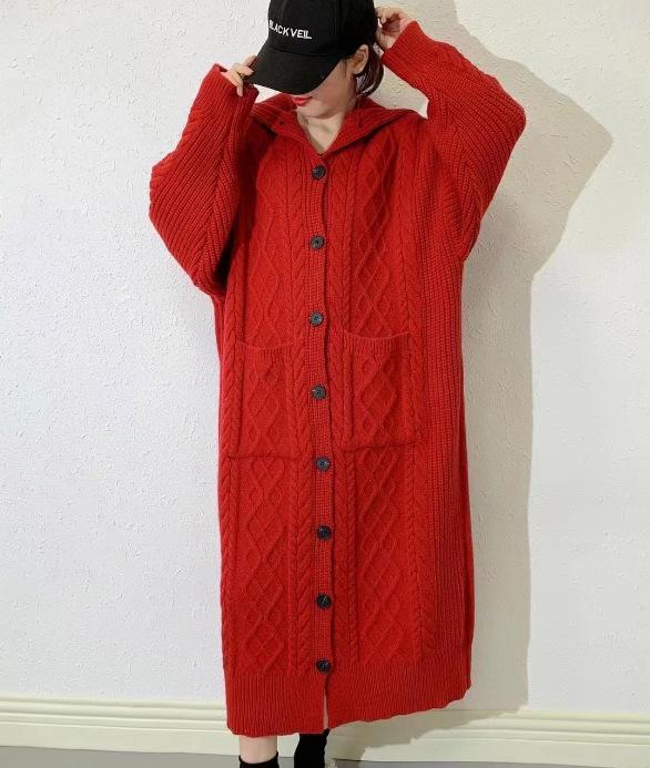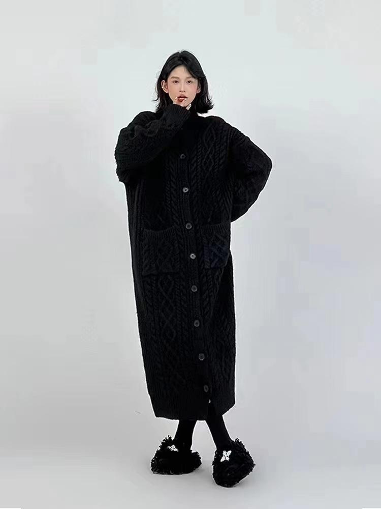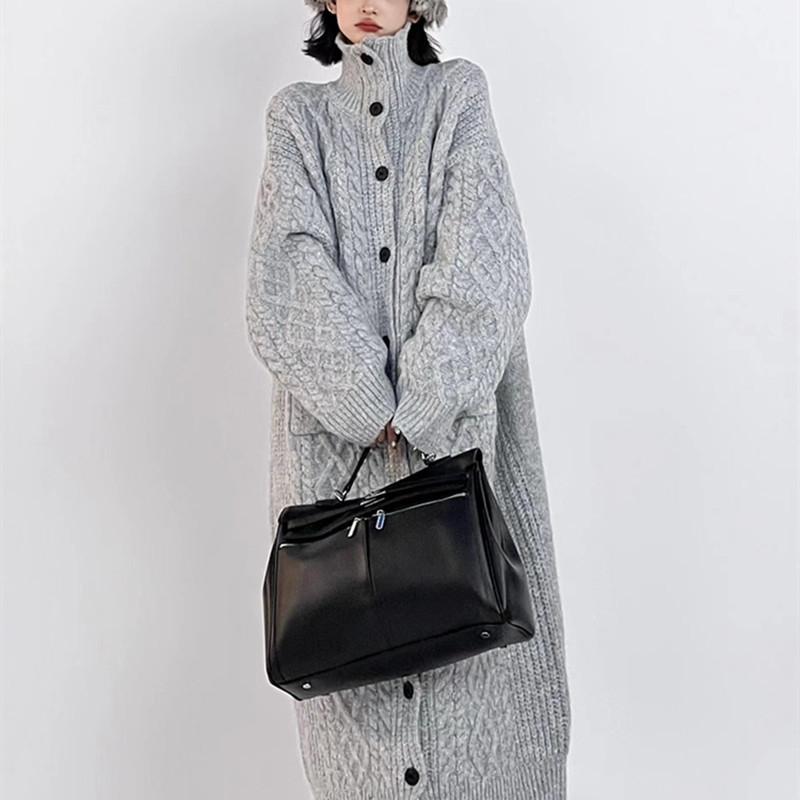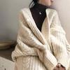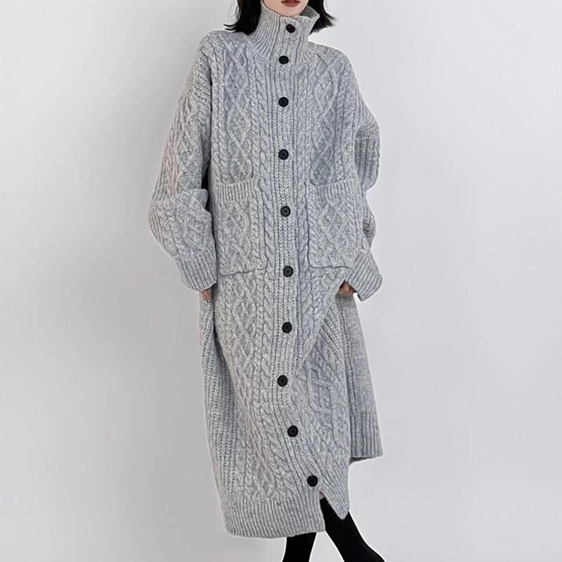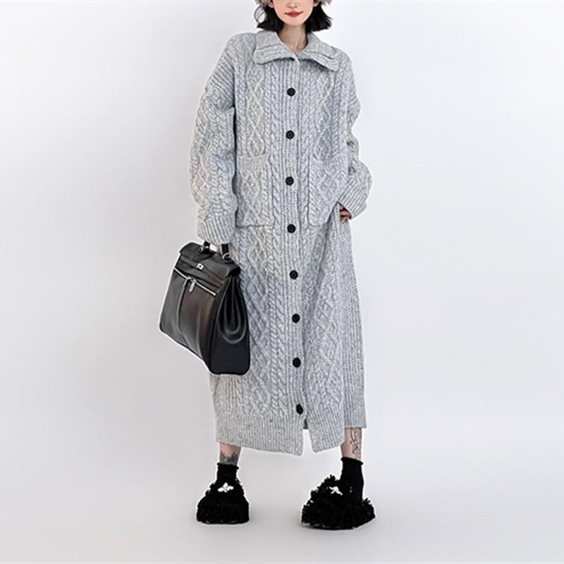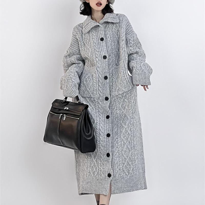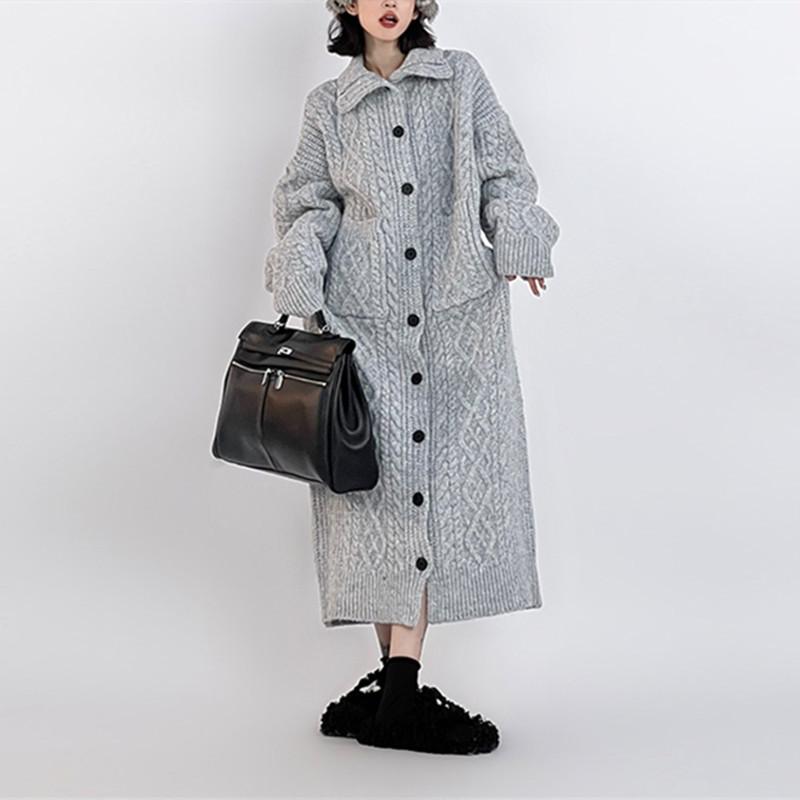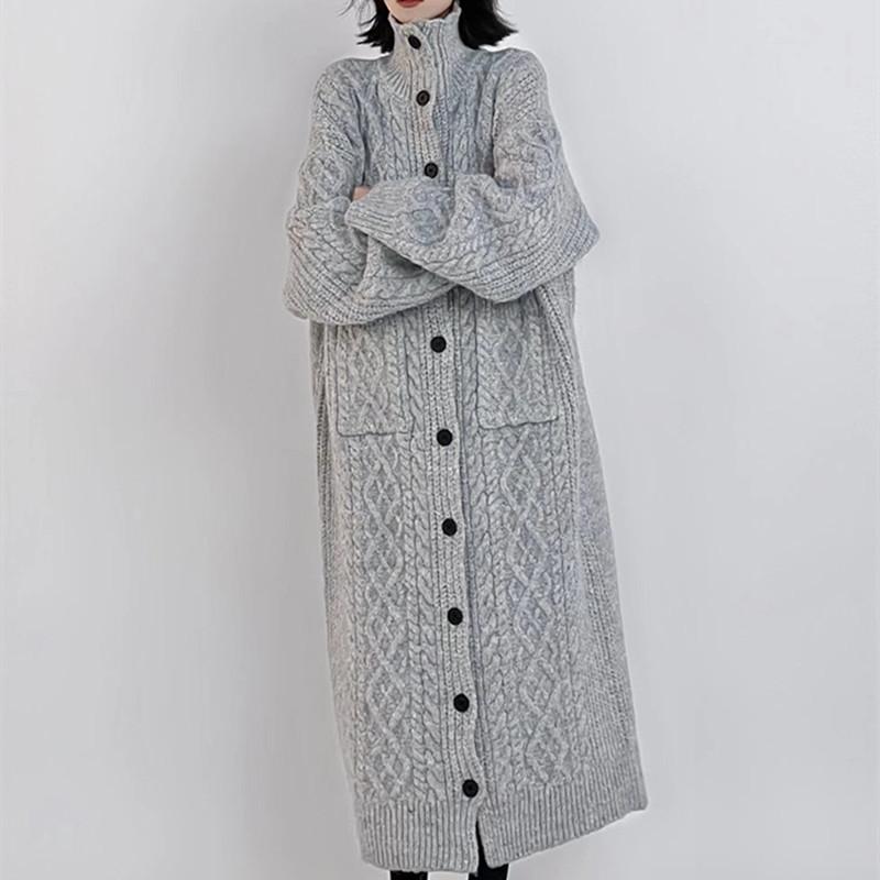 Suéter tipo cárdigan de otoño e invierno para mujer, abrigo informal de alta calidad que combina con todo, holgado, con rombos, abrigo exterior largo de punto
