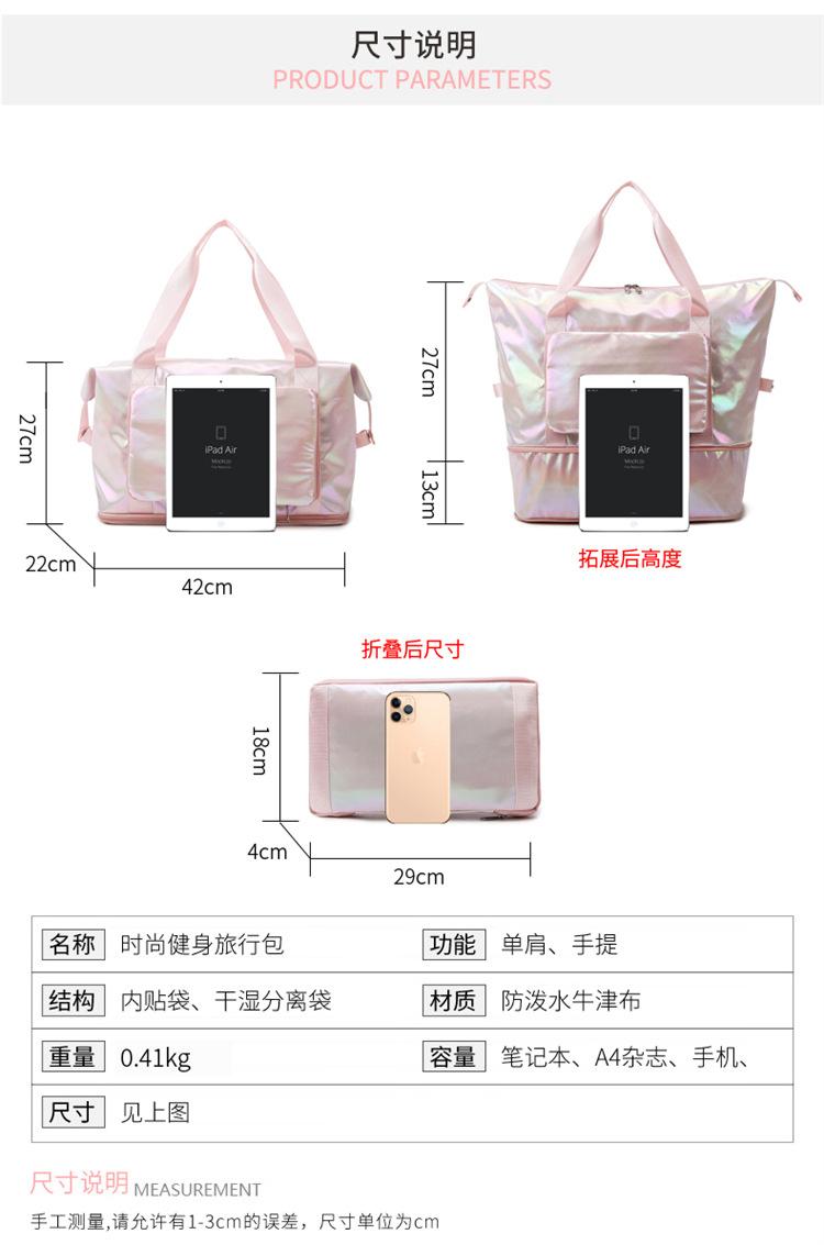 Bolsa de viaje de corta distancia para mujer, portátil, para viajes de negocios, de gran capacidad, para fitness, ligera, para deportes, pequeña, para equipaje, para viajes de ocio y almacenamiento