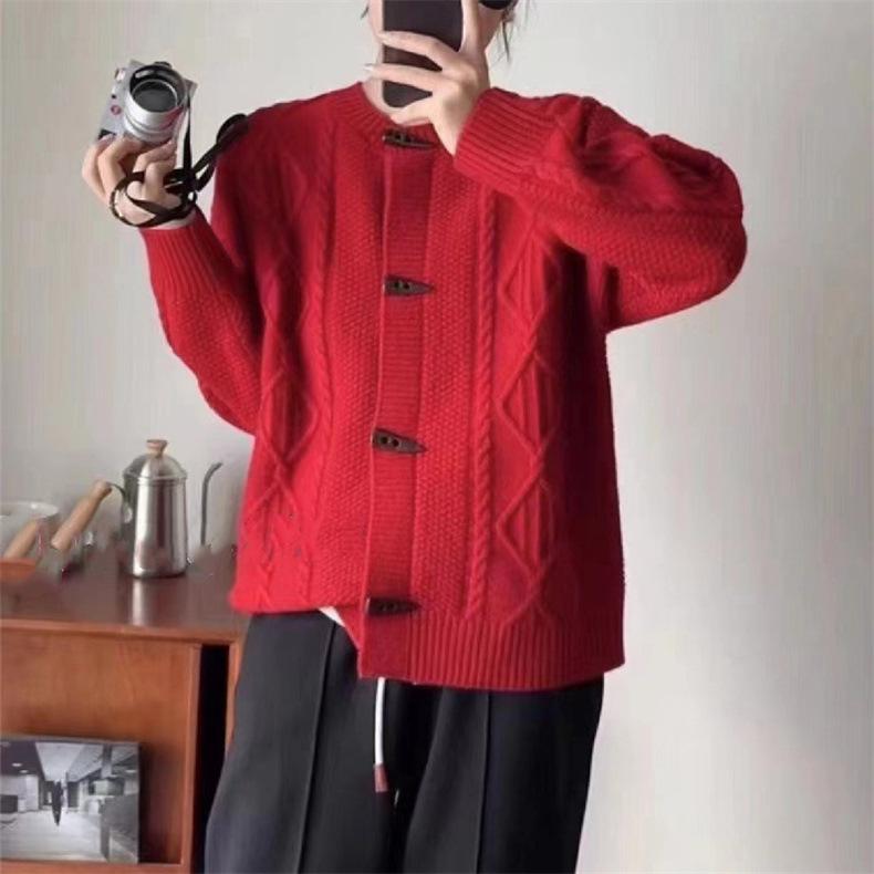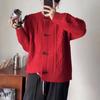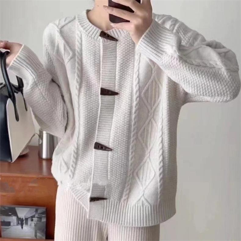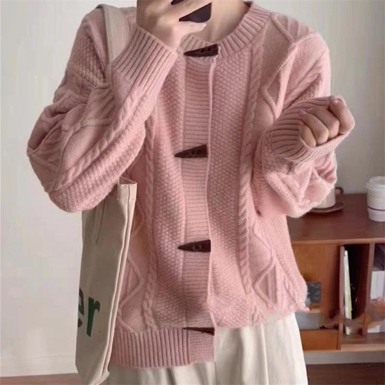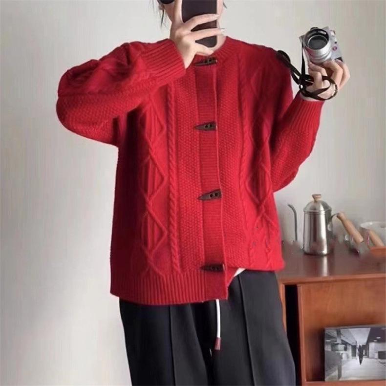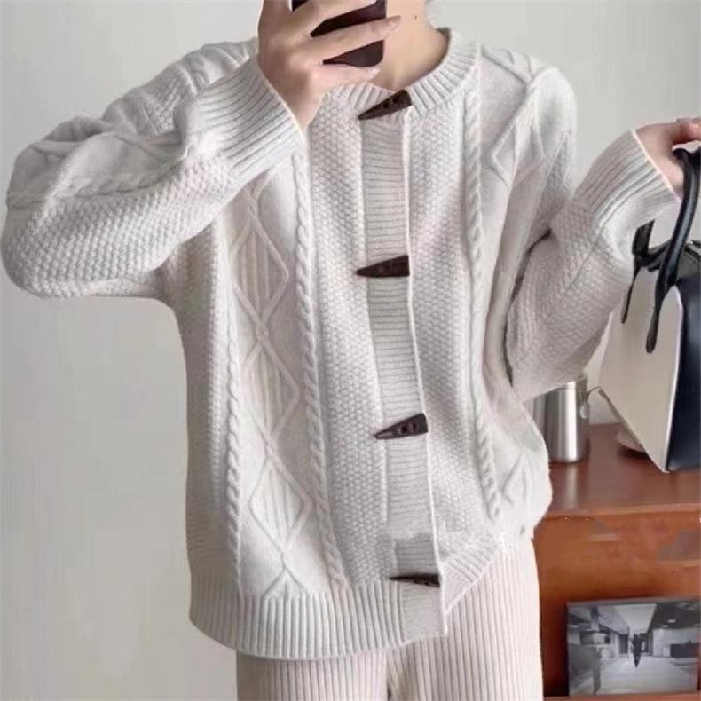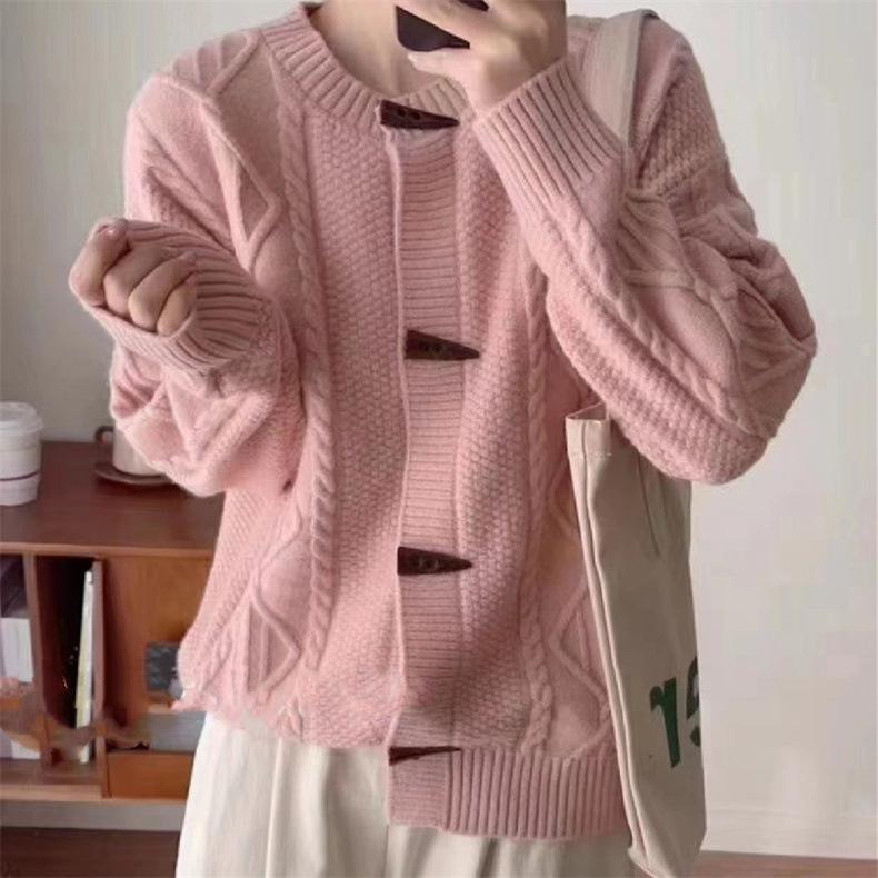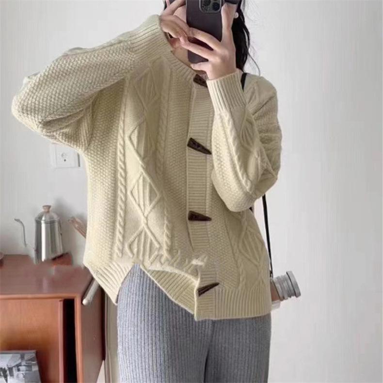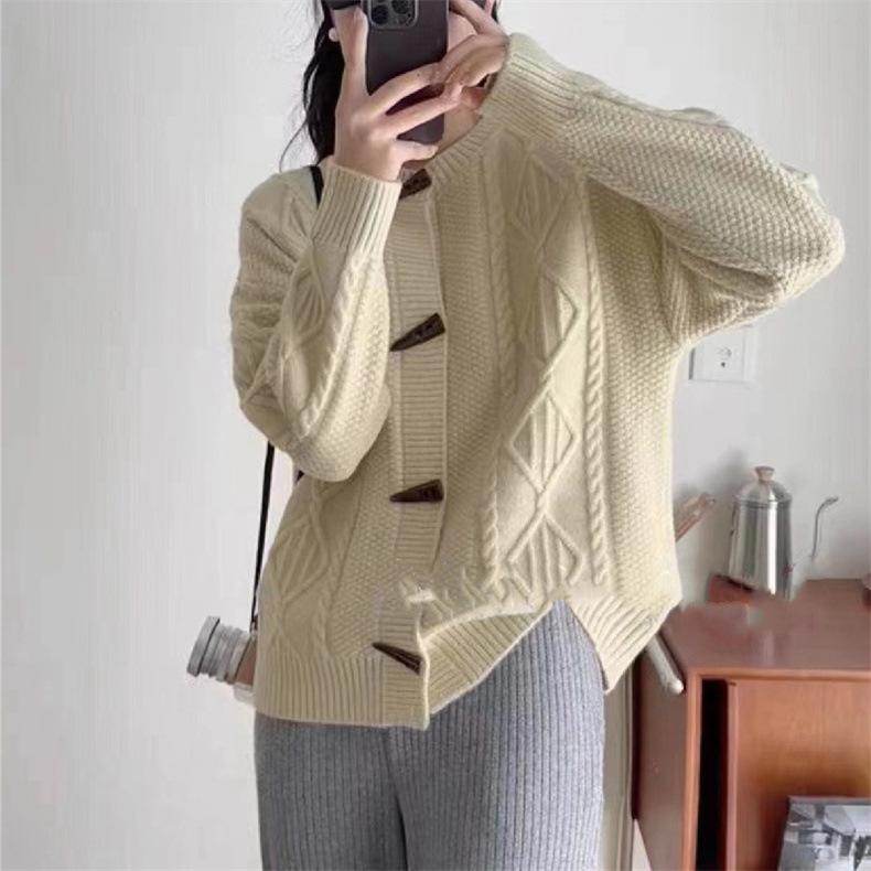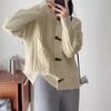 Suéter retro con giro perezoso para mujer, cárdigan de punto con diseño holgado y hebilla de cuerno, novedad de otoño e invierno