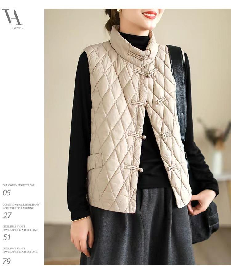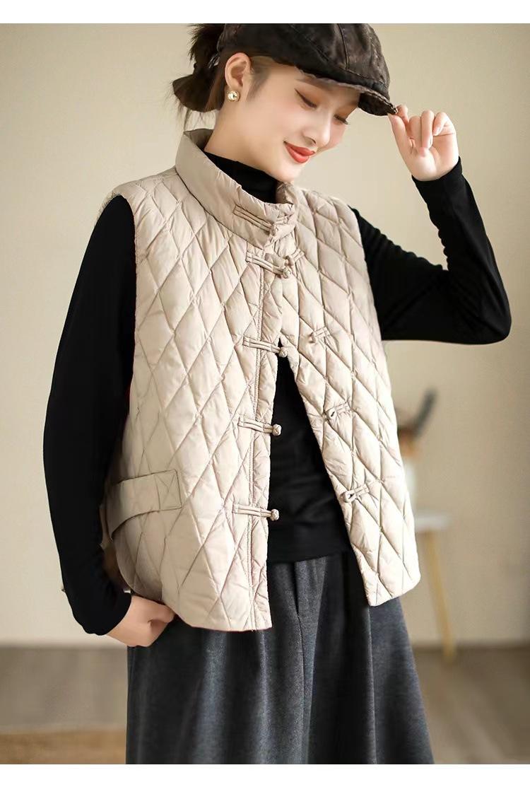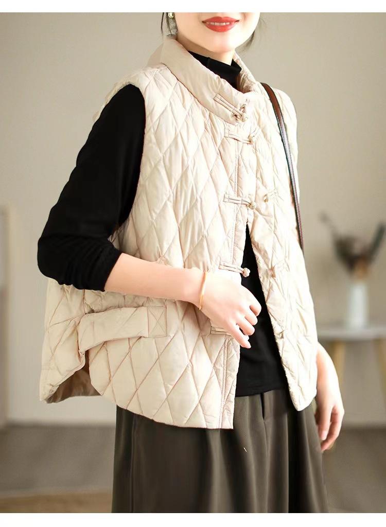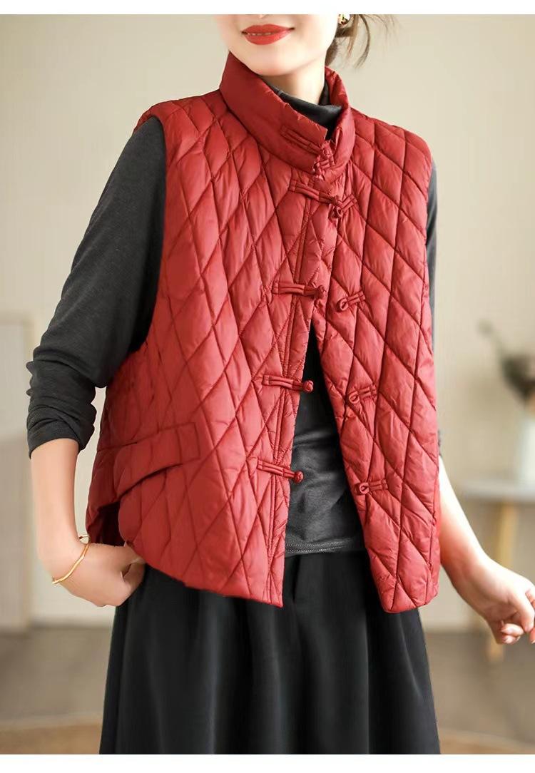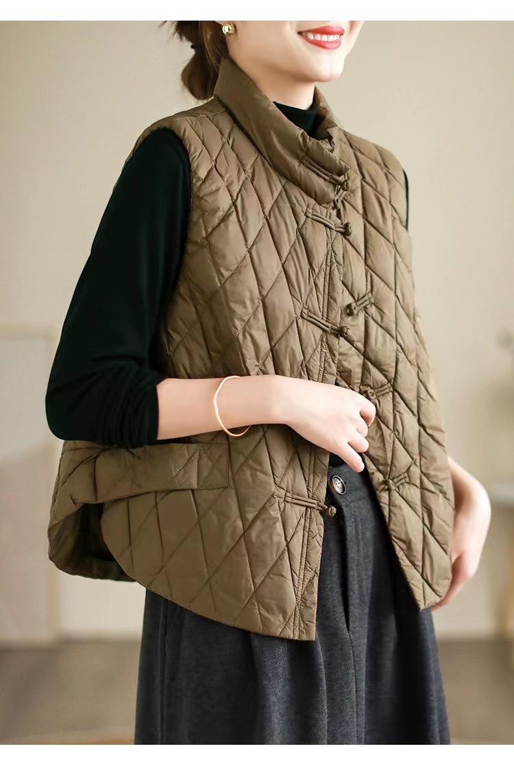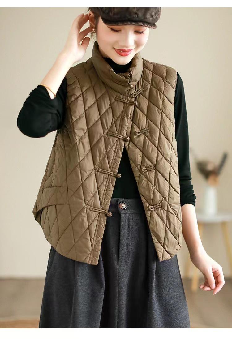 Chaleco Nuevo Otoño Invierno 2025 Estilo Étnico Retro Literario Chaleco con Hebilla Cálido y Versátil para Mujer