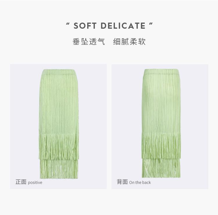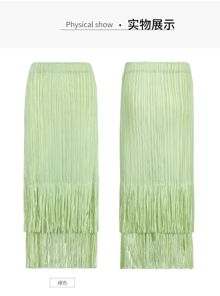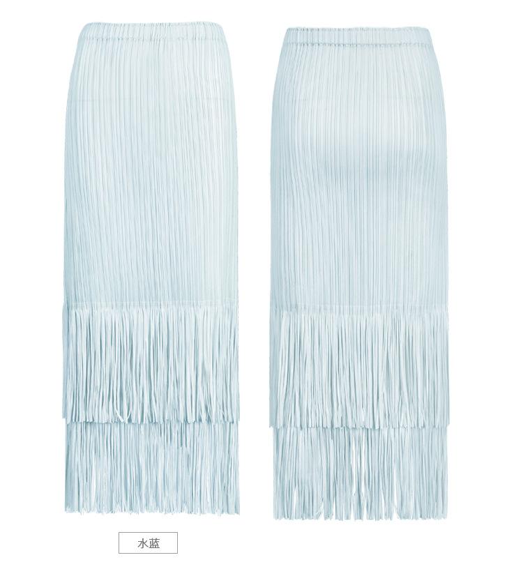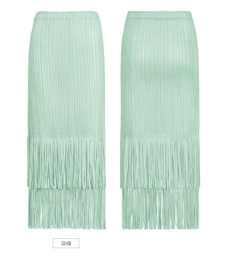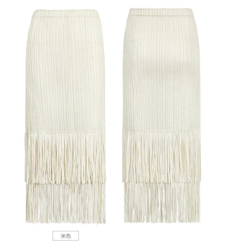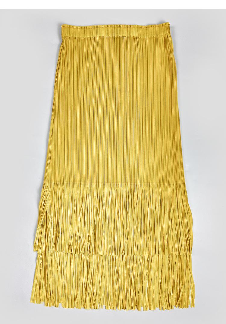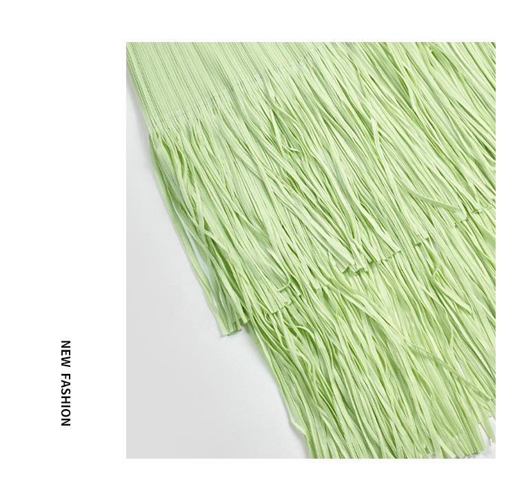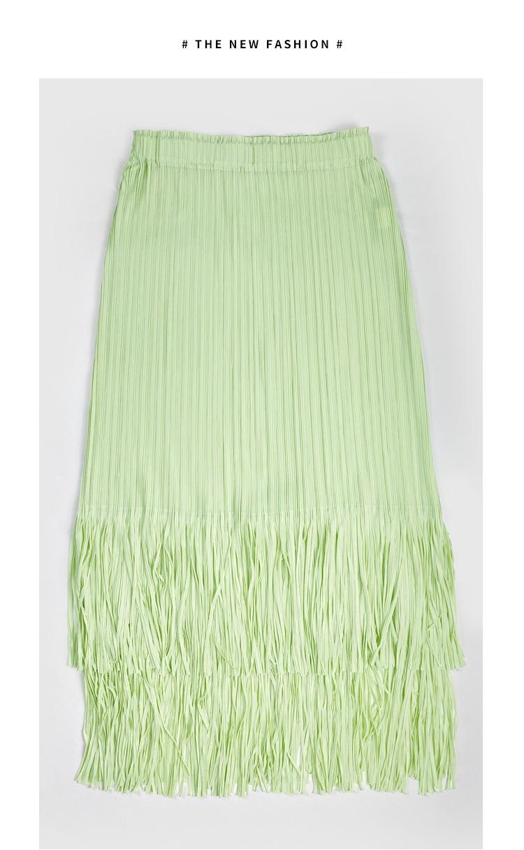 2025 Nuevo Estilo de Verano Falda A-Line con Flecos Plisados de Largo Medio Diseño Niche para Viajeras Falda de Cintura Alta para Mujer