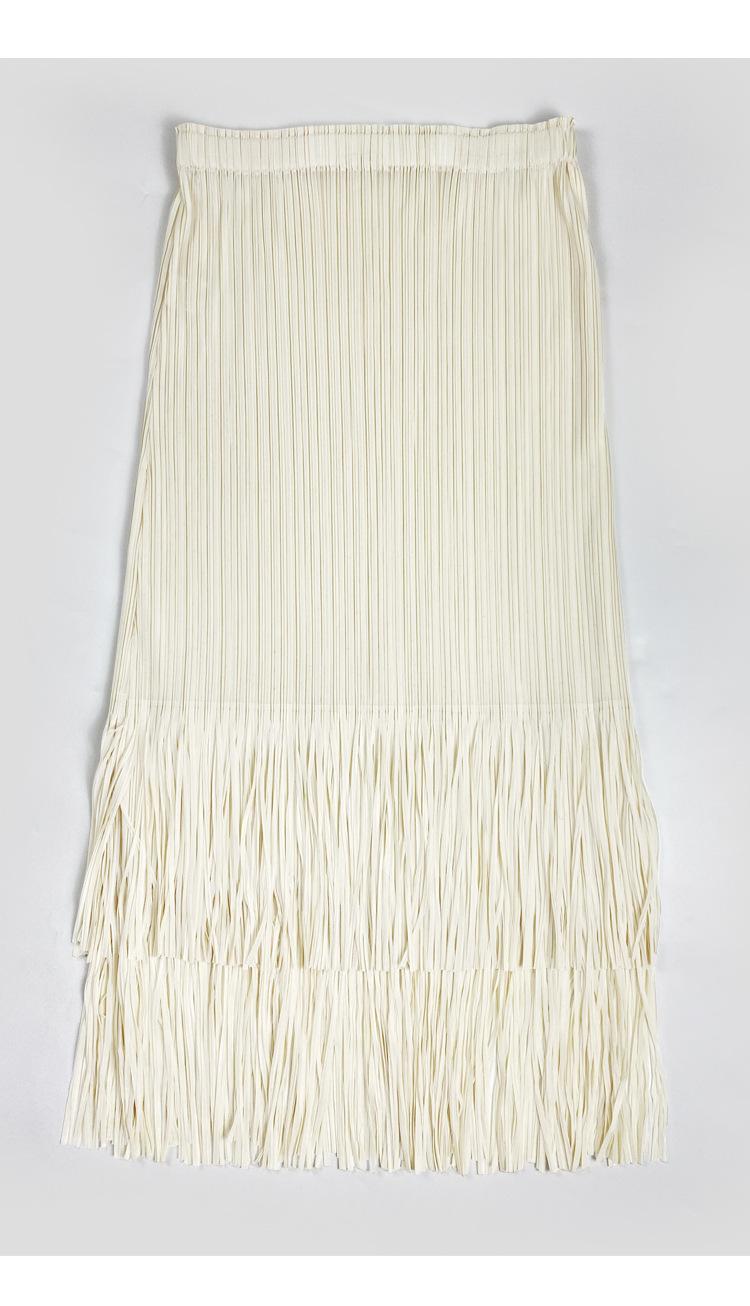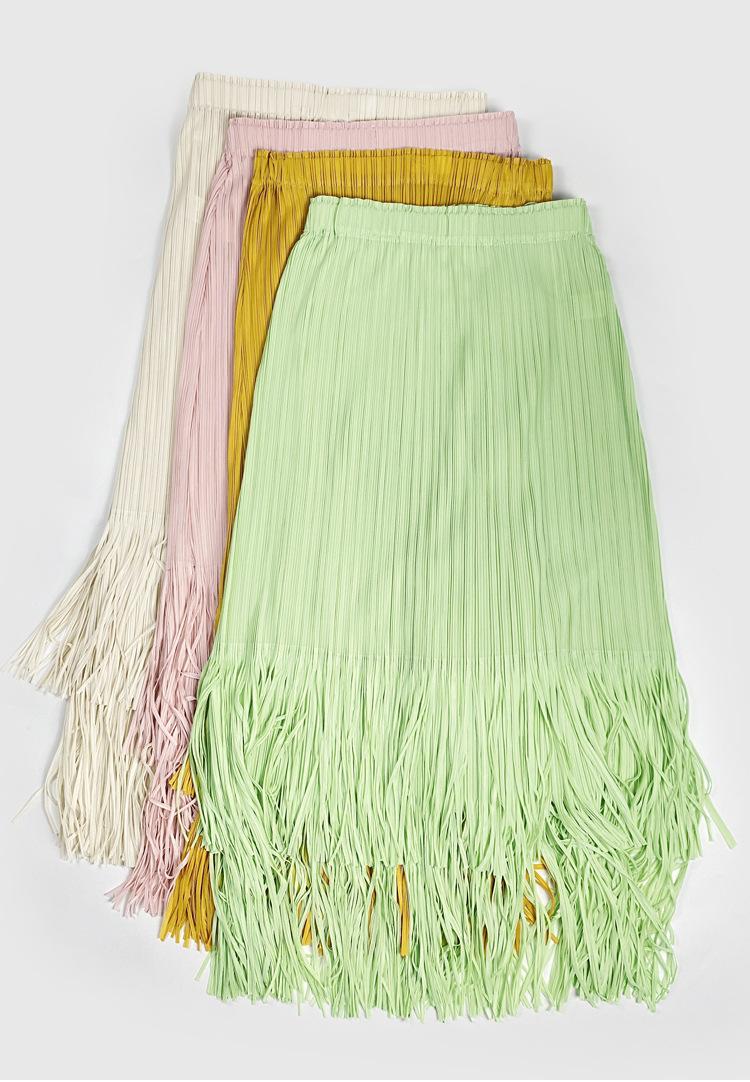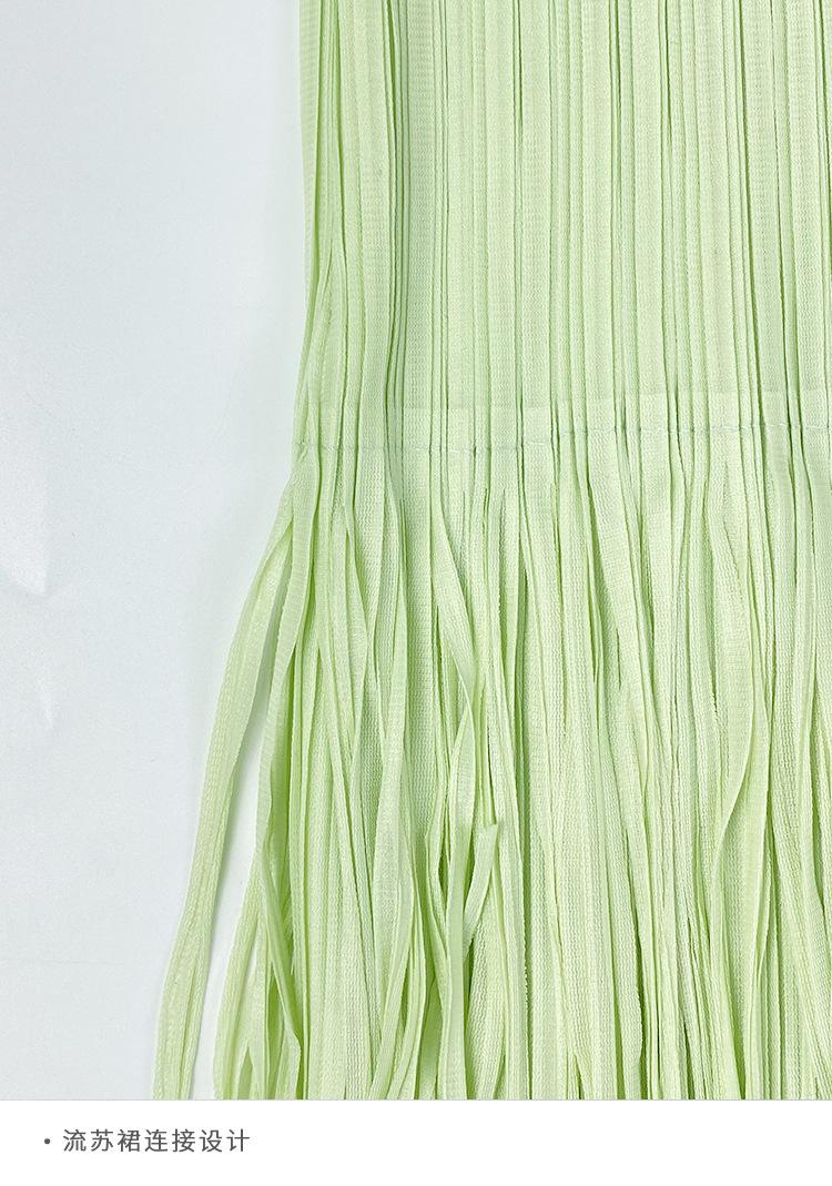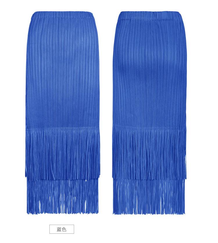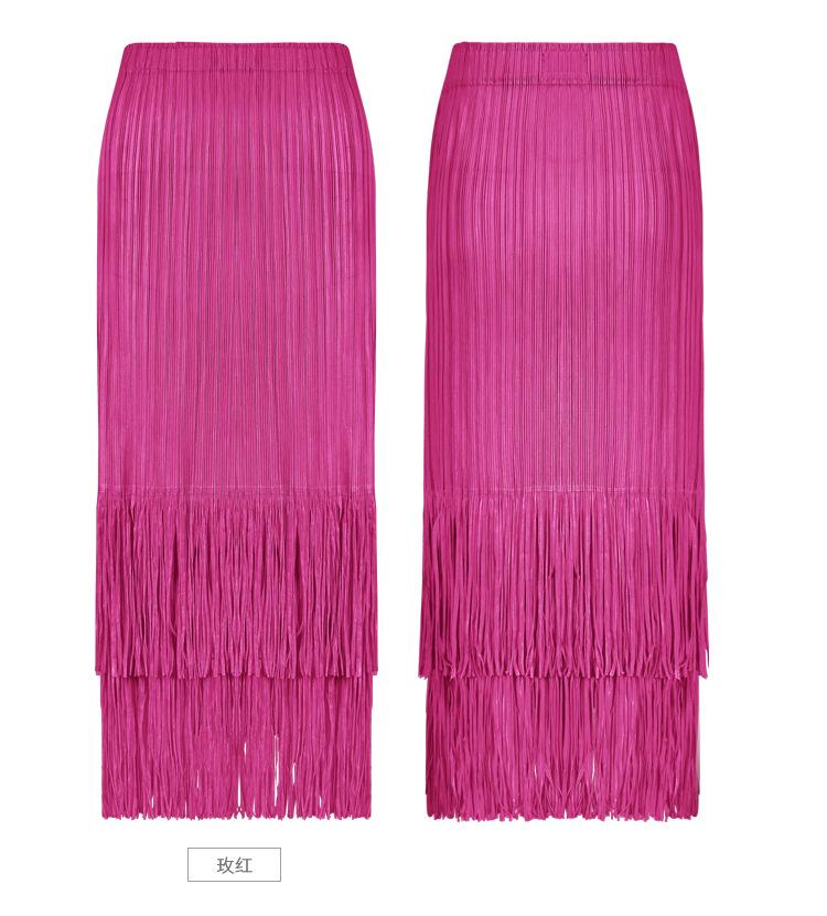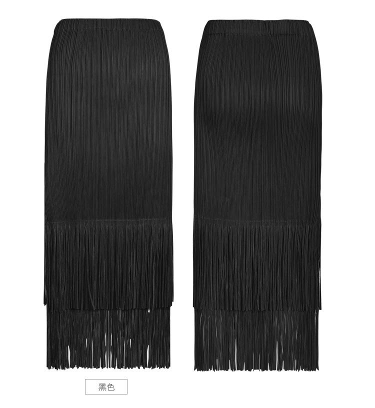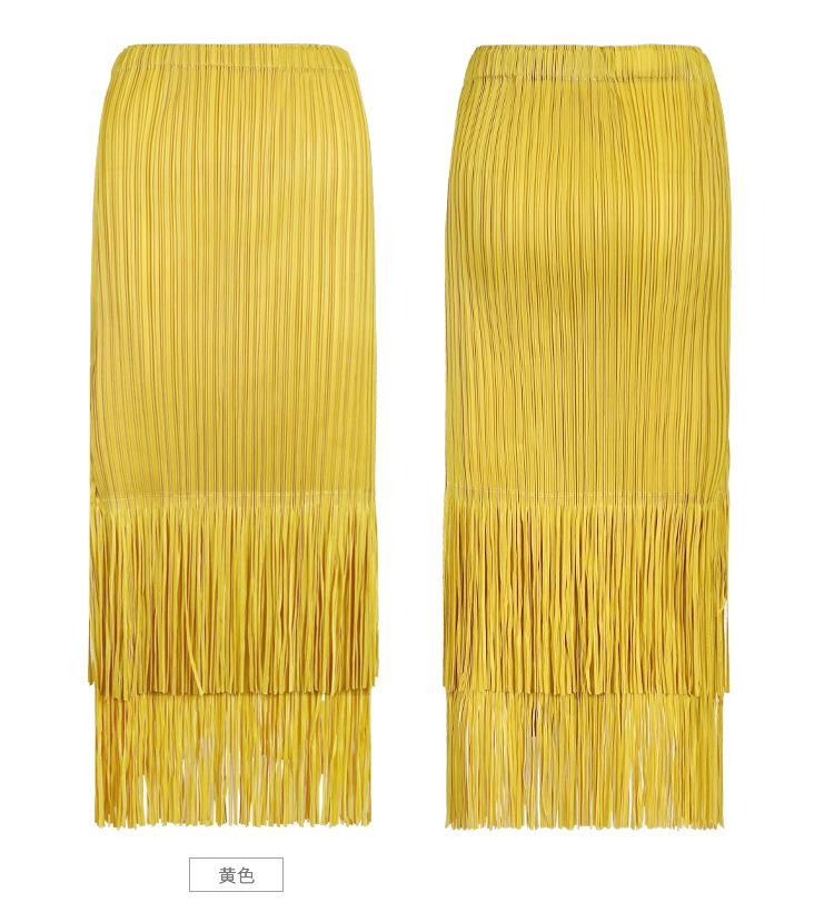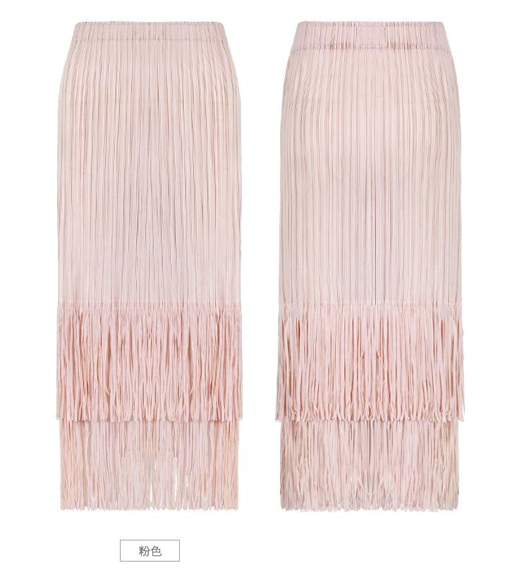 2025 Nuevo Estilo de Verano Falda A-Line con Flecos Plisados de Largo Medio Diseño Niche para Viajeras Falda de Cintura Alta para Mujer