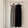 Vestido tipo chaleco sin mangas de punto a rayas de colores contrastantes para mujer, vestido de verano holgado y adelgazante de cintura alta, falda recta de seda de hielo, estilo retro fino
