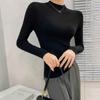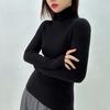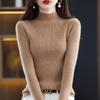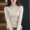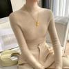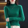 Suéter ajustado de cachemira de cuello alto medio de otoño e invierno para mujer, camisa interior de punto con parte inferior de lana 100% pura