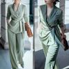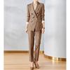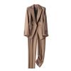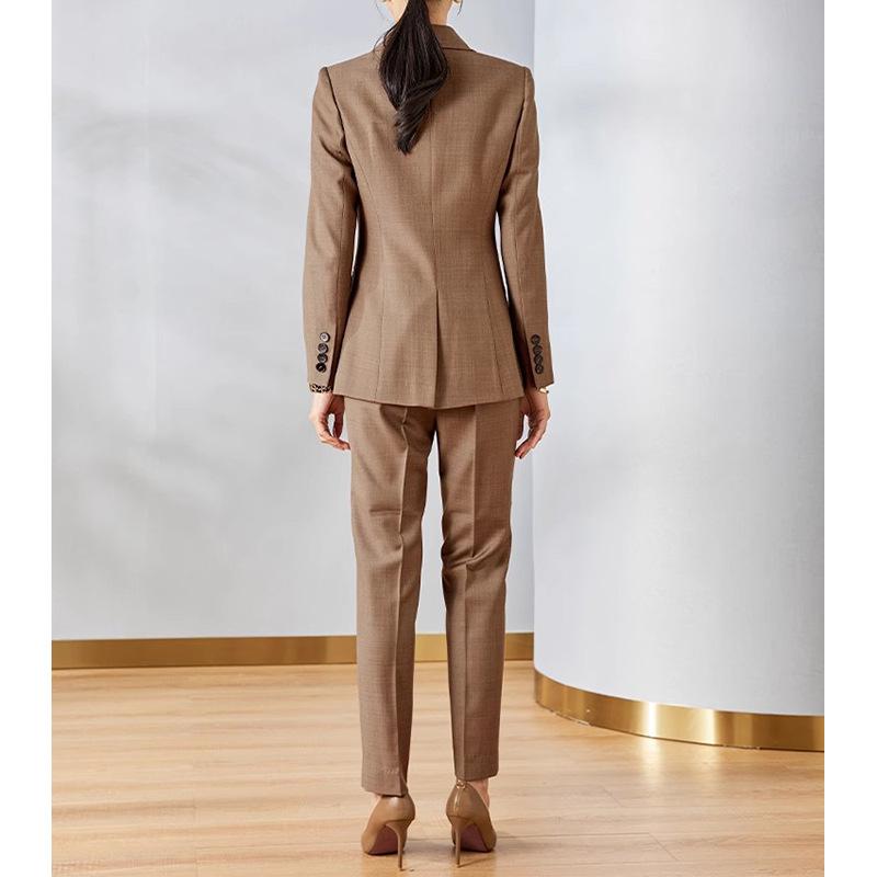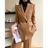 Traje de lana marrón para mujer, para entrevistas, traje informal OL, pantalones ajustados, traje de dos piezas