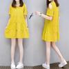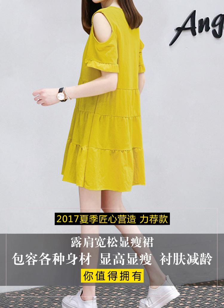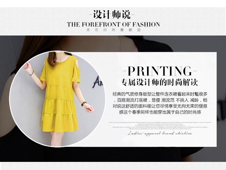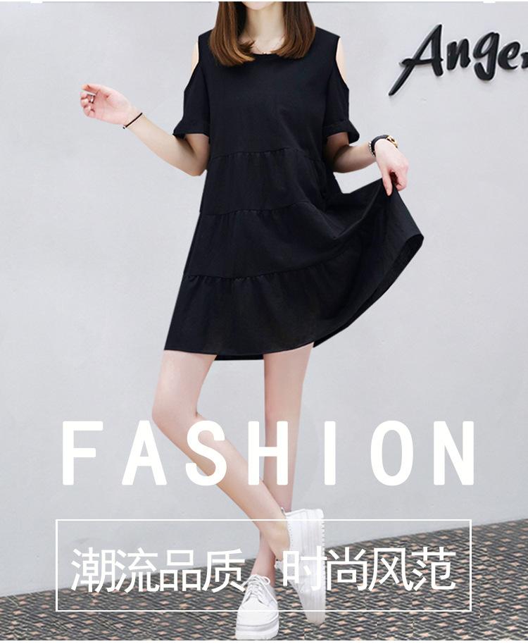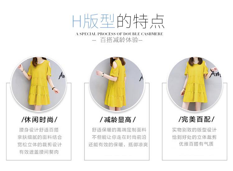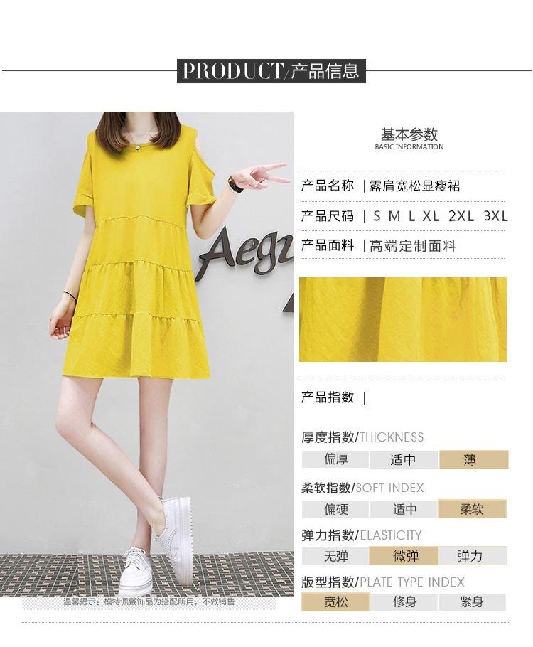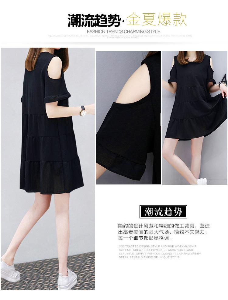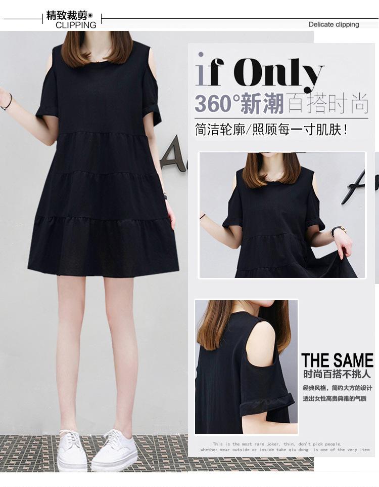 Nuevo vestido de verano para mujer, estilo coreano, holgado, de talla grande, adelgazante, con hombros descubiertos, de color liso, hueco, de longitud media, de corte A.