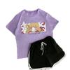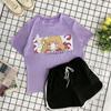 Traje Deportivo de Verano Transfronterizo para Mujer 2025 Nuevo Moderno Casual Versátil de Manga Corta y Shorts Conjunto de Dos Piezas