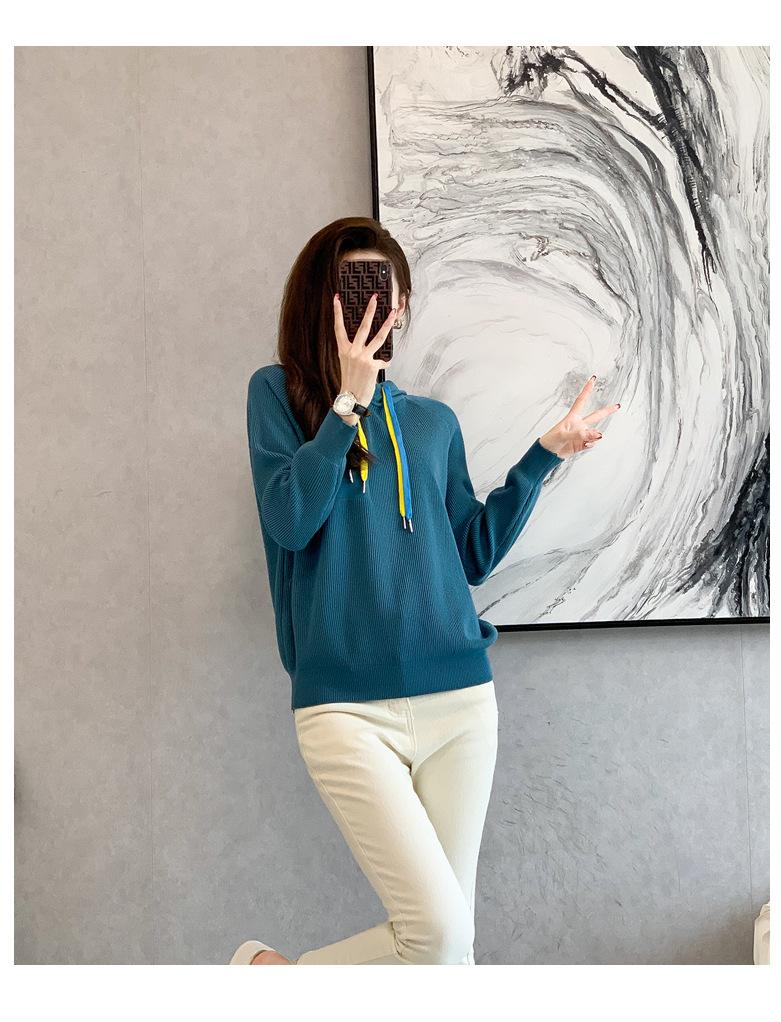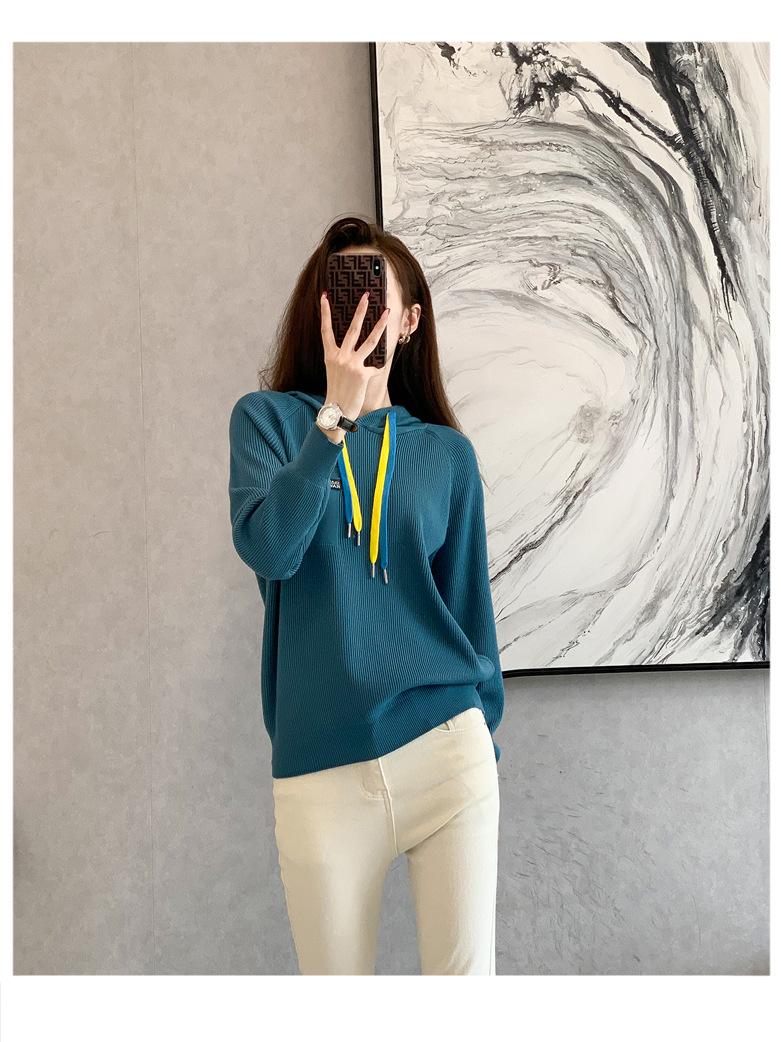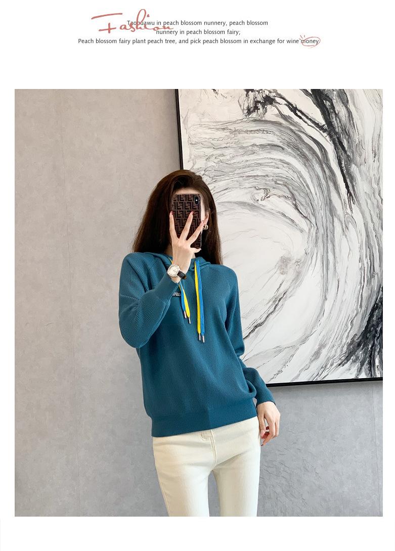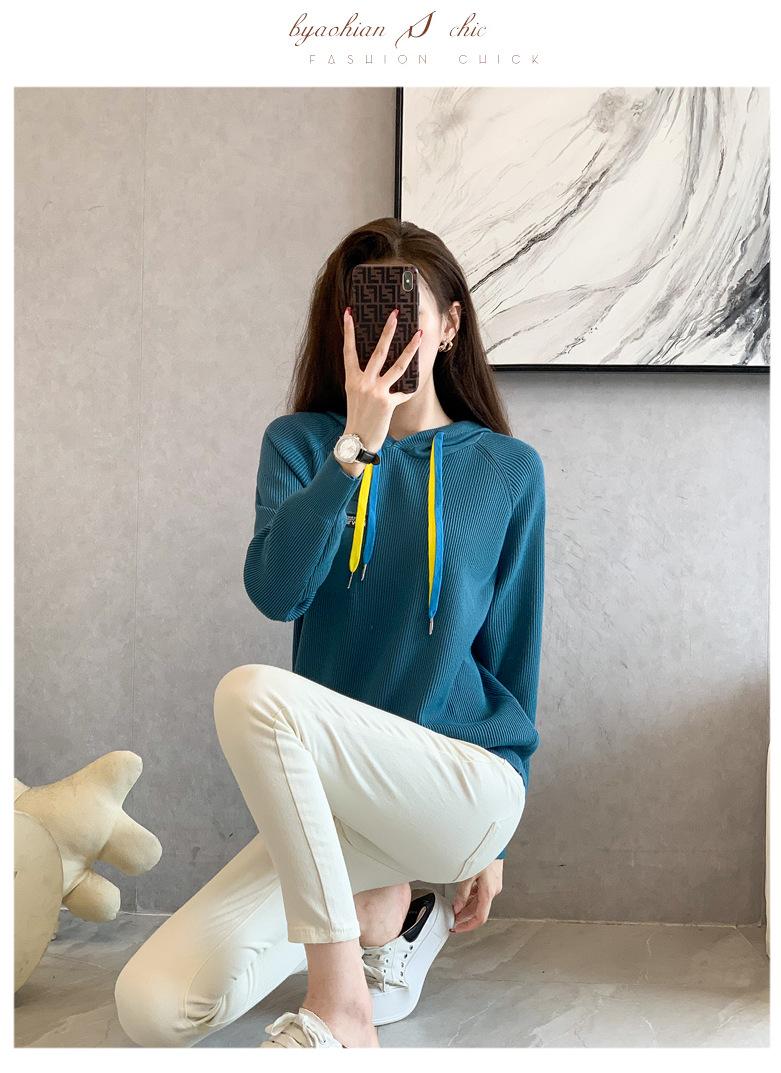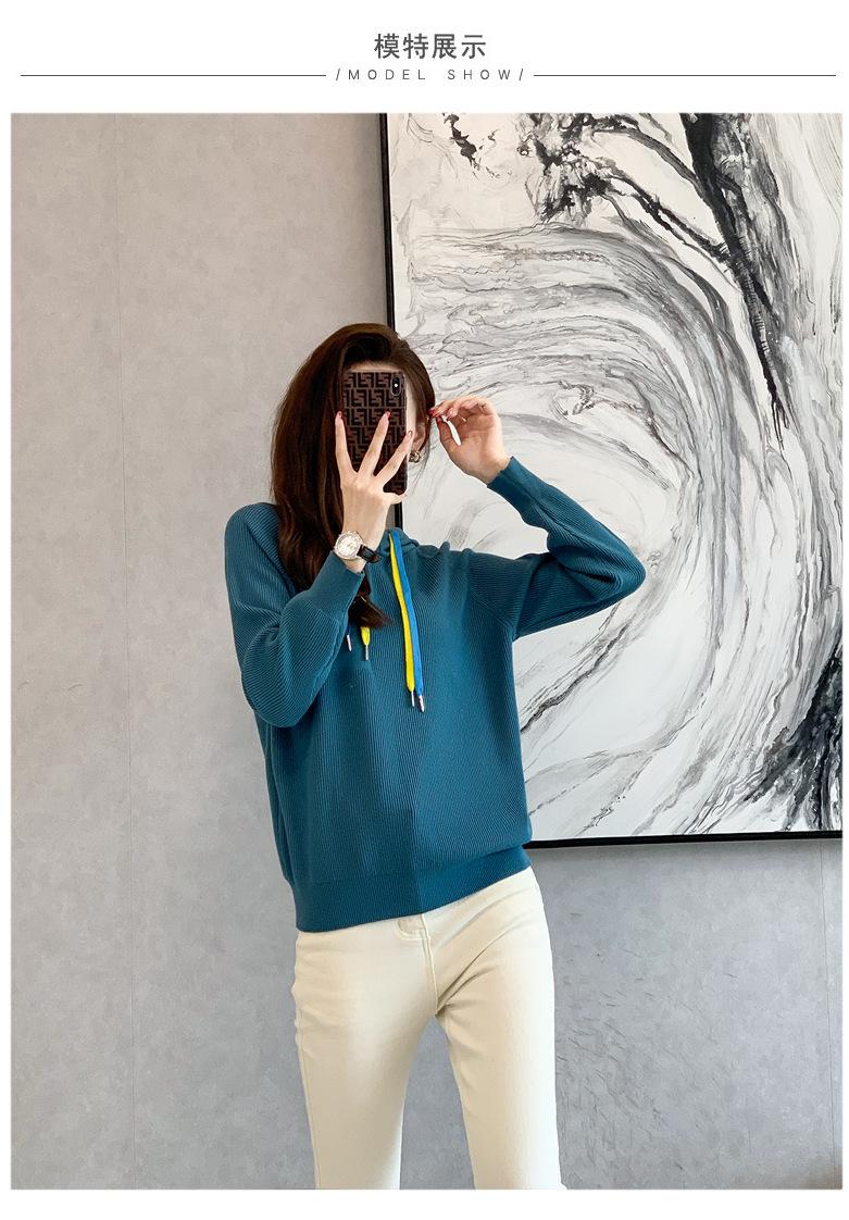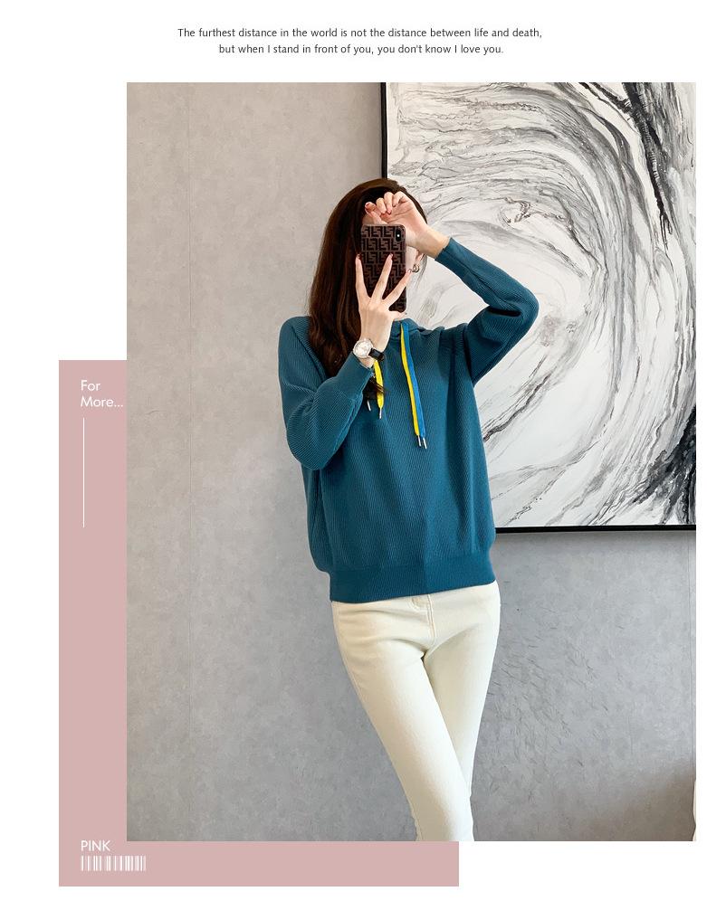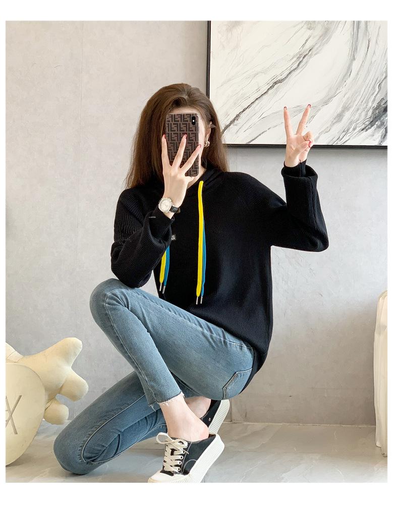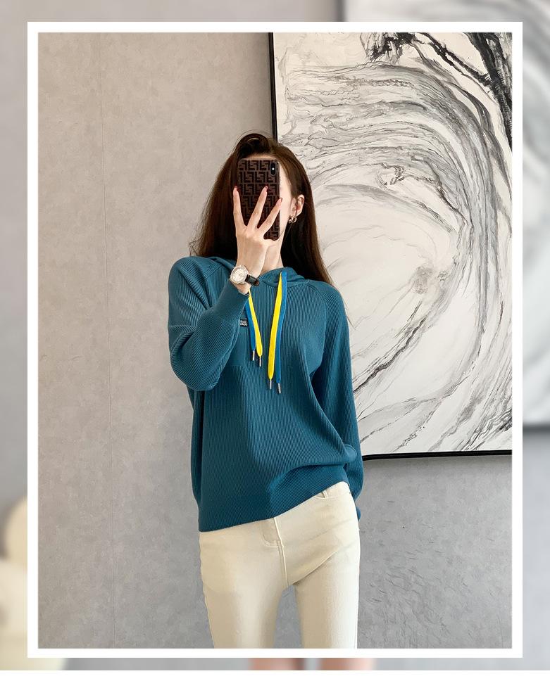 Suéter de mujer, suéter coreano con capucha, suéter holgado de color sólido elástico, suéter de mujer de primera calidad al por mayor