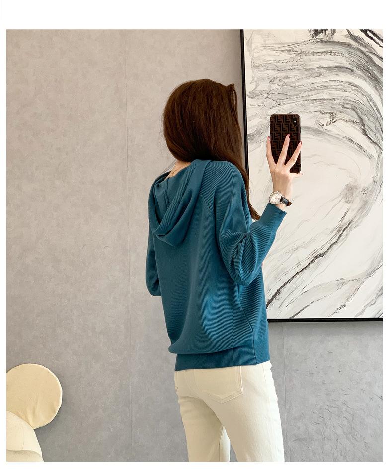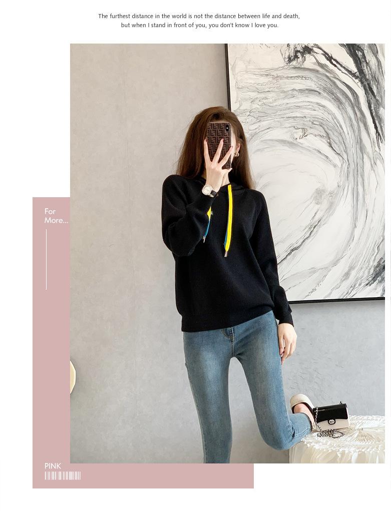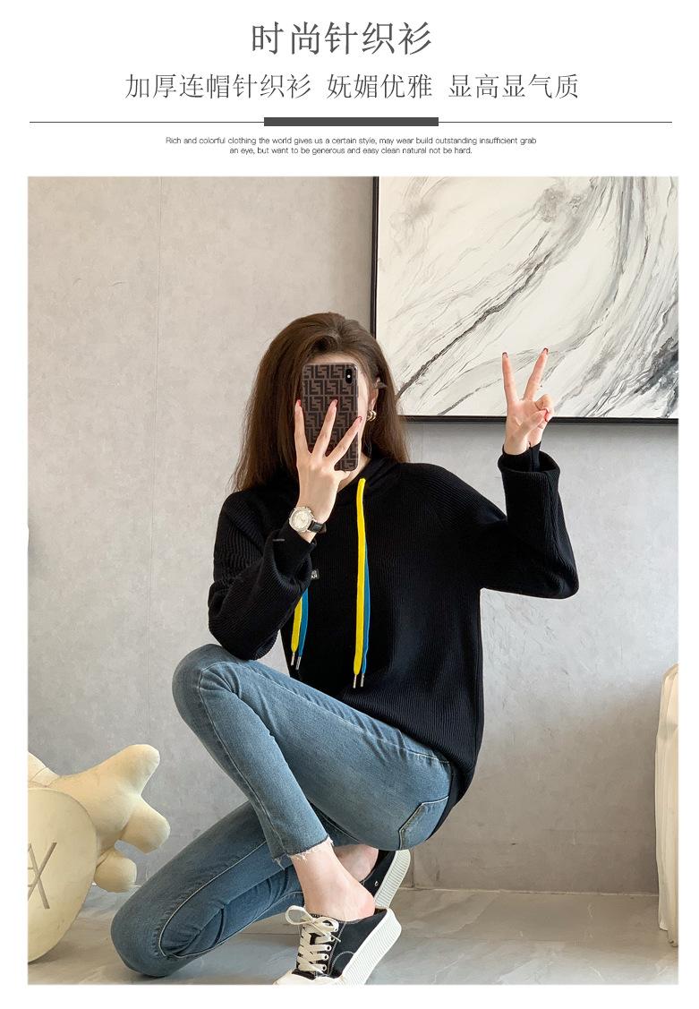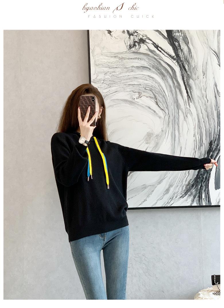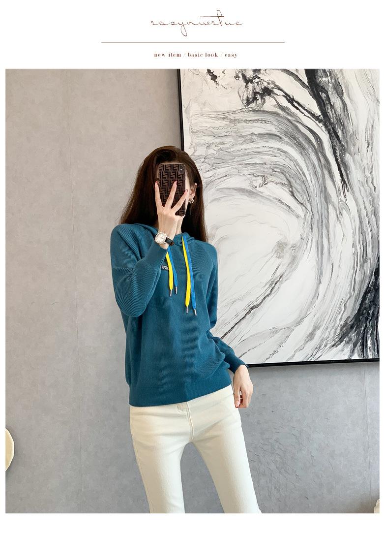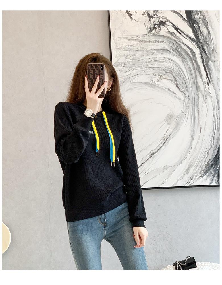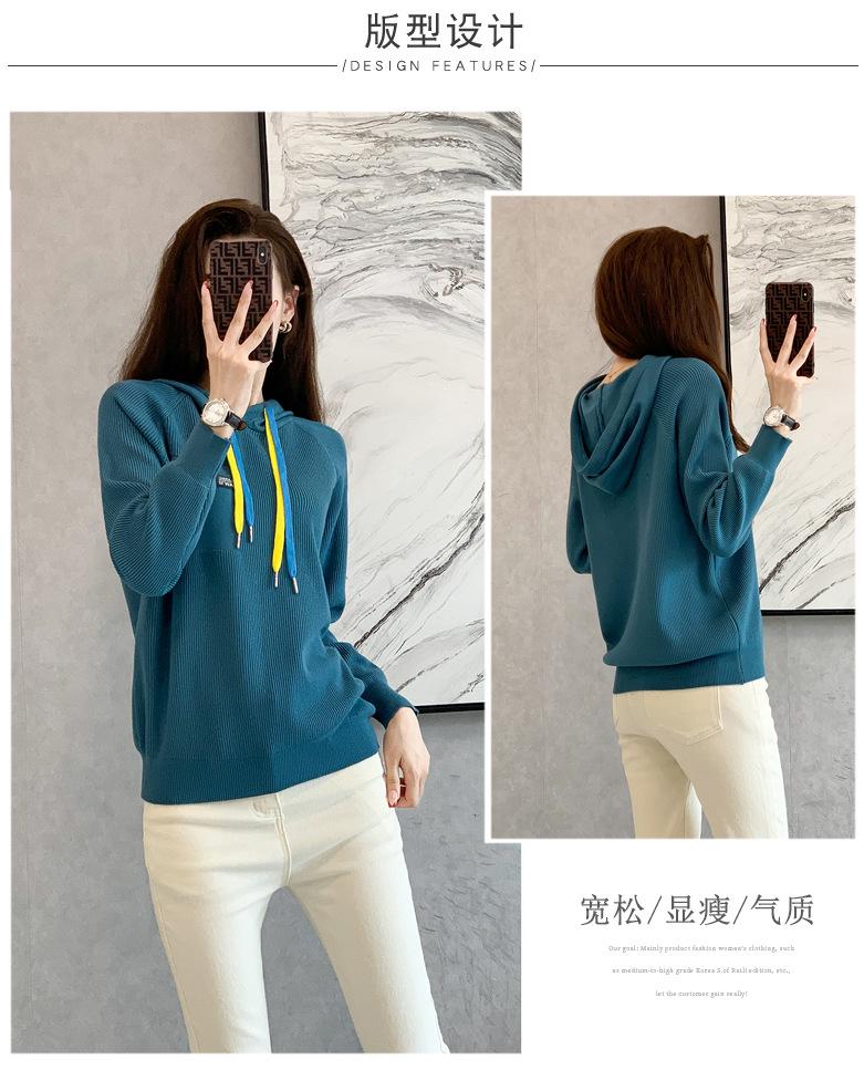 Suéter de mujer, suéter coreano con capucha, suéter holgado de color sólido elástico, suéter de mujer de primera calidad al por mayor