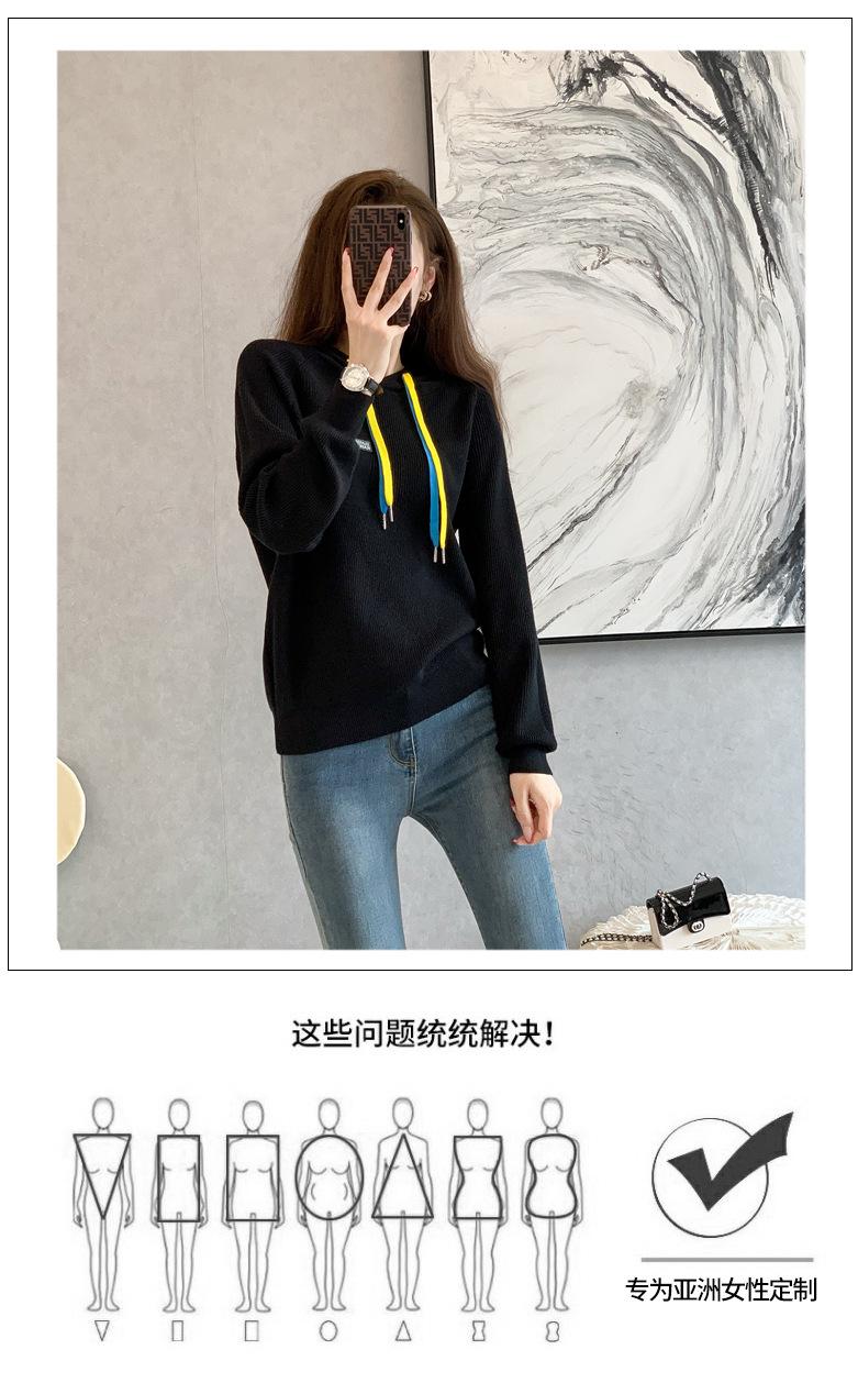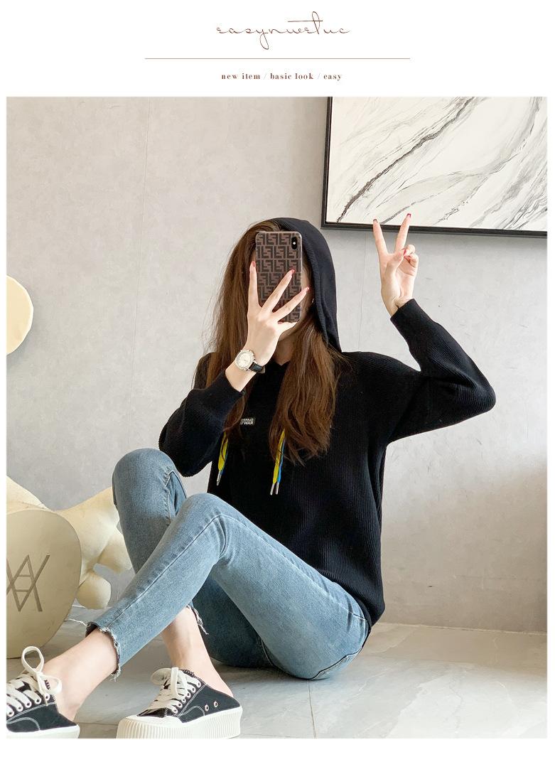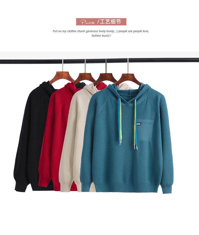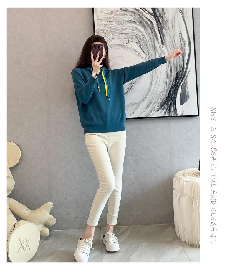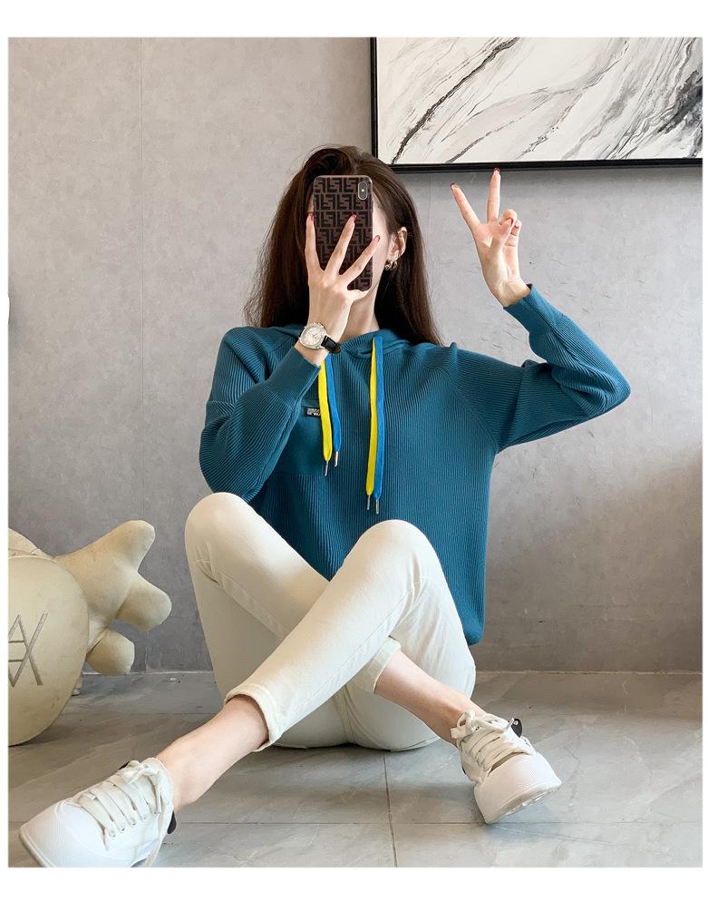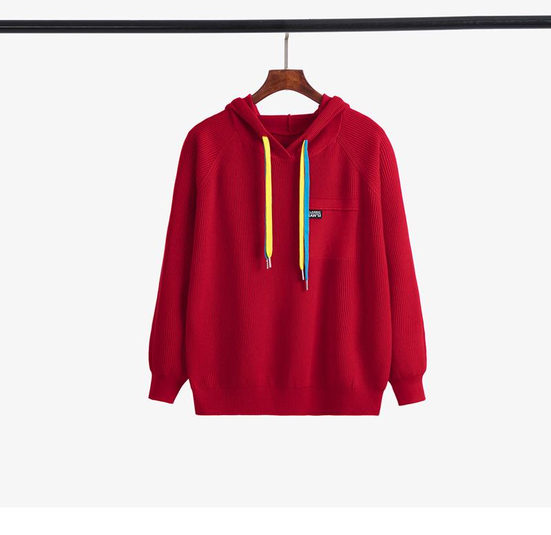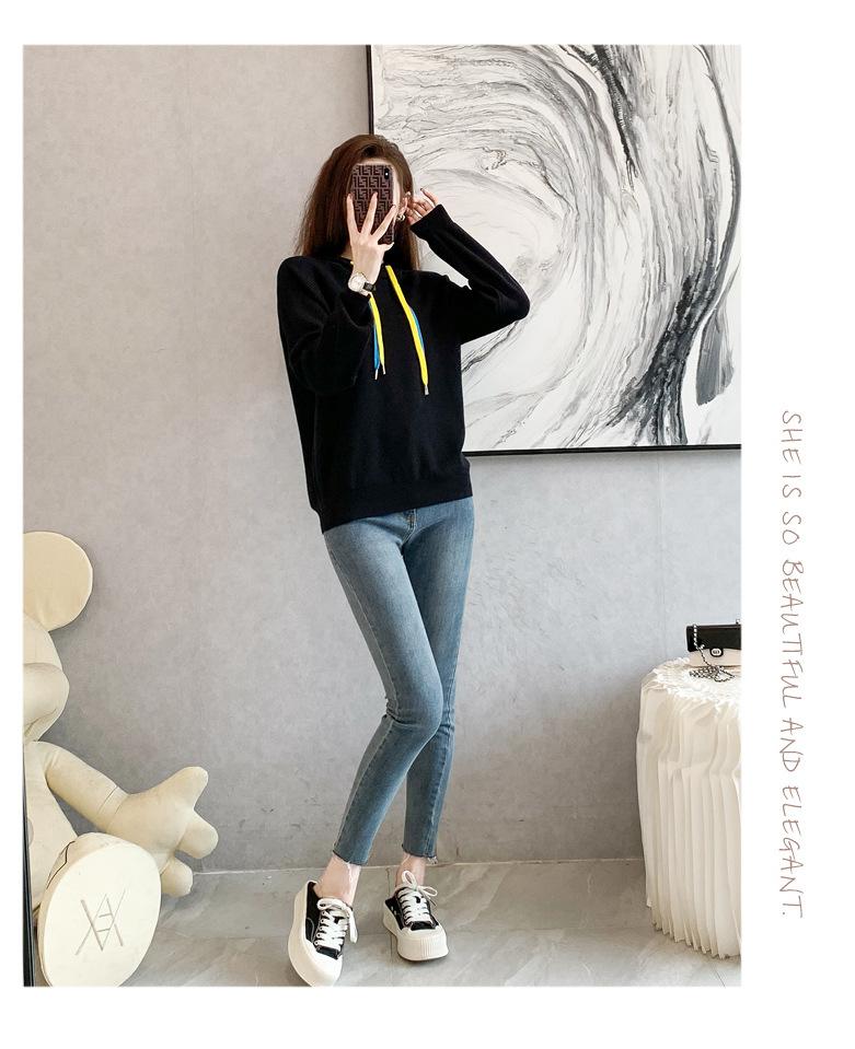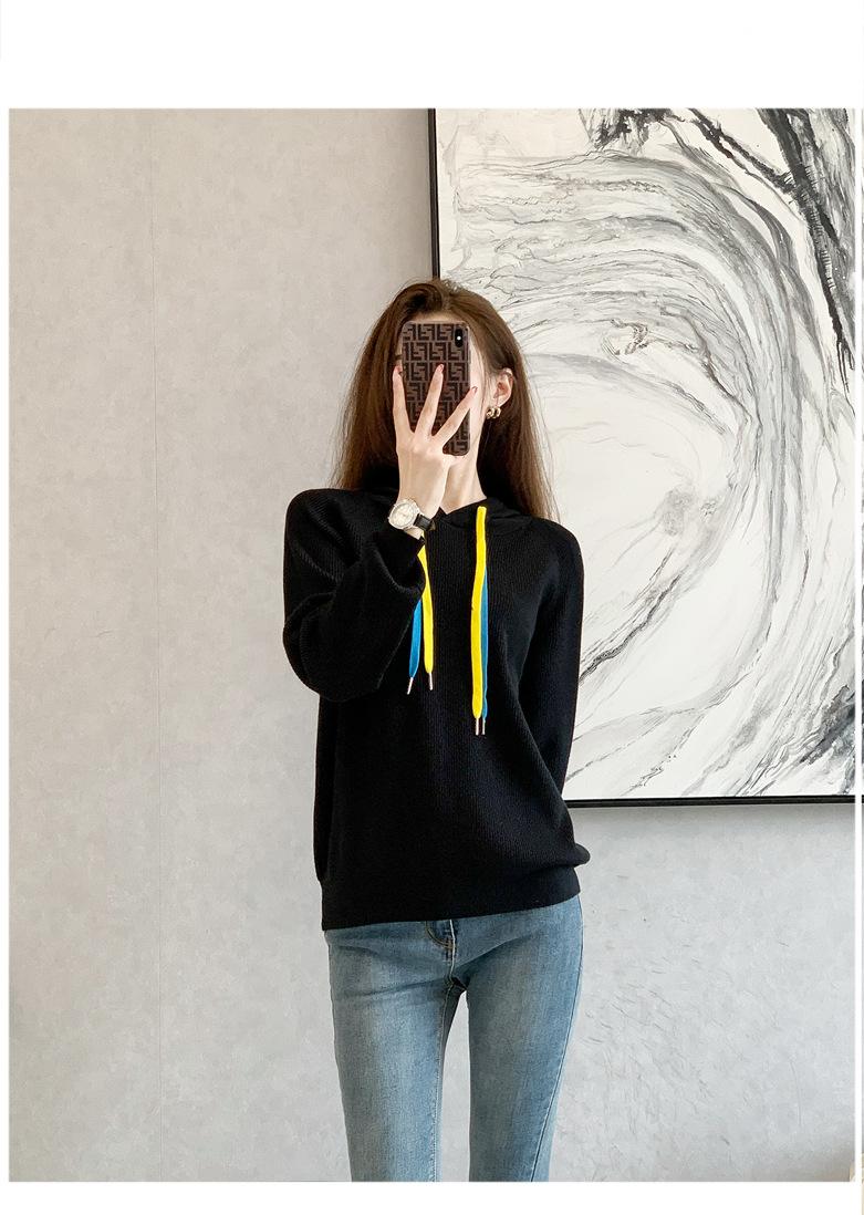 Suéter de mujer, suéter coreano con capucha, suéter holgado de color sólido elástico, suéter de mujer de primera calidad al por mayor