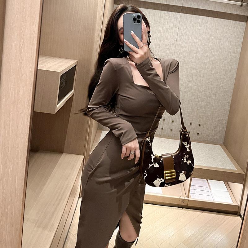2025 Nuevo Otoño Mujer Estilo Francés Ligero y Maduro Hermana Real Falda Larga Diseño de Estilo Suave Vestido Chic 5962