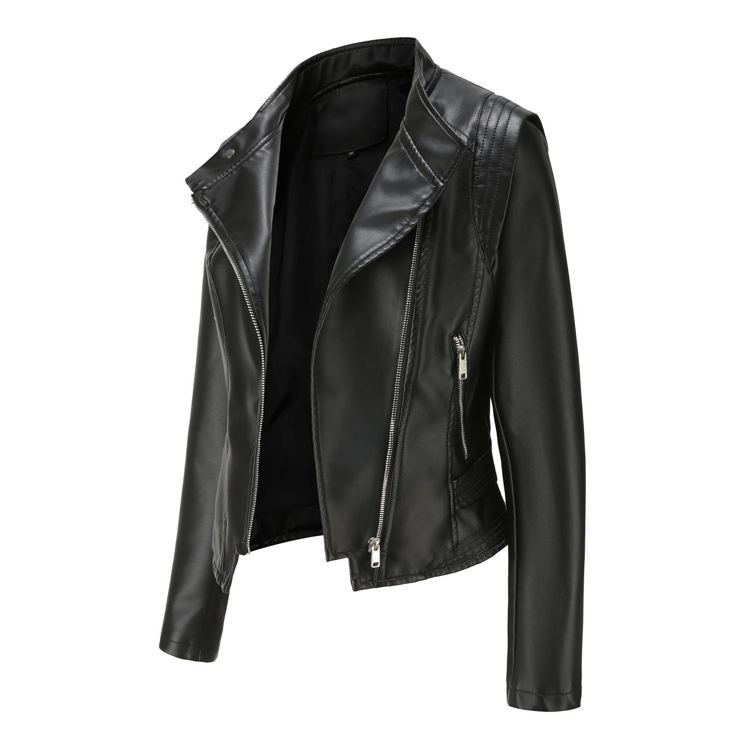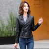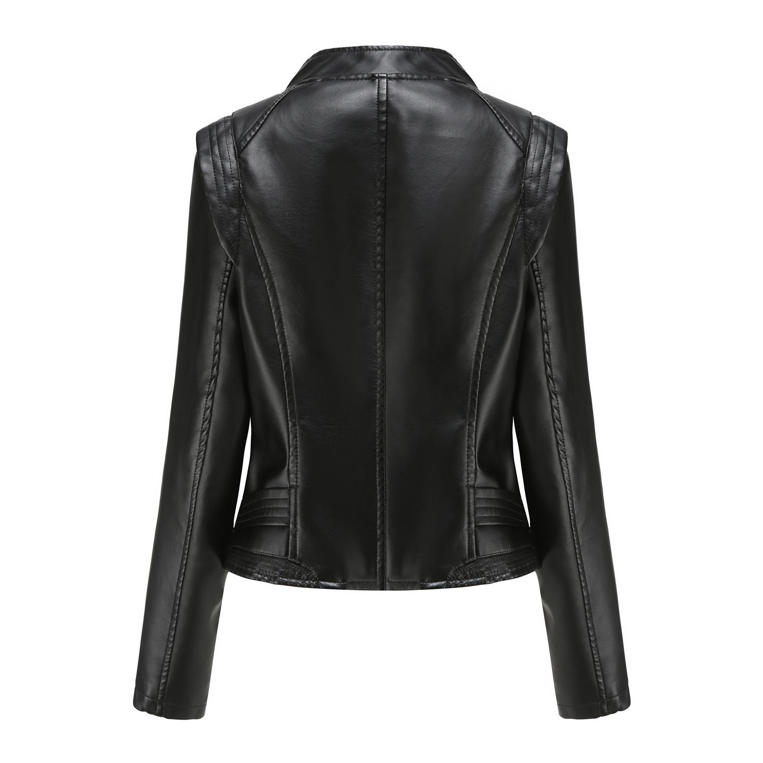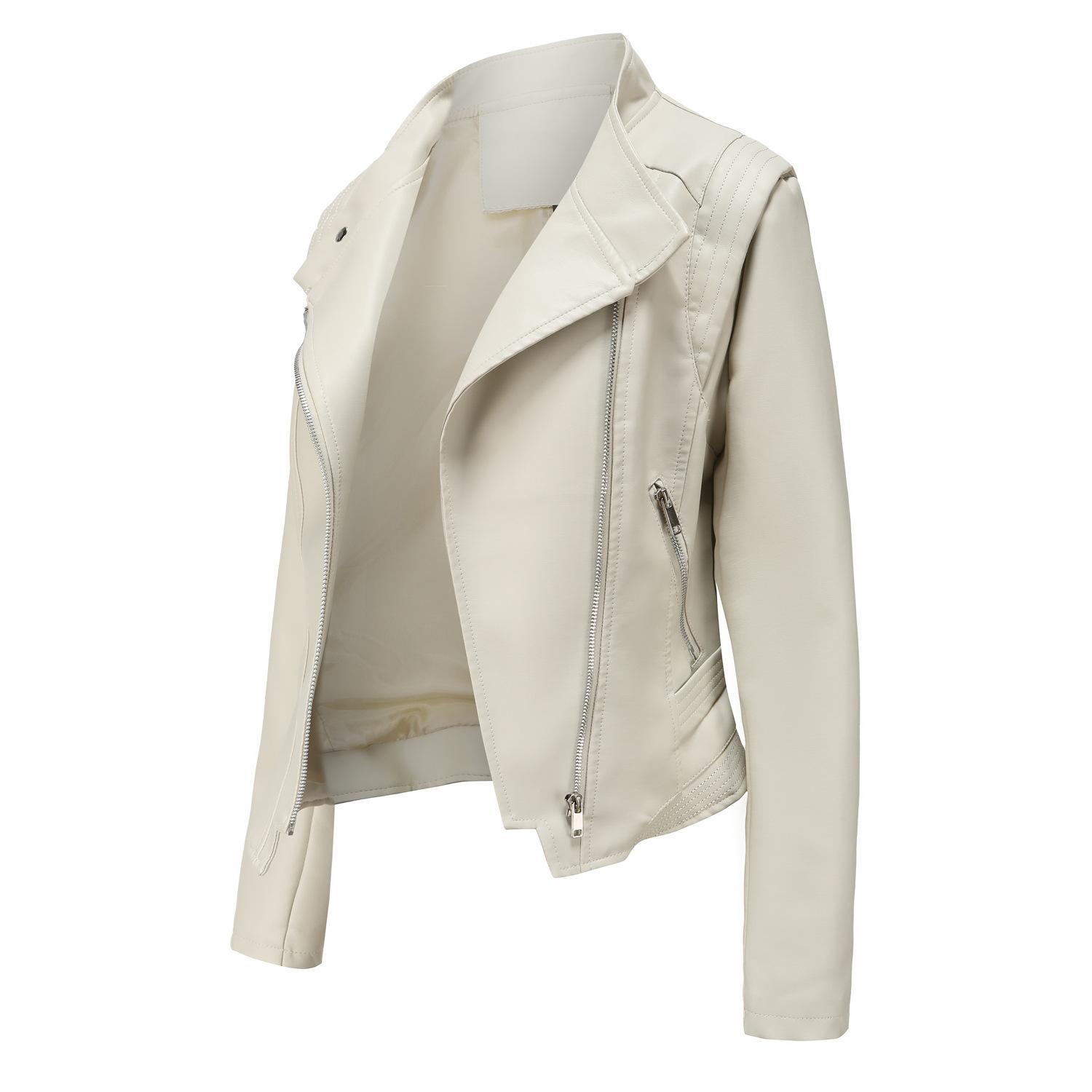 Chaqueta de Cuero Nueva 2024 con Solapa de PU para Mujer, Corte Slim, Manga Larga Fina para Primavera y Otoño, Chaqueta Corta para Mujer