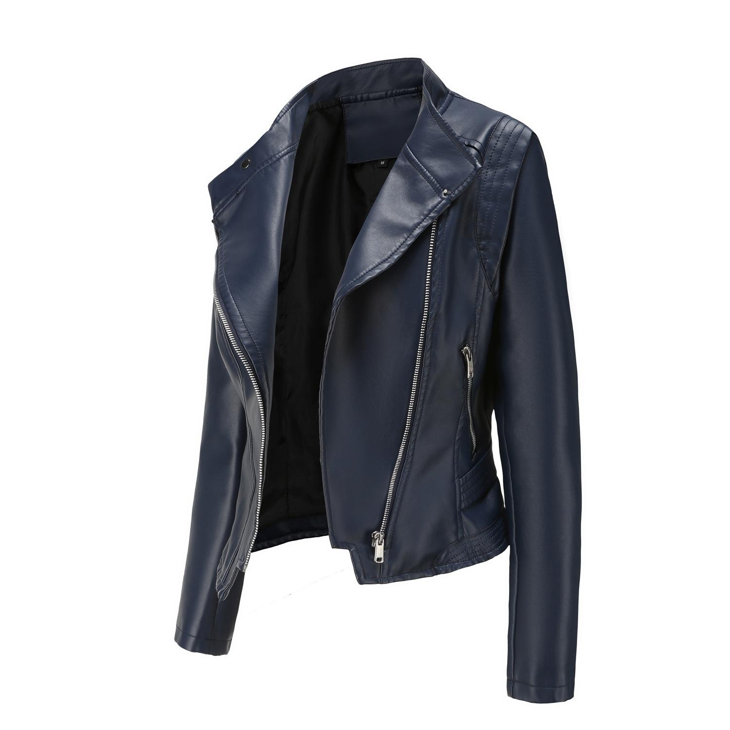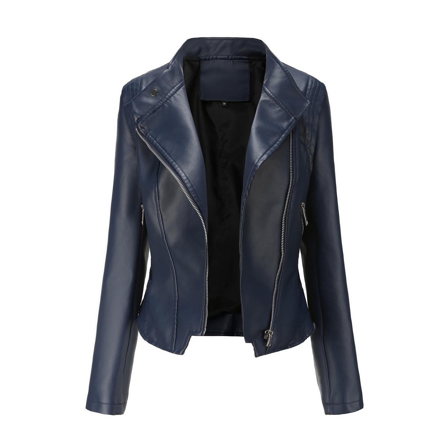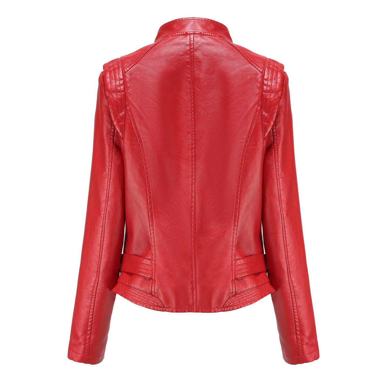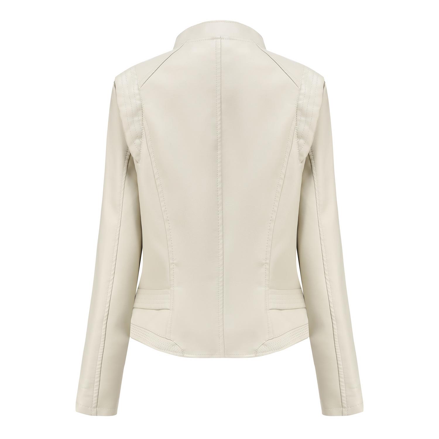 Chaqueta de Cuero Nueva 2024 con Solapa de PU para Mujer, Corte Slim, Manga Larga Fina para Primavera y Otoño, Chaqueta Corta para Mujer