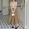 Apricot shirt, Khaki skirt, Apricot shirt + khaki skirt