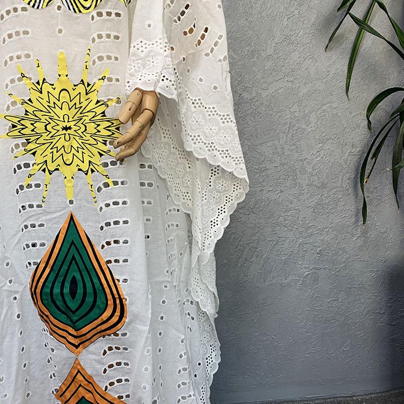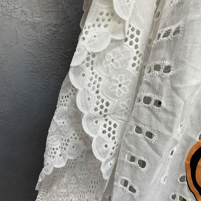 Bordado de algodón puro, calado y bordes ondulados recortados. Cada metro de tela es el producto de la sangre y el sudor de innumerables trabajadores para crear una tela tan cómoda y hermosa.