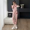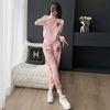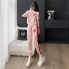 Traje Deportivo Casual de Moda Europea para Mujer Verano 2025 Nuevo Rosa Manga Corta Elegante Leggings Conjunto de Dos Piezas