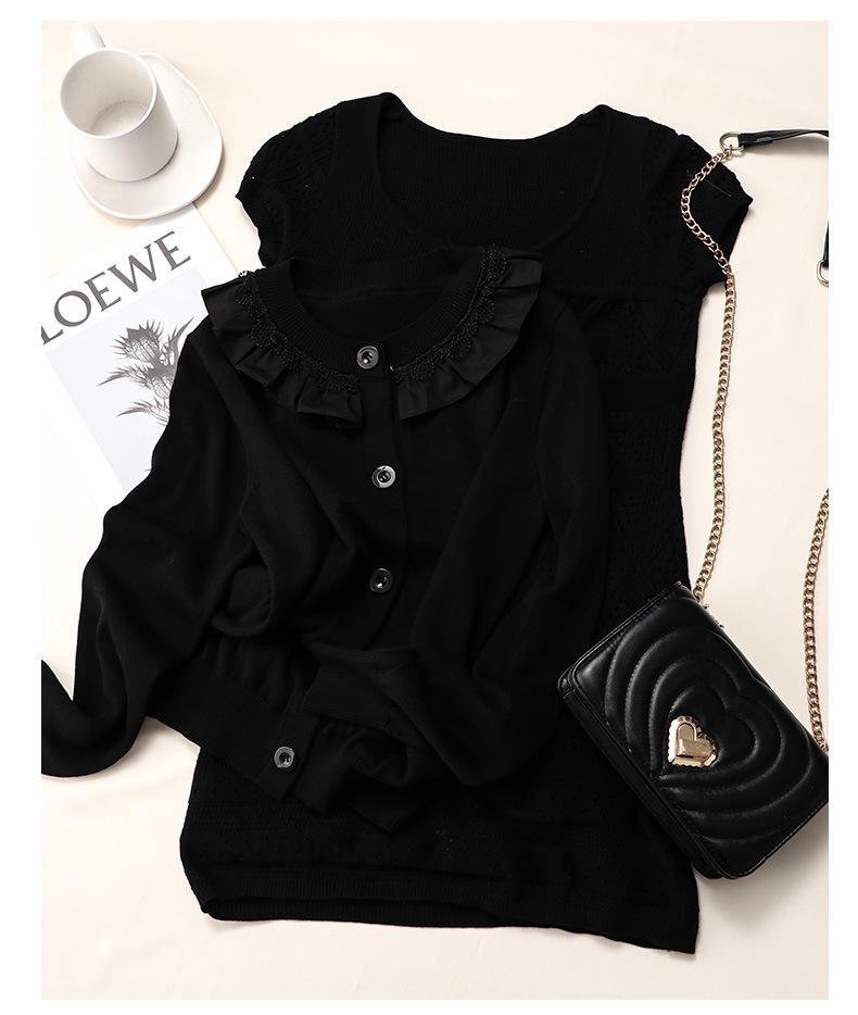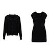[en Stock] Cárdigan de Punto Estilo Ruth Negro Reductor de Edad Top Moda Francesa Adelgazante Falda Corta Traje Casual para Mujer Otoño