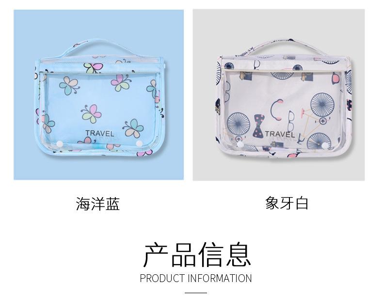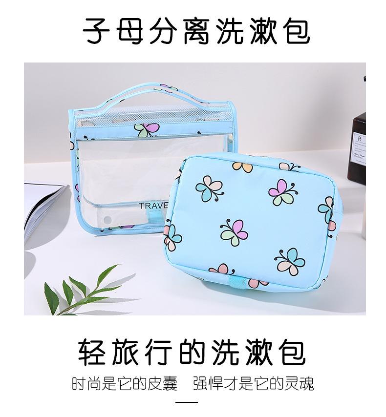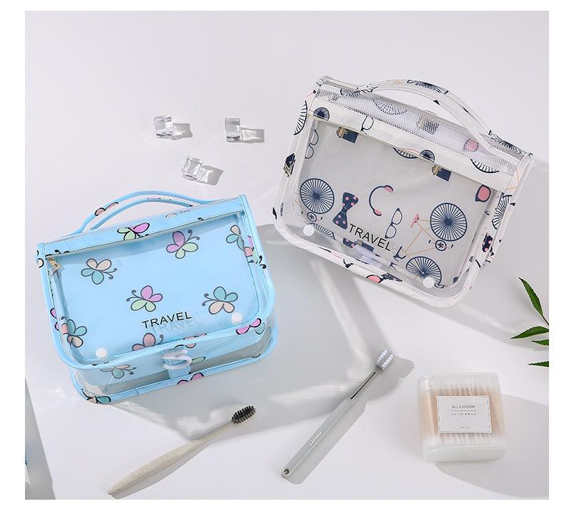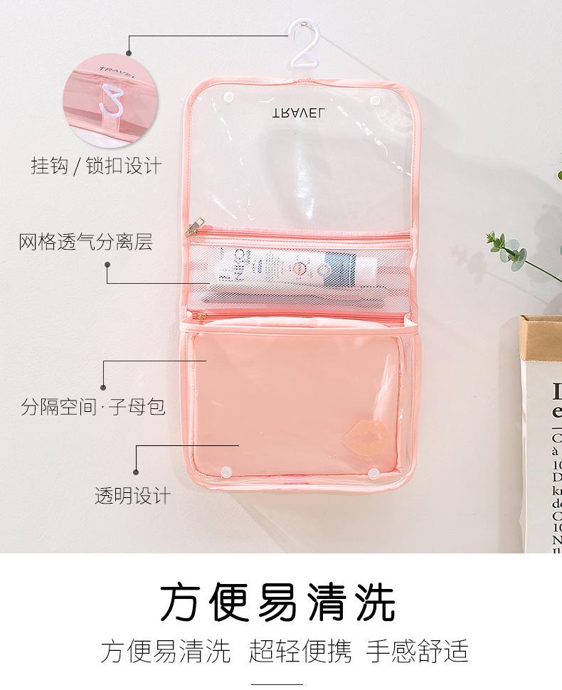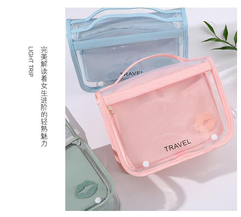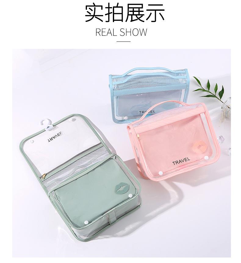 Bolsa de lavado portátil con gancho, gran capacidad, para viajes, de PVC, transparente, conjunto de dos piezas