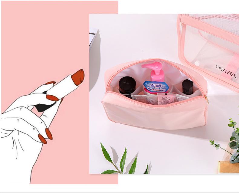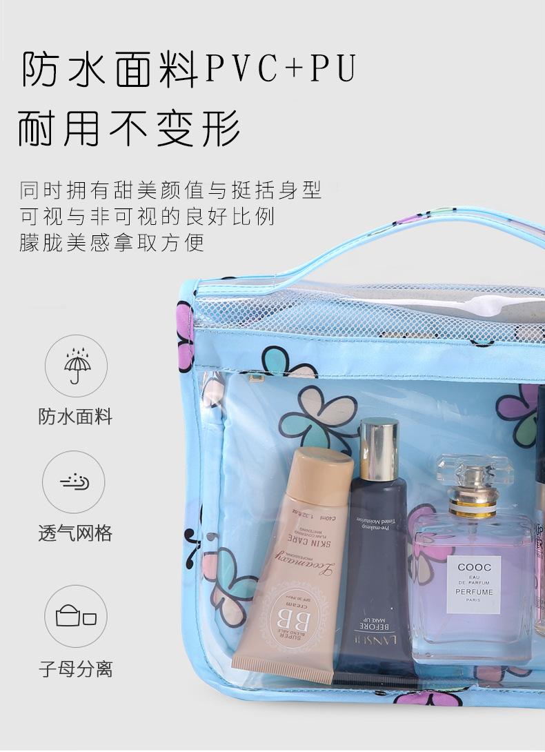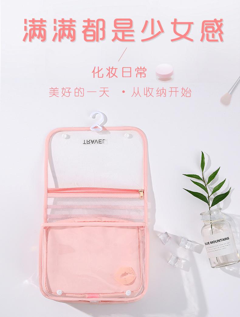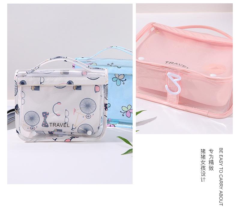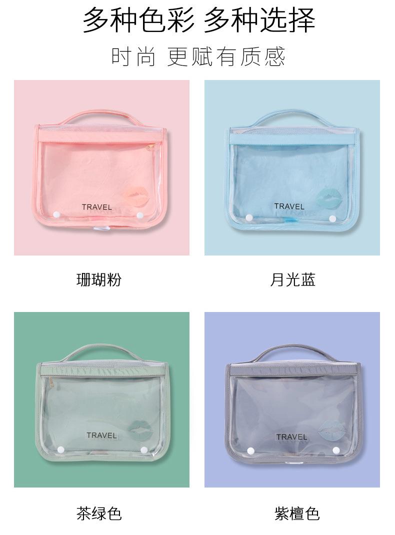 Bolsa de lavado portátil con gancho, gran capacidad, para viajes, de PVC, transparente, conjunto de dos piezas