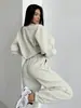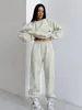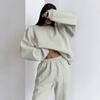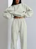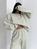 Traje de suéter gris de moda de personalidad europea y americana para mujer, conjunto de dos piezas casual transfronterizo de primavera 2024 de top y pantalones de sudor