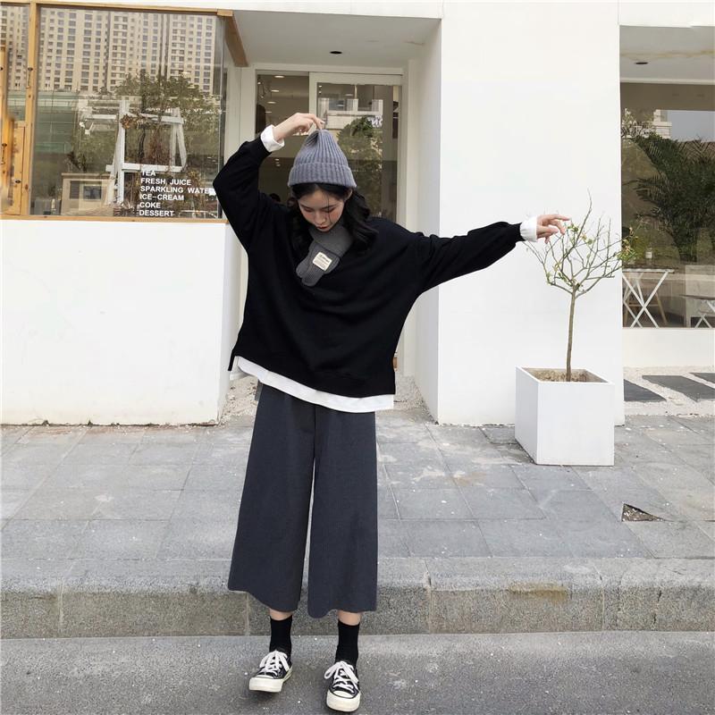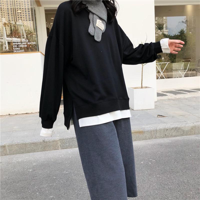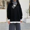 Sudadera polar de longitud media de dos piezas falsas para mujer 2025 Nuevo otoño e invierno Estilo coreano Holgada Estudiante Bf Estilo Harajuku Top