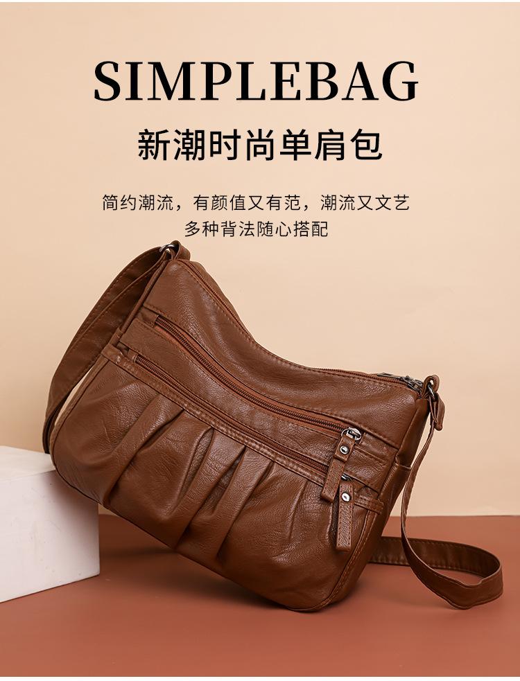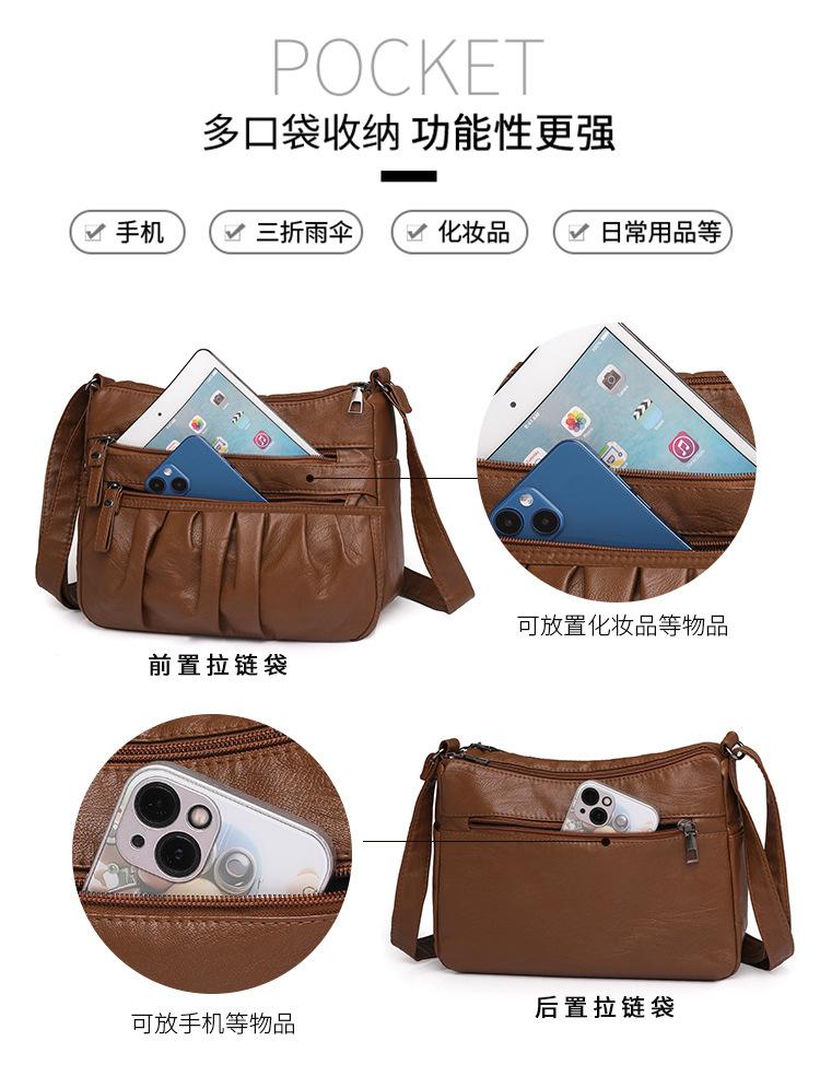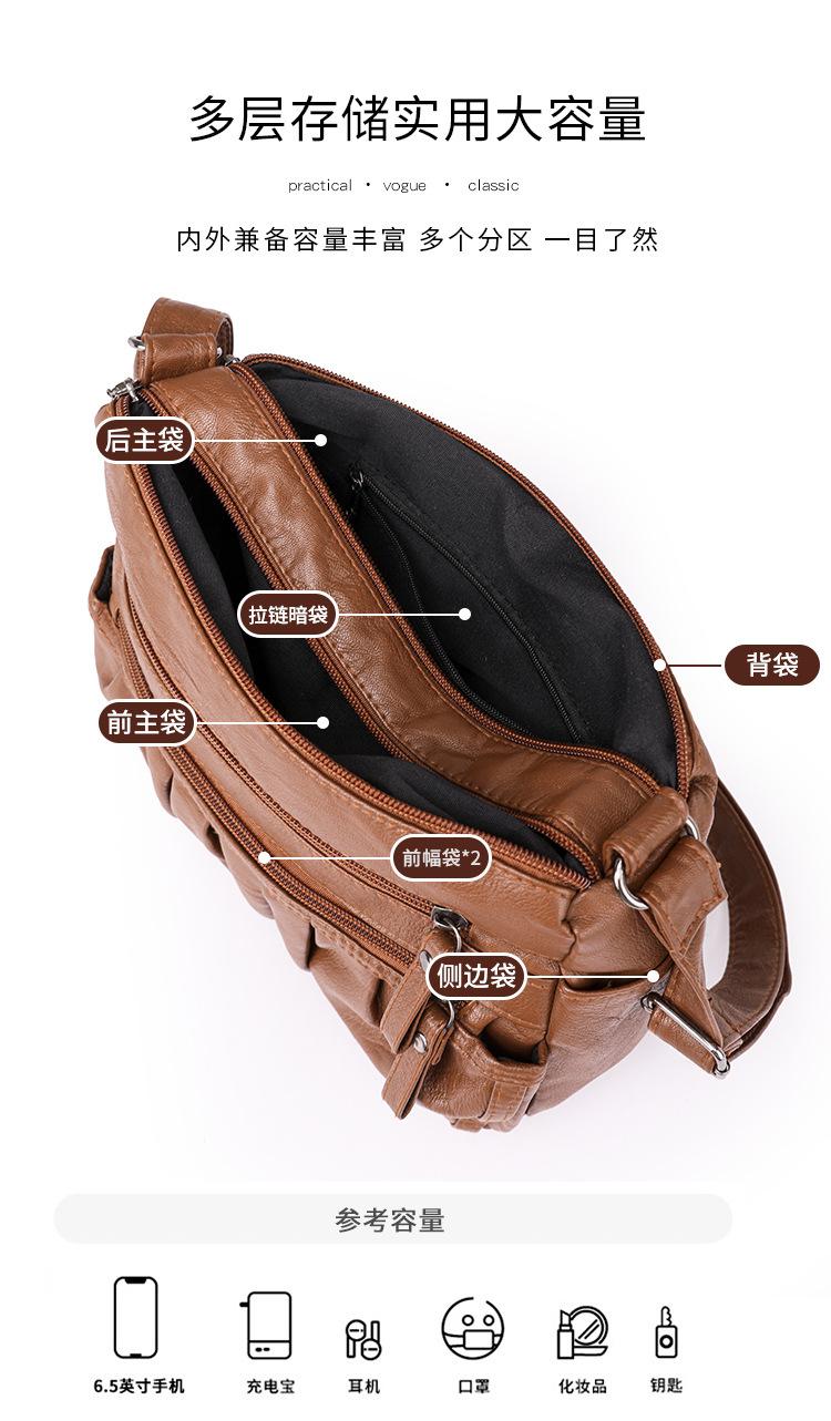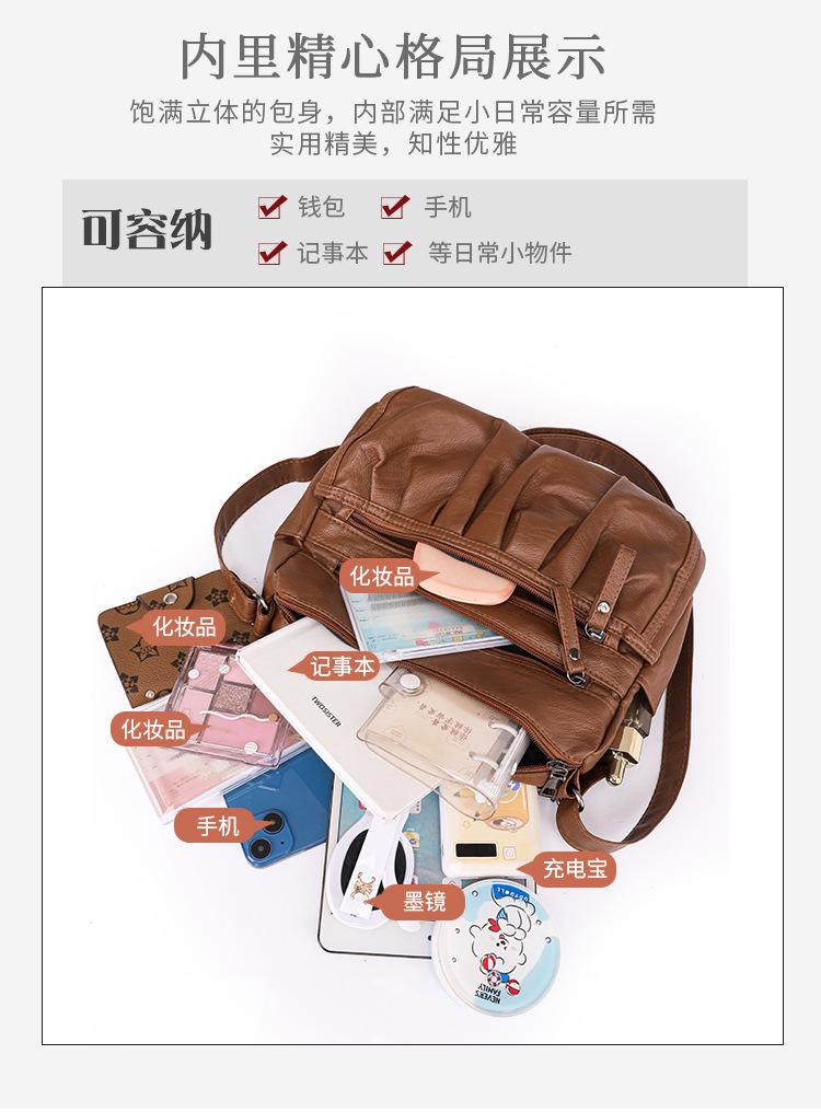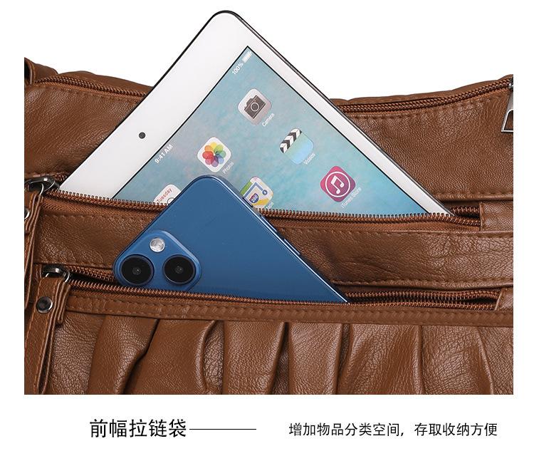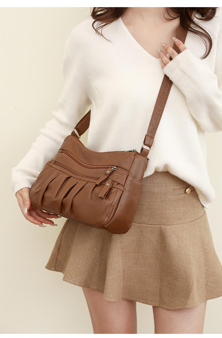 2023 Nuevo Estilo Material de Cuero Lavado Súper Suave Bolso de Mujer de Gran Capacidad Multicapa Bolso Bandolera de Moda de un Hombro