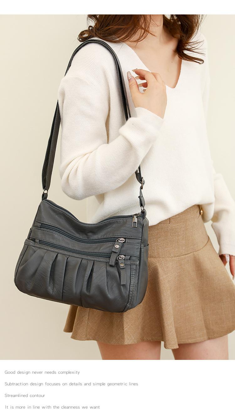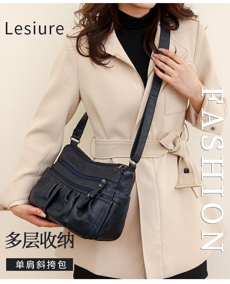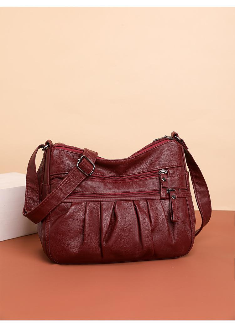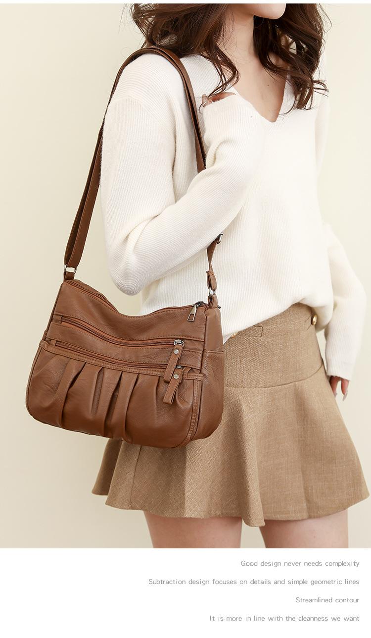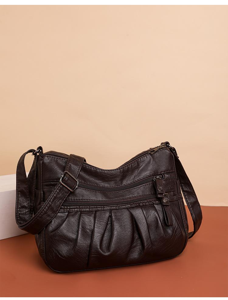2023 Nuevo Estilo Material de Cuero Lavado Súper Suave Bolso de Mujer de Gran Capacidad Multicapa Bolso Bandolera de Moda de un Hombro