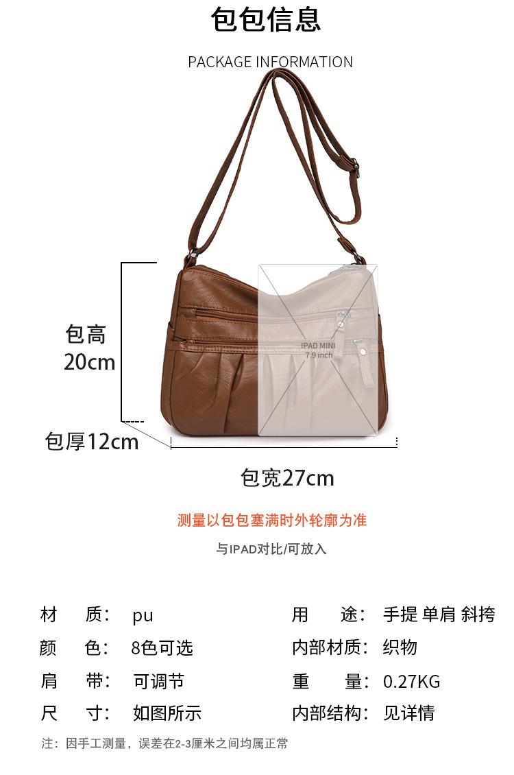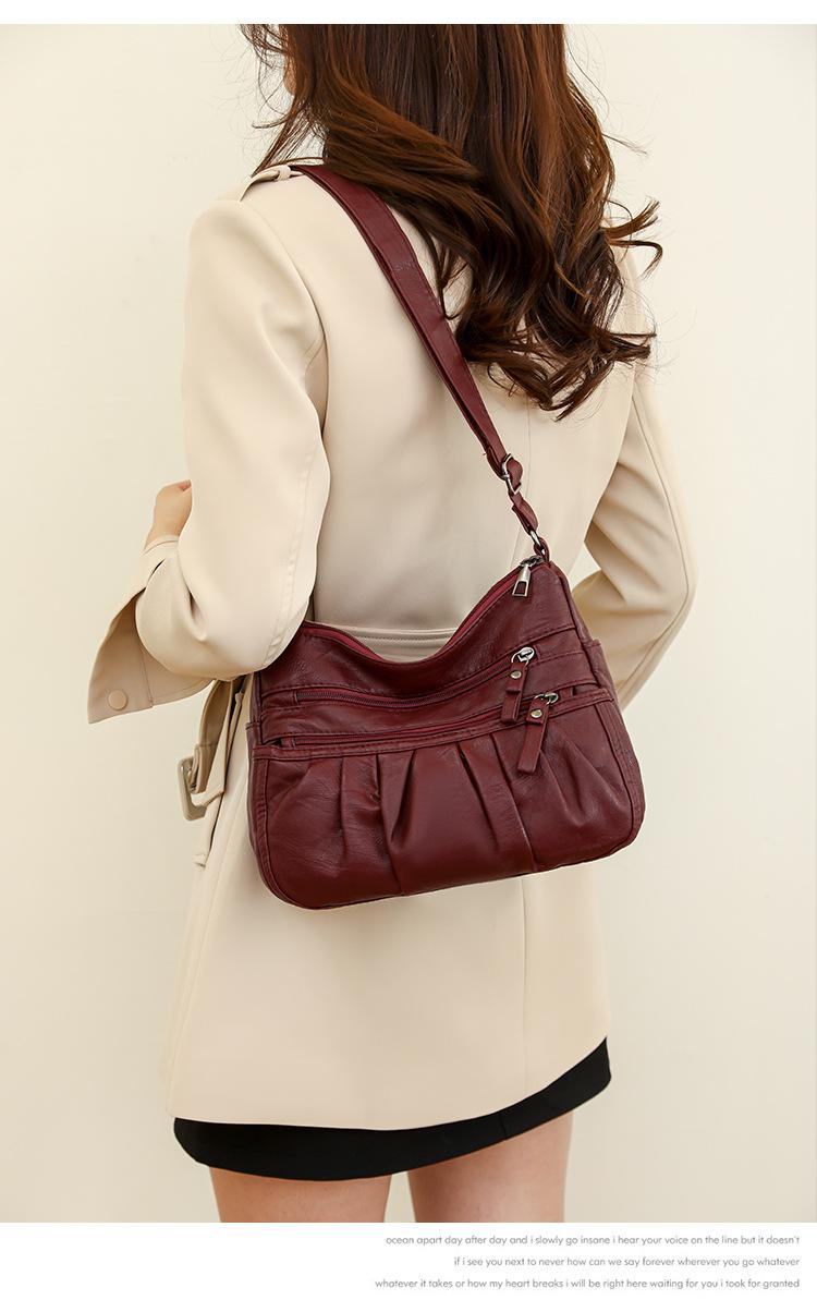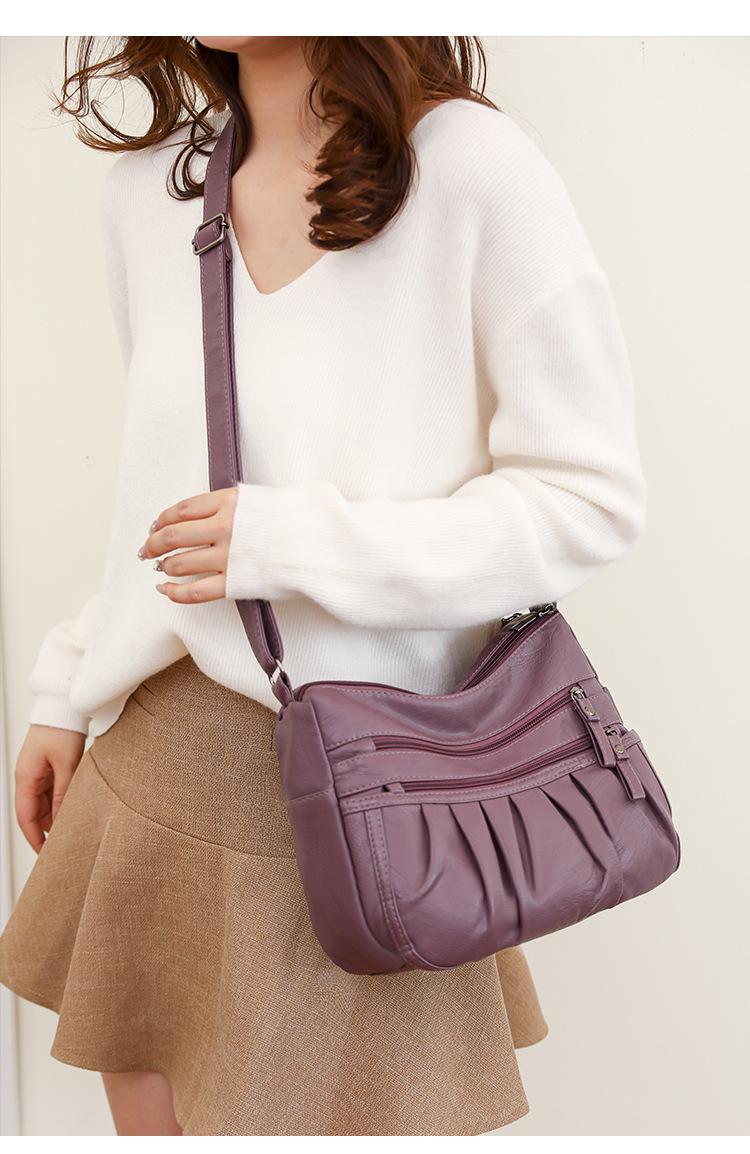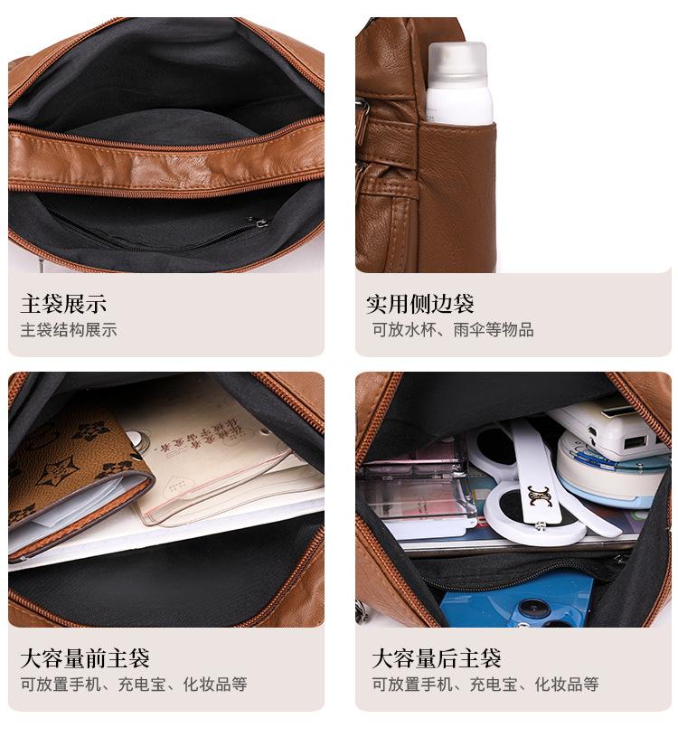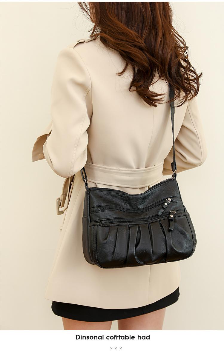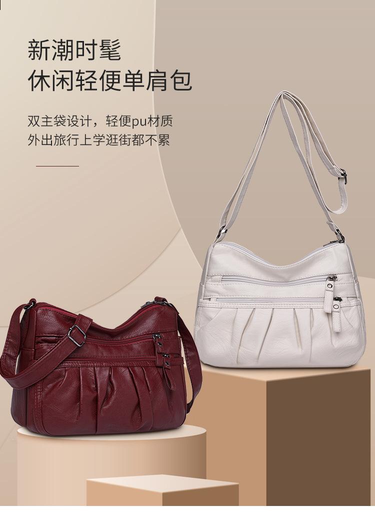 2023 Nuevo Estilo Material de Cuero Lavado Súper Suave Bolso de Mujer de Gran Capacidad Multicapa Bolso Bandolera de Moda de un Hombro