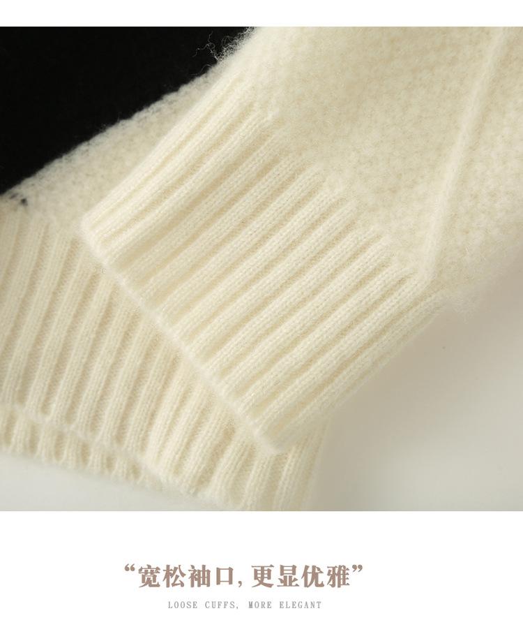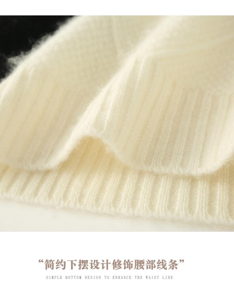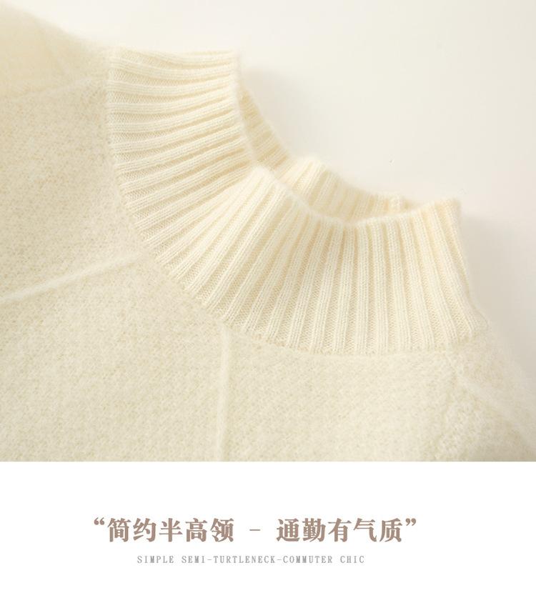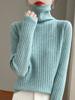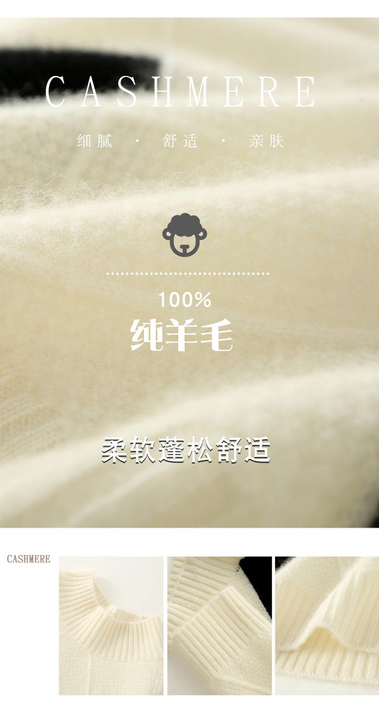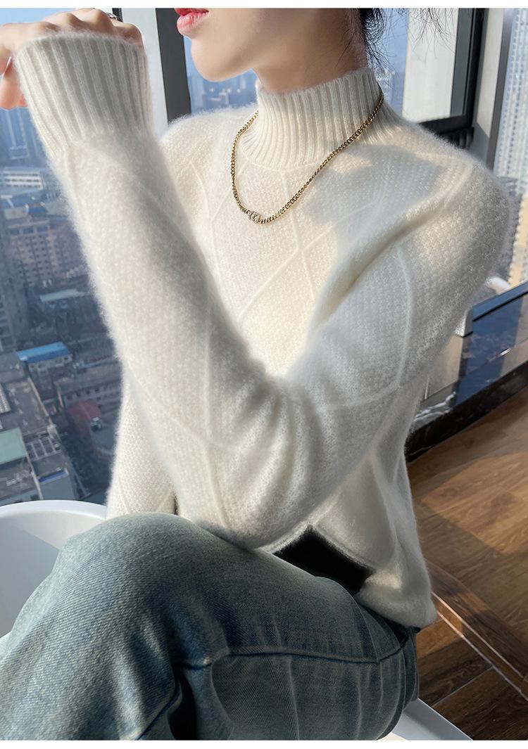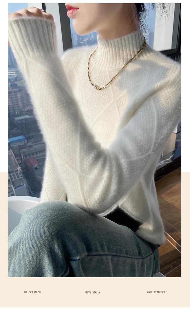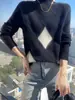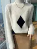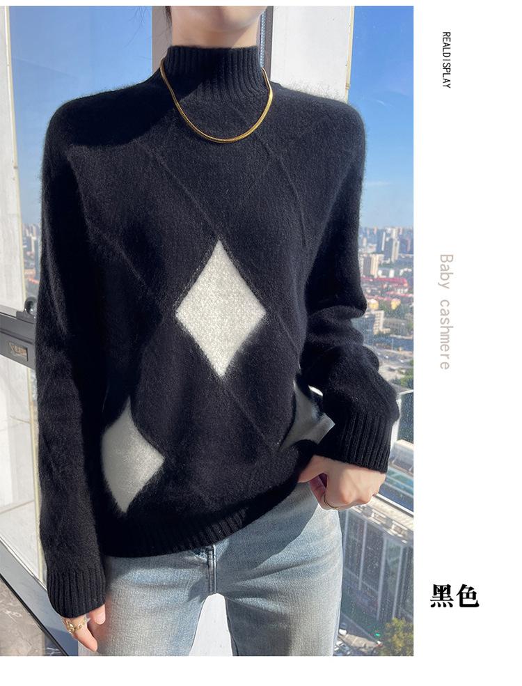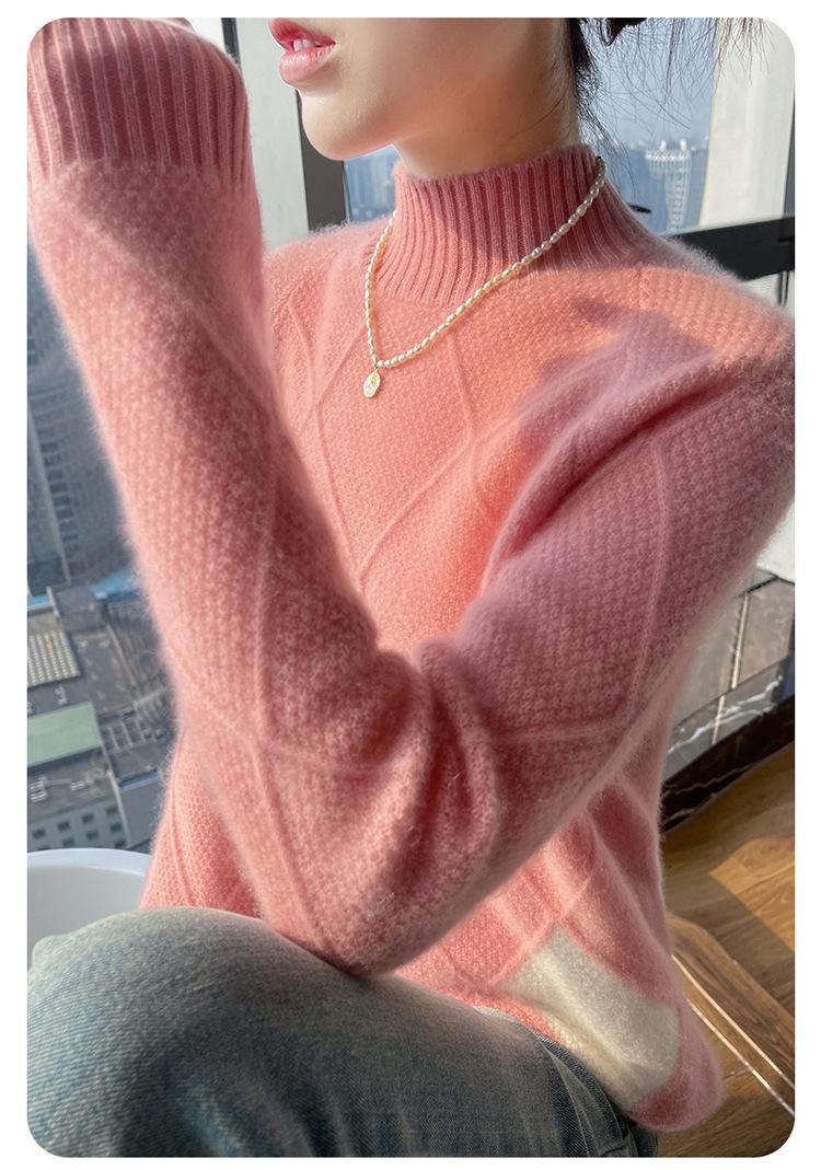 Suéter de Lana 100% Pura para Mujer de Otoño e Invierno 2024, Cuello Alto Medio, Combinación de Colores, Jacquard de Diamantes, Suéter Tejido Base