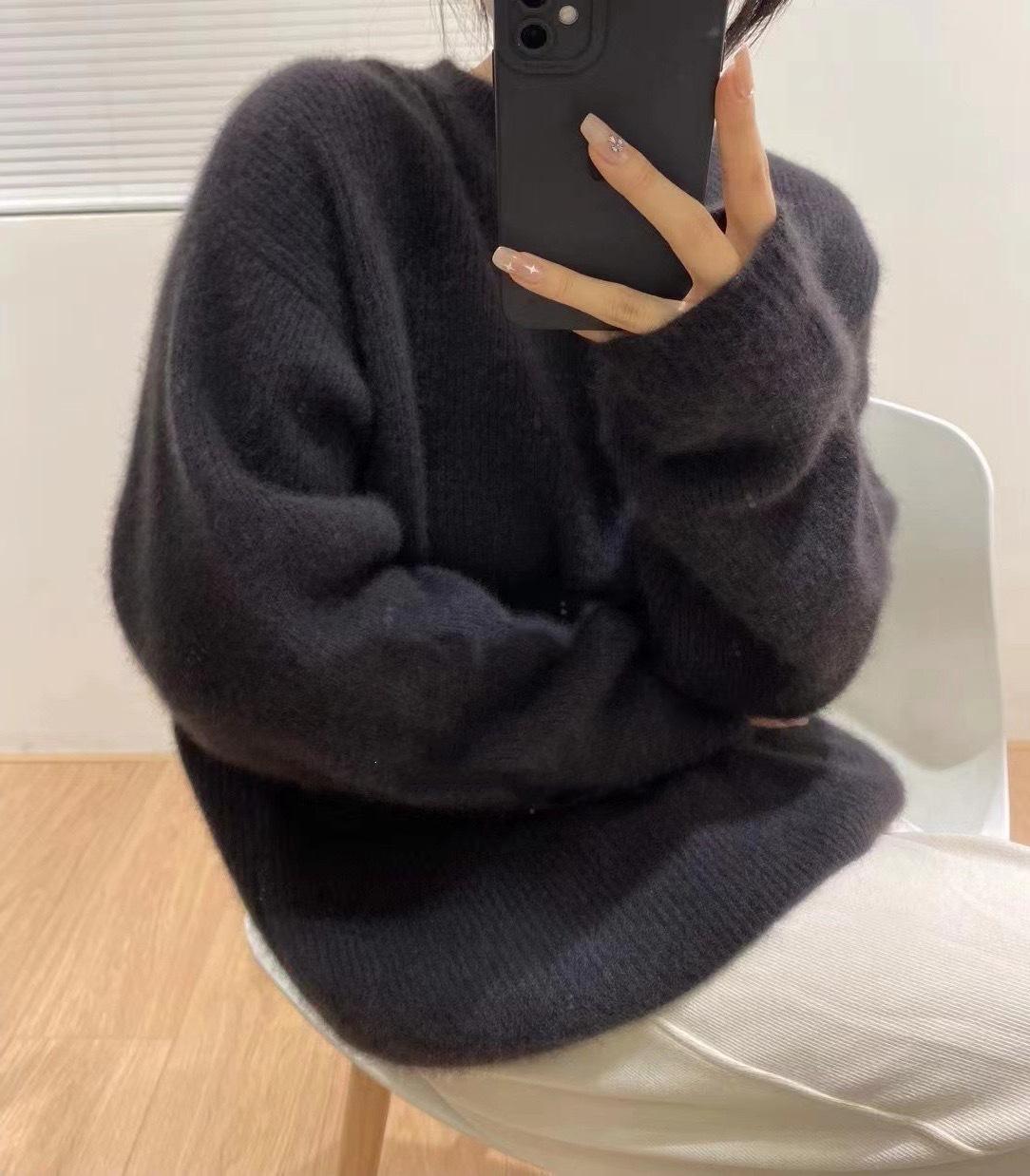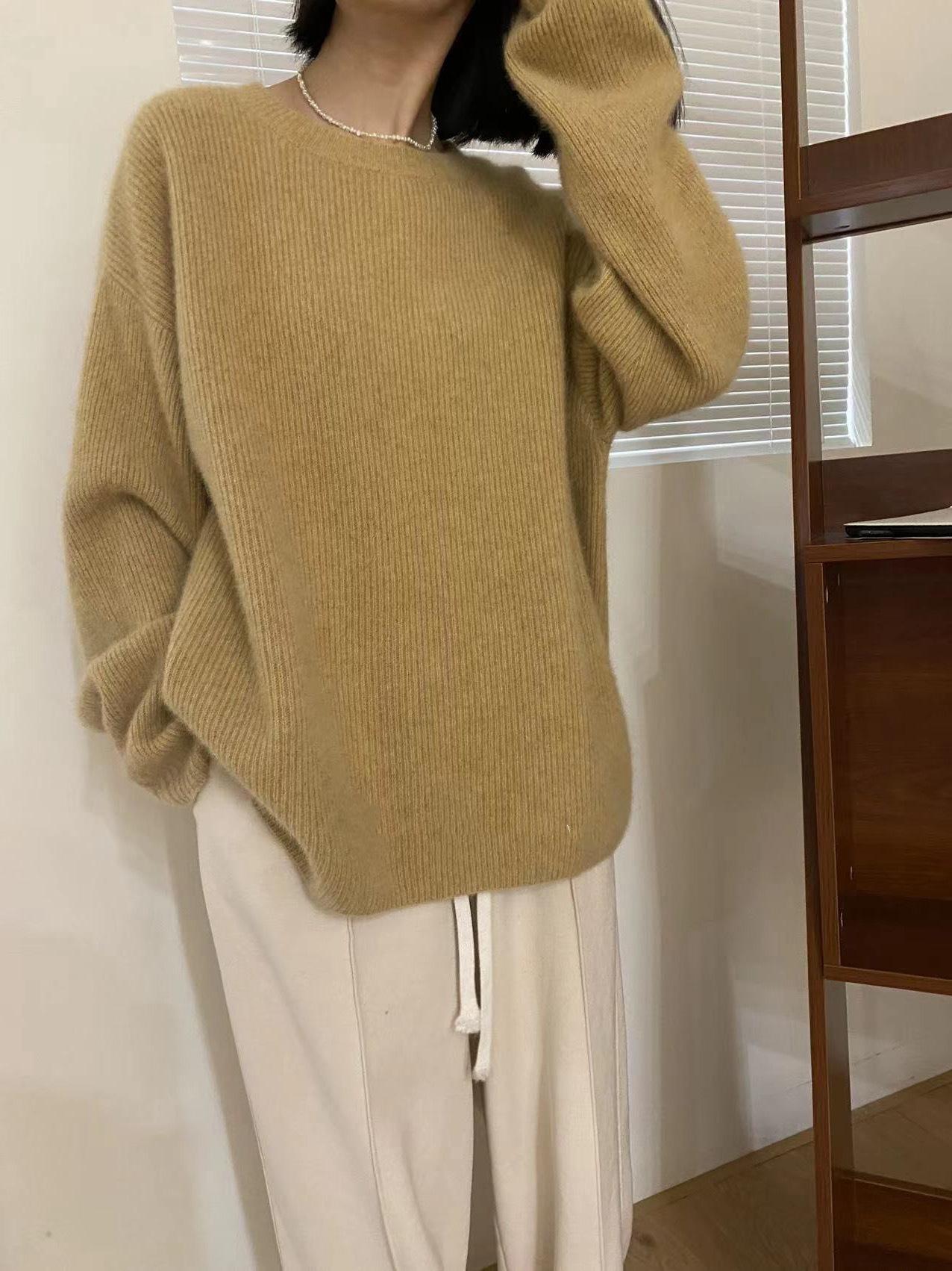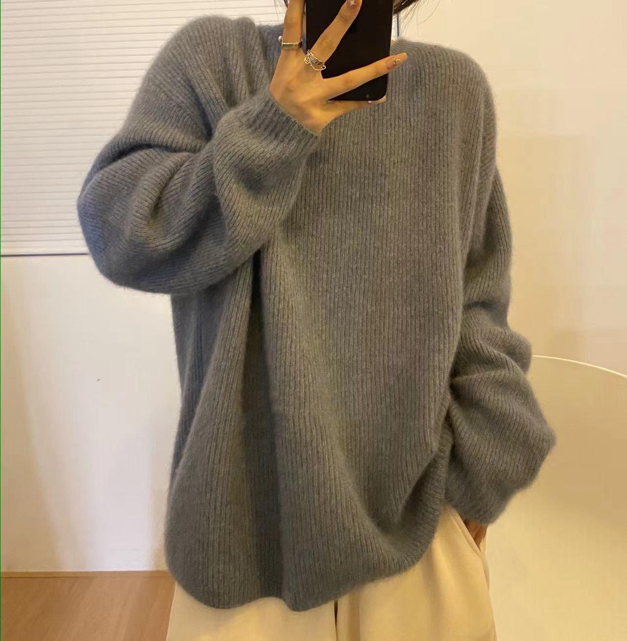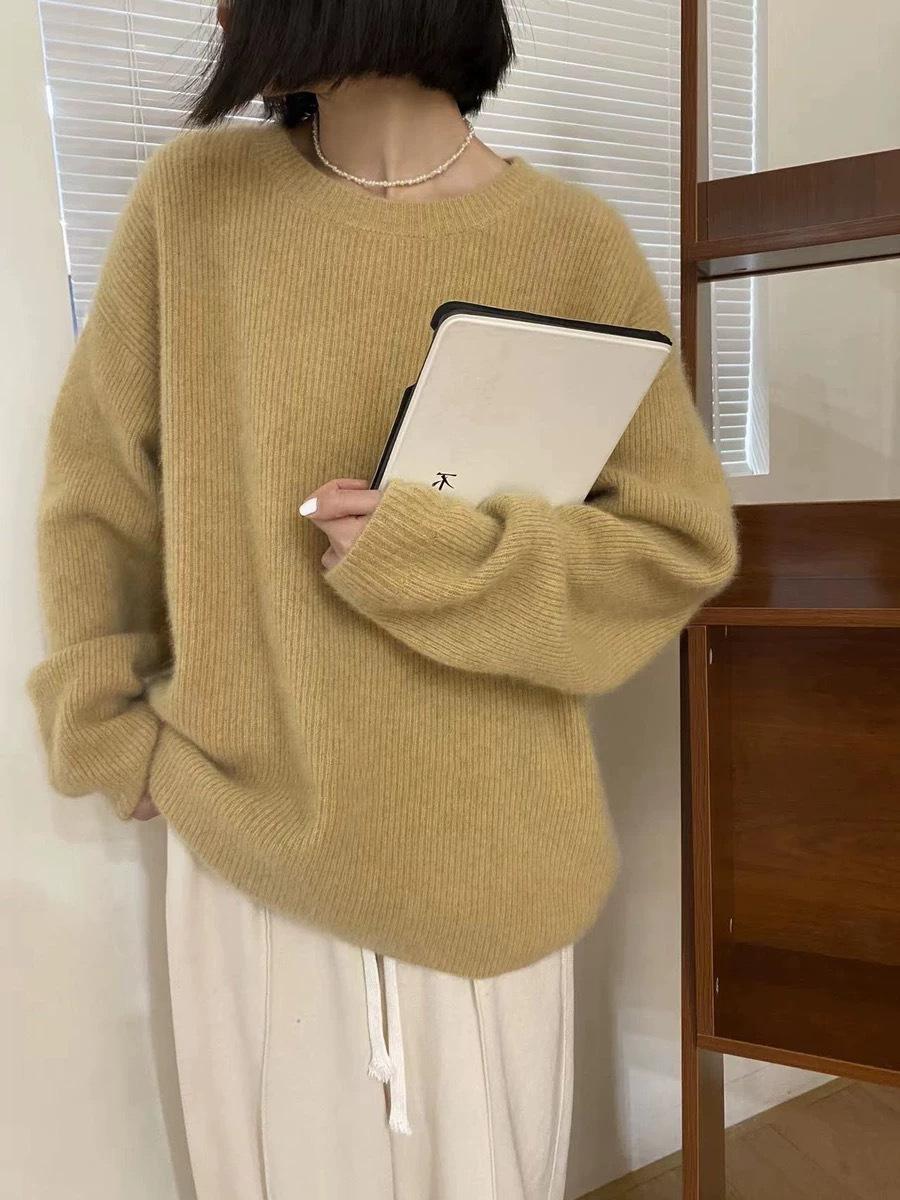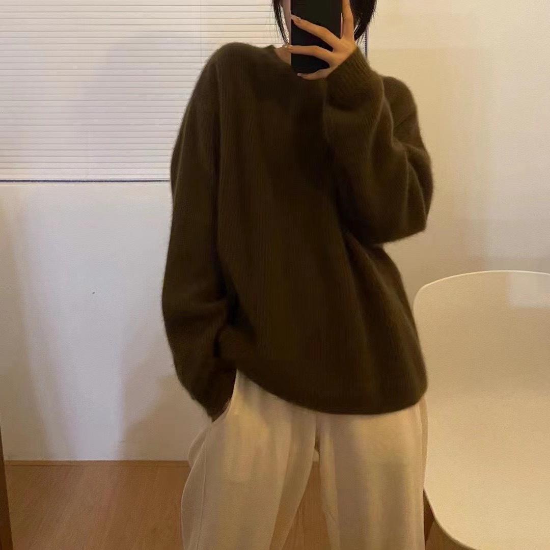 Suéter grueso de 12 agujas para mujer, cuello redondo, suave y glutinoso, nuevo de otoño e invierno, versátil, de cachemira tejida, camisa básica