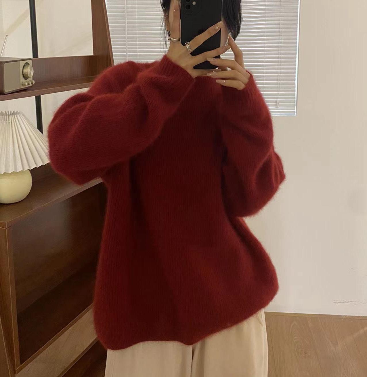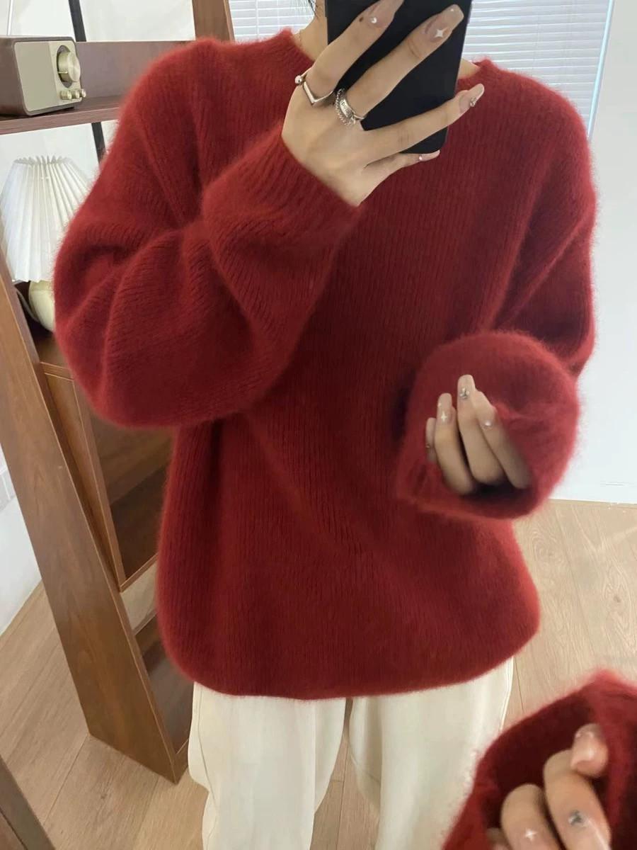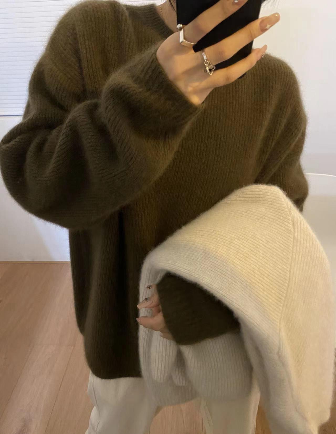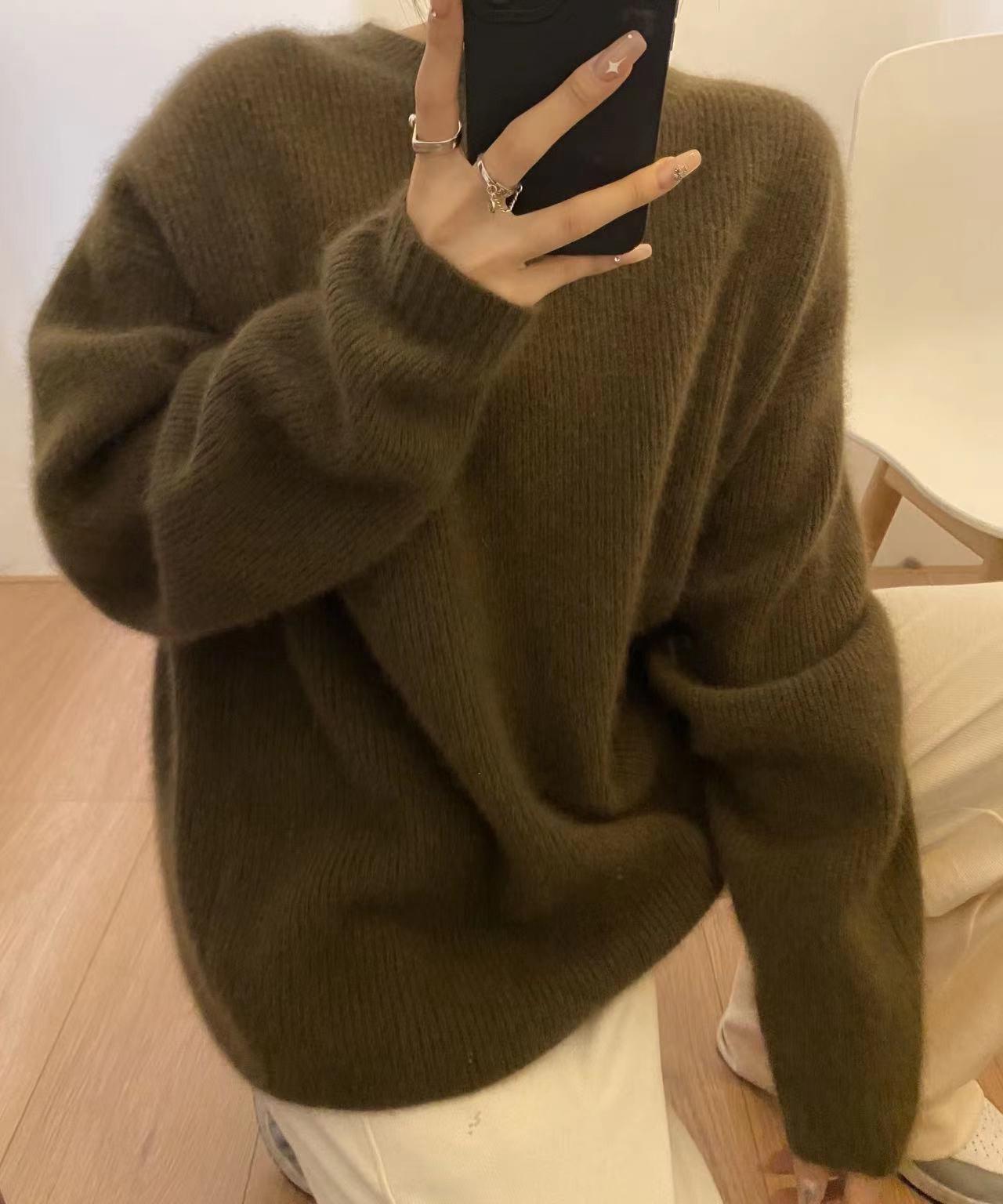 Suéter grueso de 12 agujas para mujer, cuello redondo, suave y glutinoso, nuevo de otoño e invierno, versátil, de cachemira tejida, camisa básica