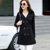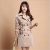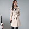 Abrigo de mujer con capucha de manga larga, holgado, adelgazante, de estilo coreano, personalizado, con doble botonadura y leche de papaya, de moda, para primavera y otoño