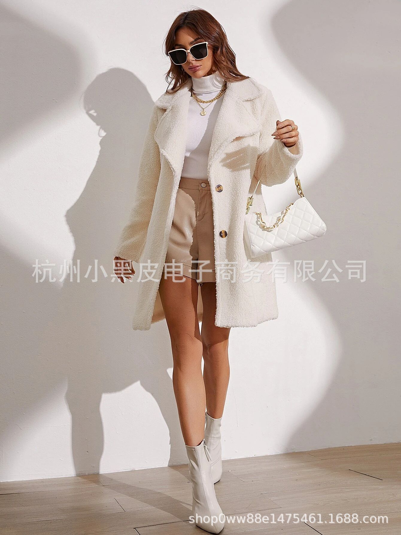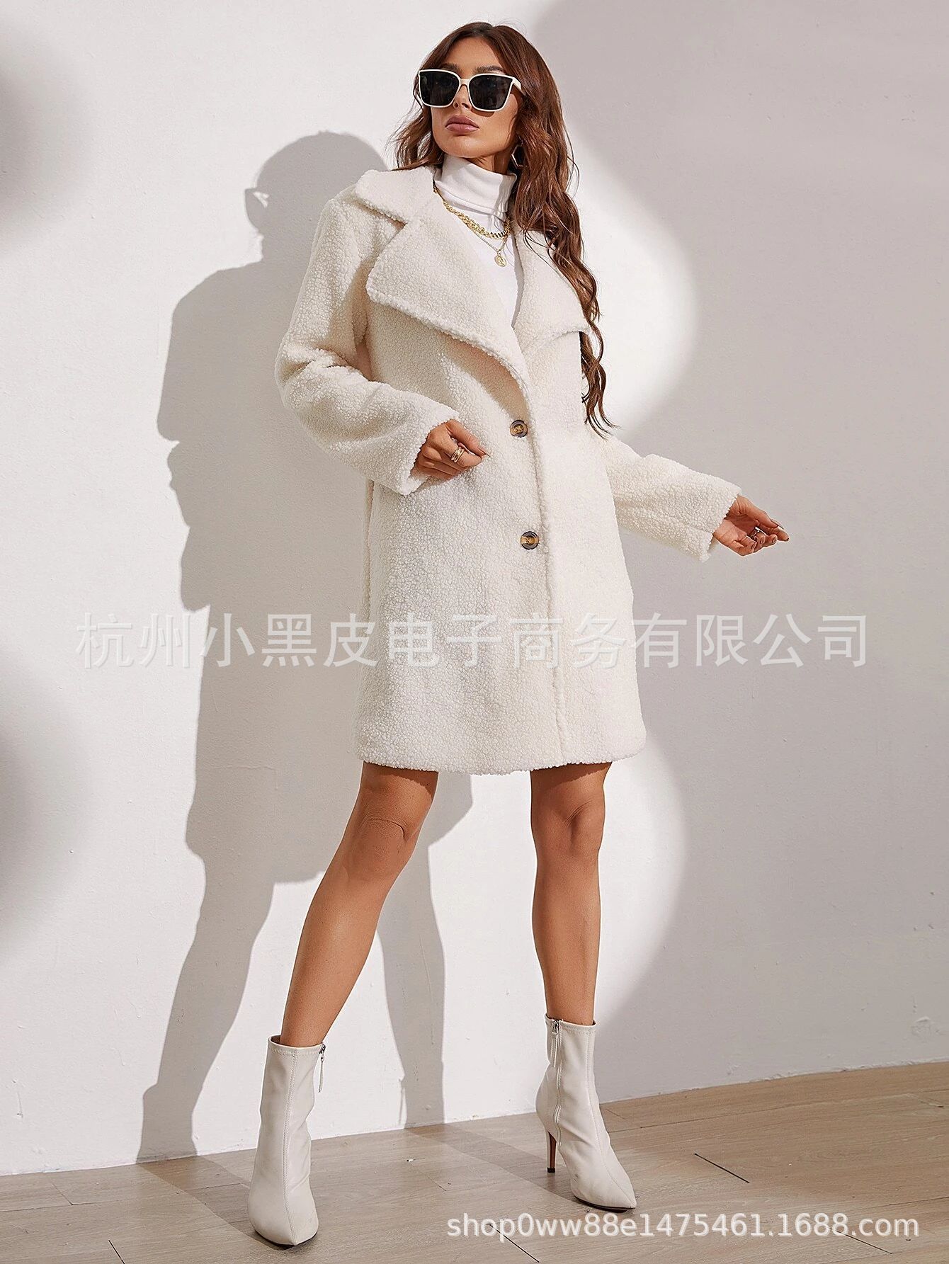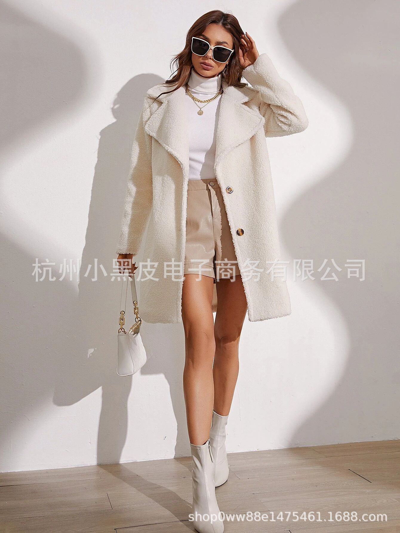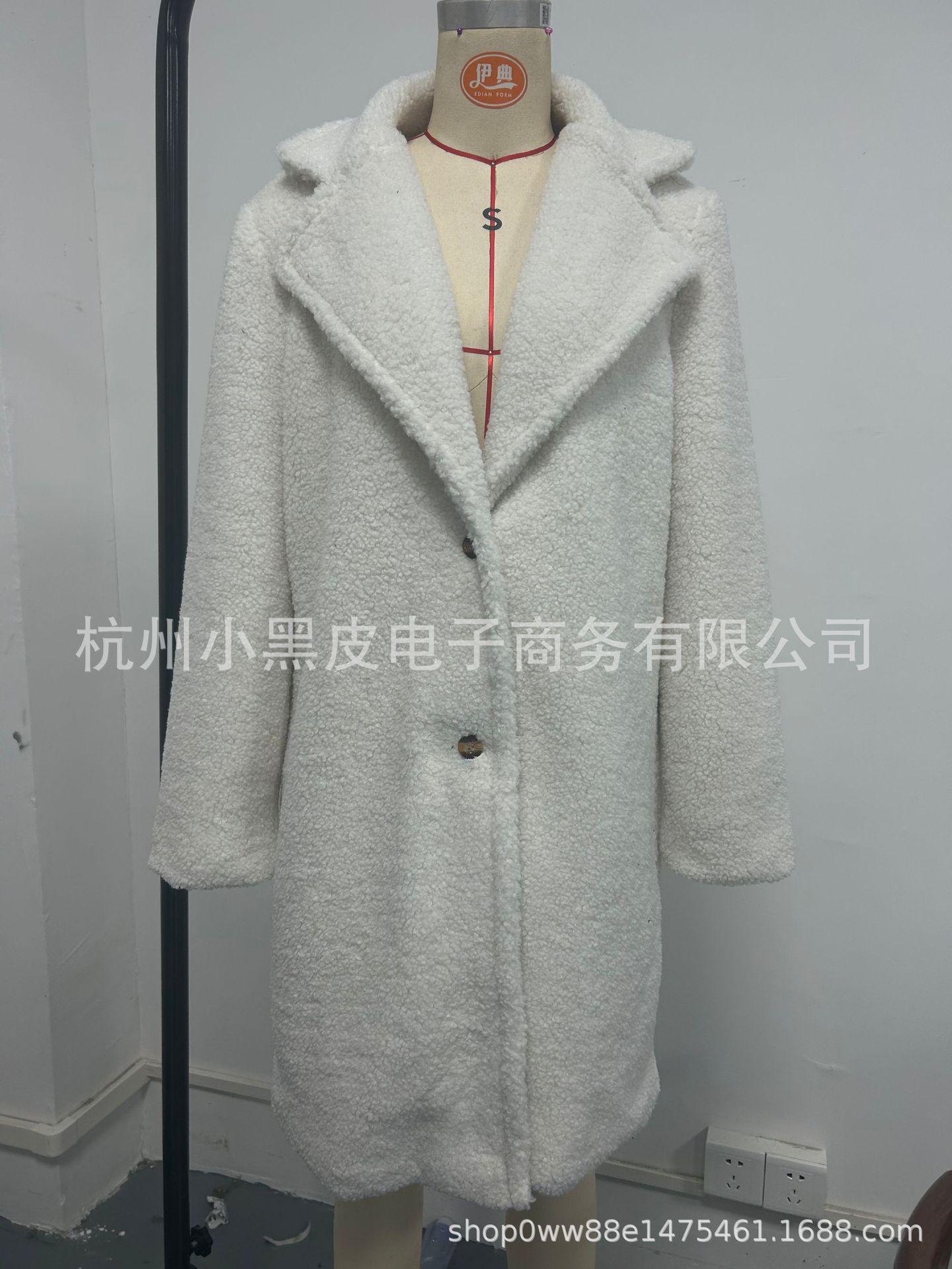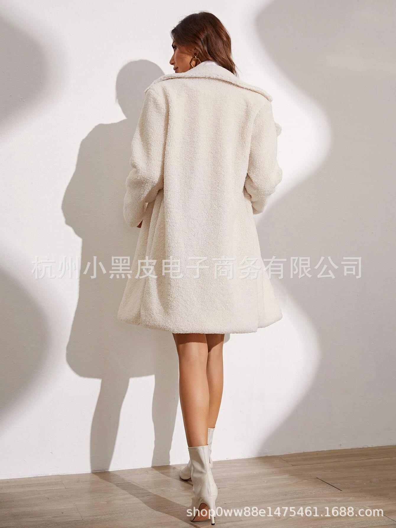 Abrigo informal de moda para mujer europea y americana, otoño e invierno, color sólido grueso, manga larga, abrigo largo de felpa para mujer