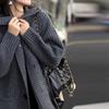 Cárdigan de punto de cachemira con capucha de longitud media, holgado y estilo perezoso, estilo europeo pesado, para otoño e invierno, gorro largo de lana para mujer