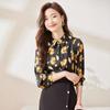 Camisa Floral para Mujer Primavera y Otoño 2025 Nueva Diseño Retro Holgado Top Popular Camisa de Gasa de Manga Larga