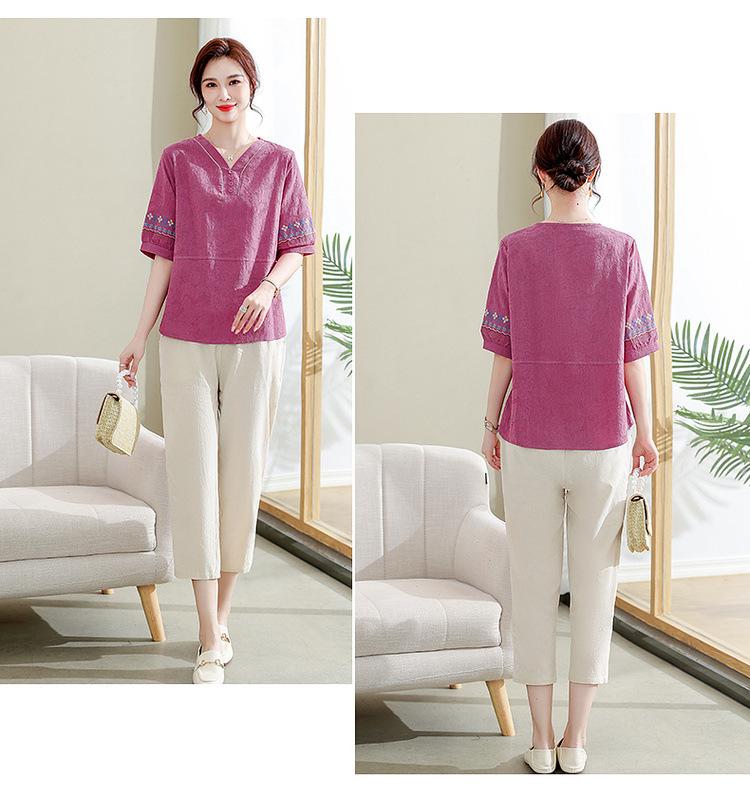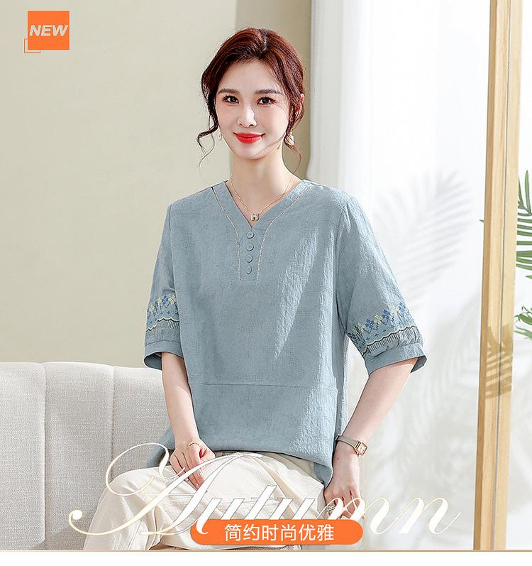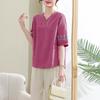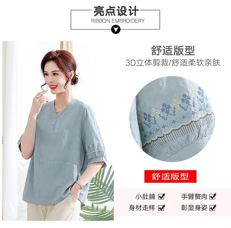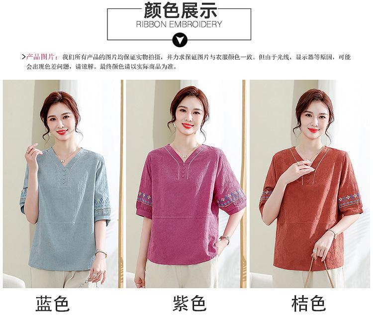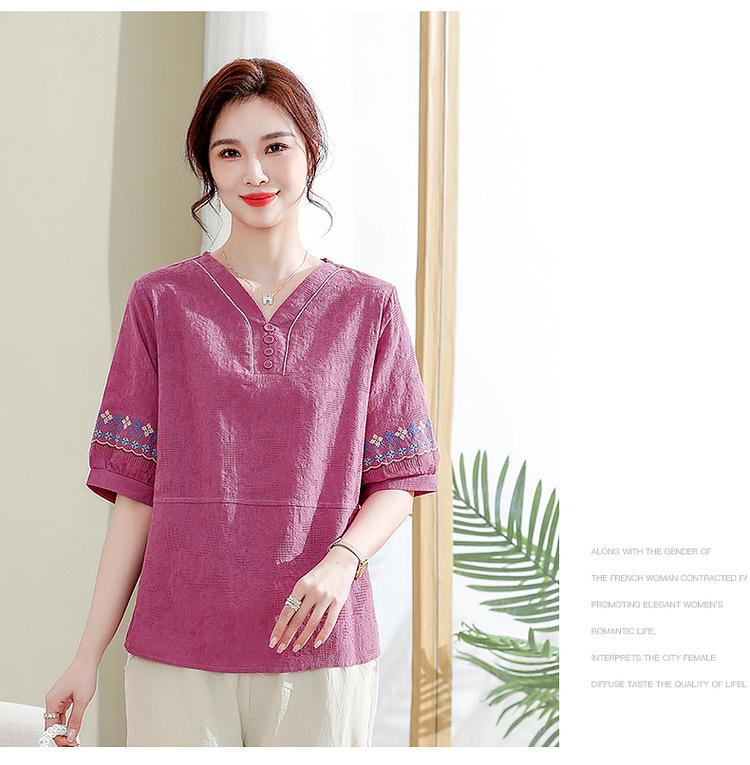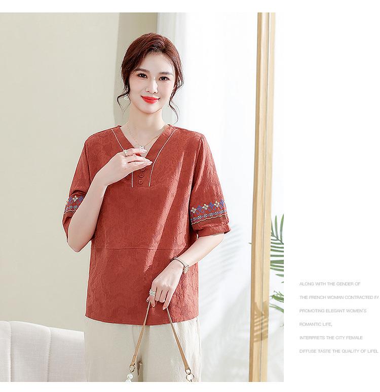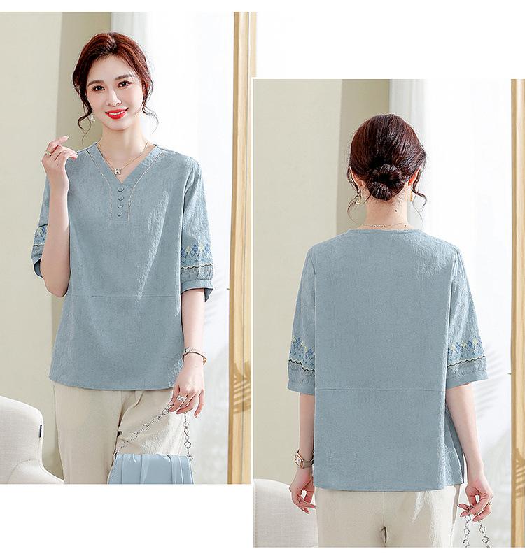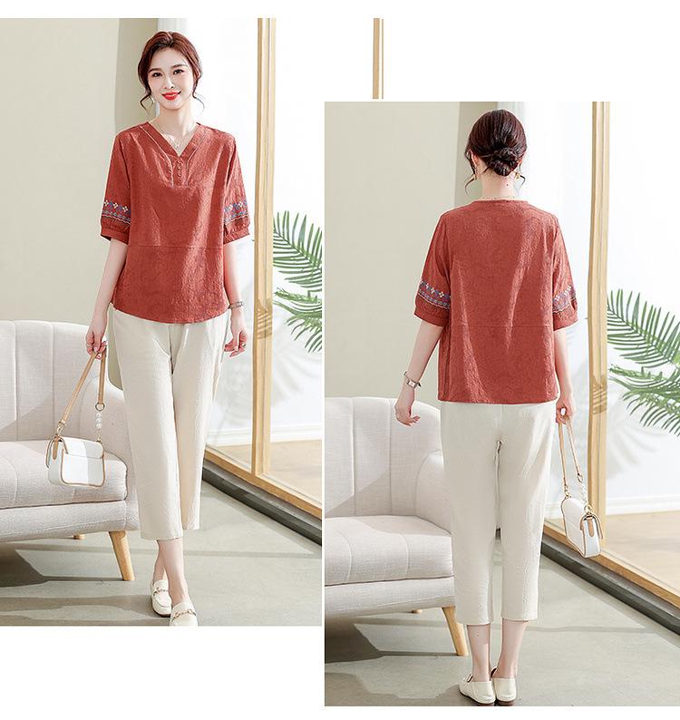 Ropa de Madre Nuevo Estilo Chino 2024 Nuevo Verano Manga Corta Casual Holgado Moda Algodón y Lino Tops Nuevo Estilo