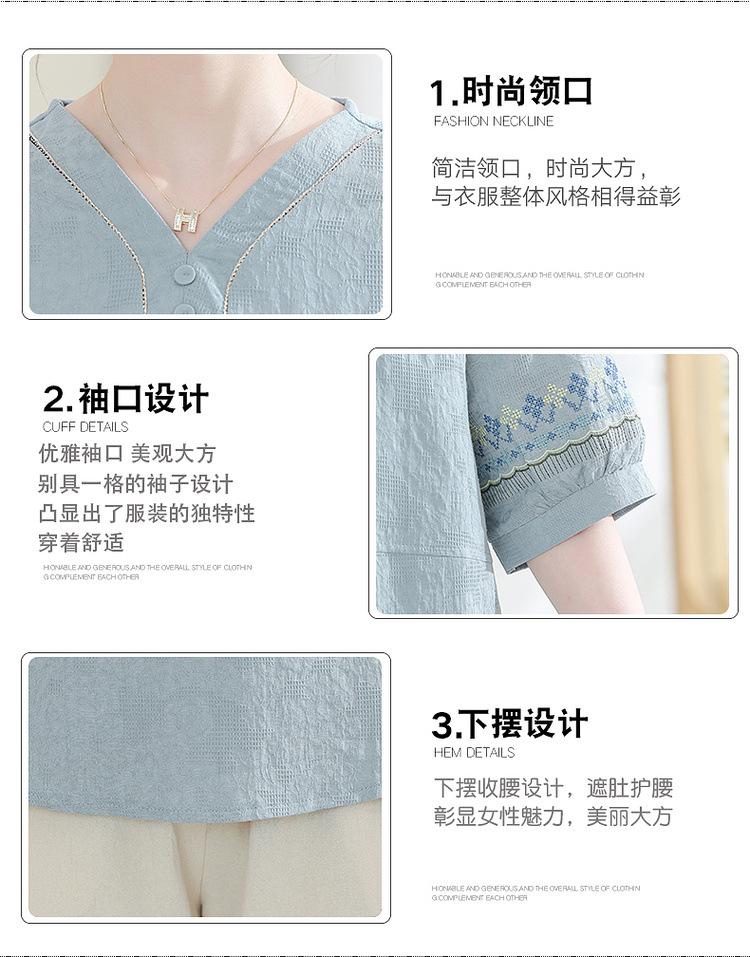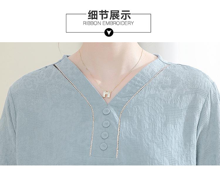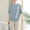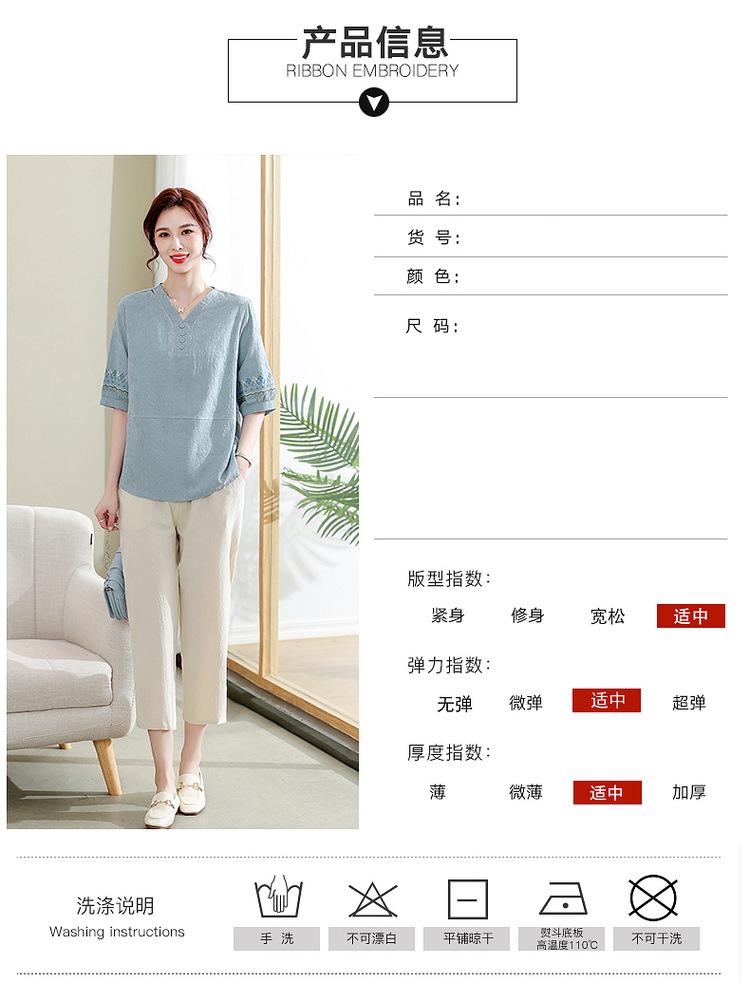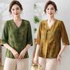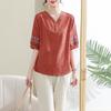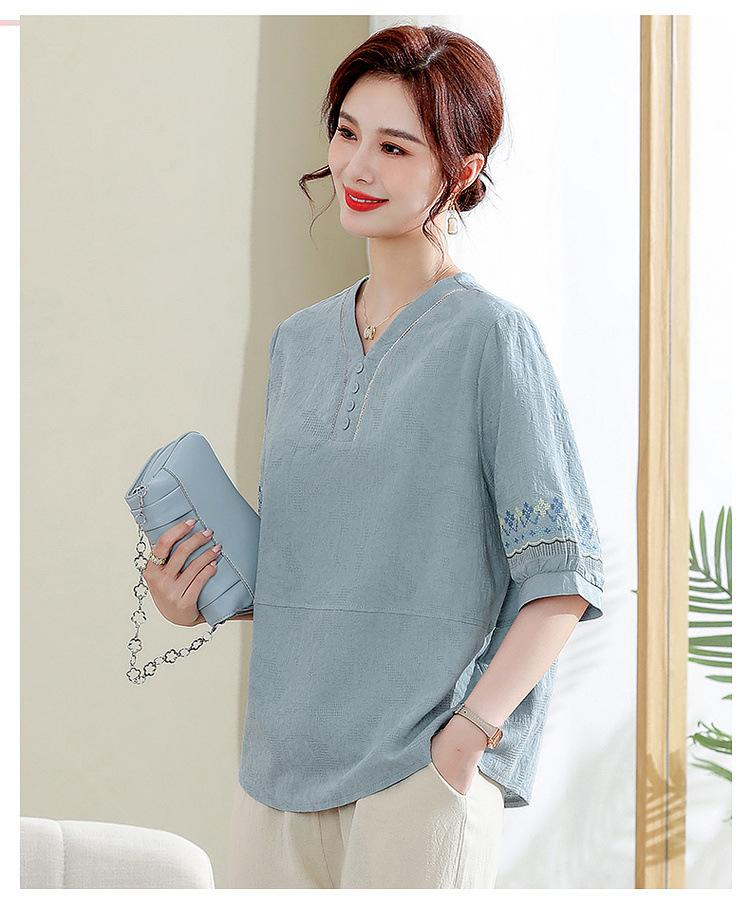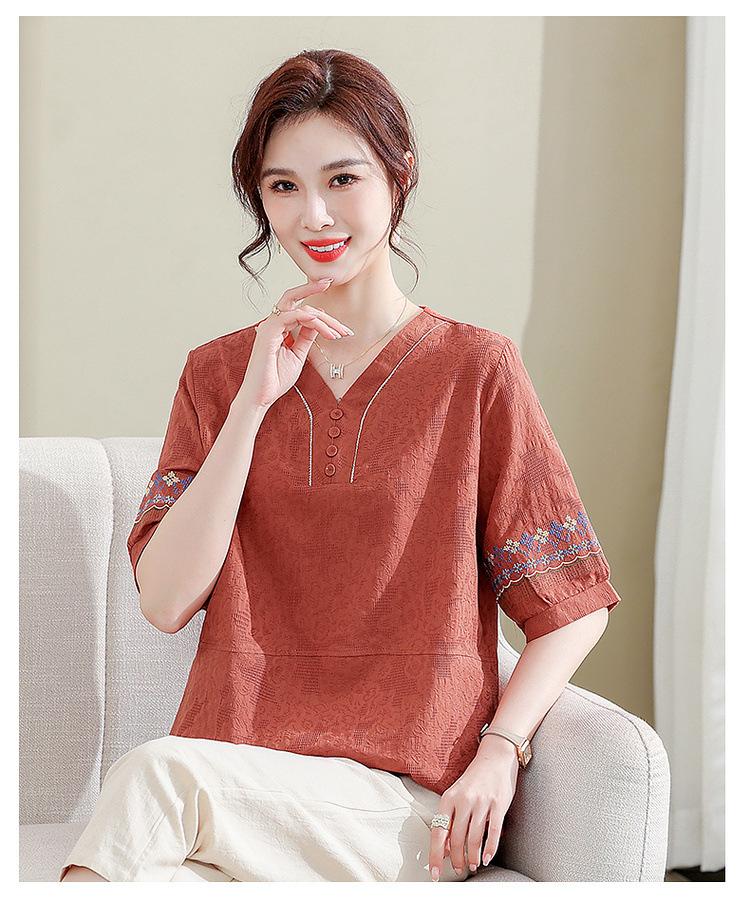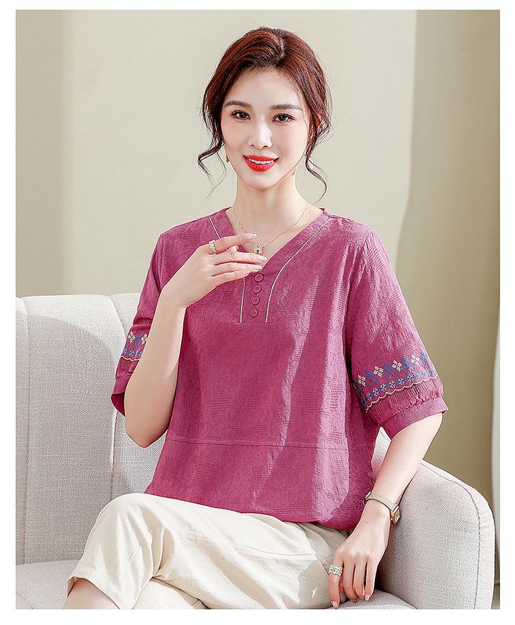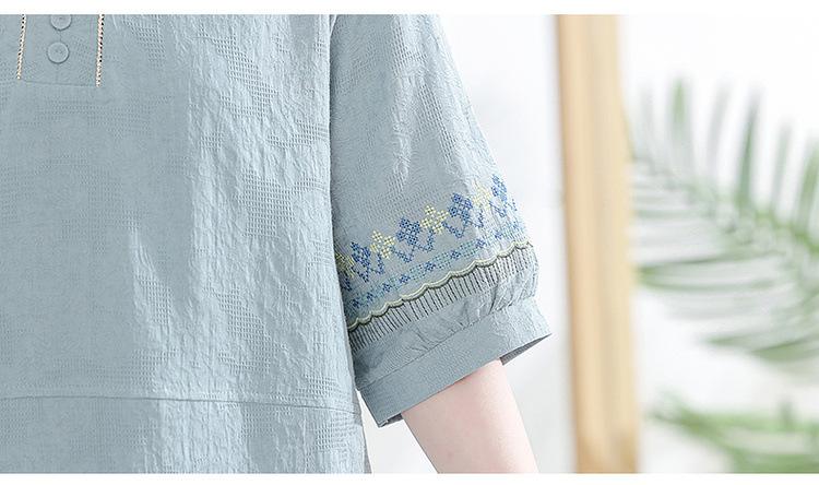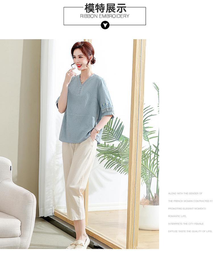 Ropa de Madre Nuevo Estilo Chino 2024 Nuevo Verano Manga Corta Casual Holgado Moda Algodón y Lino Tops Nuevo Estilo