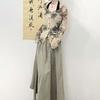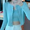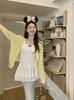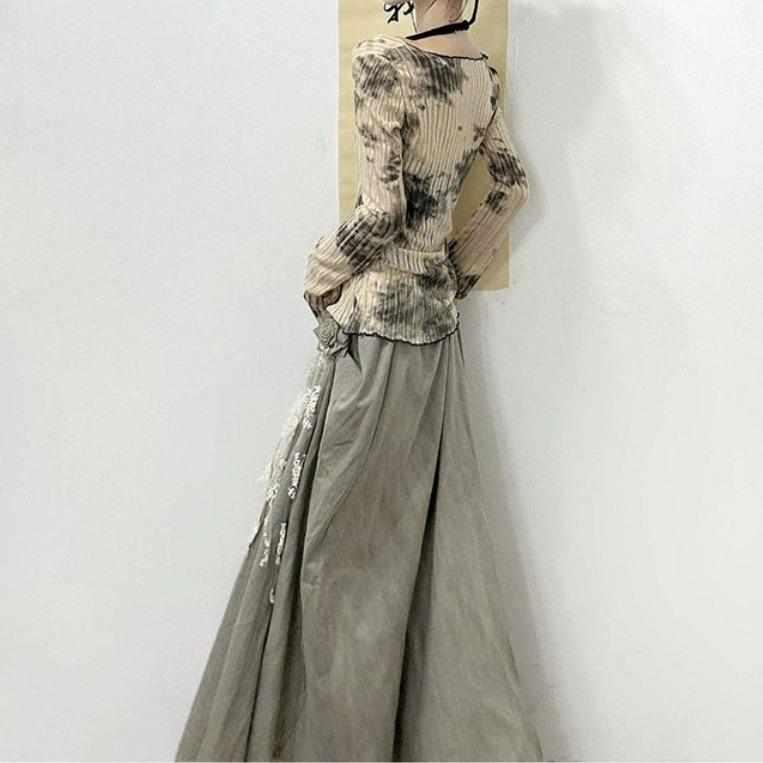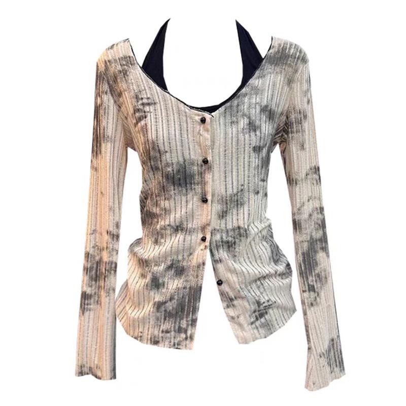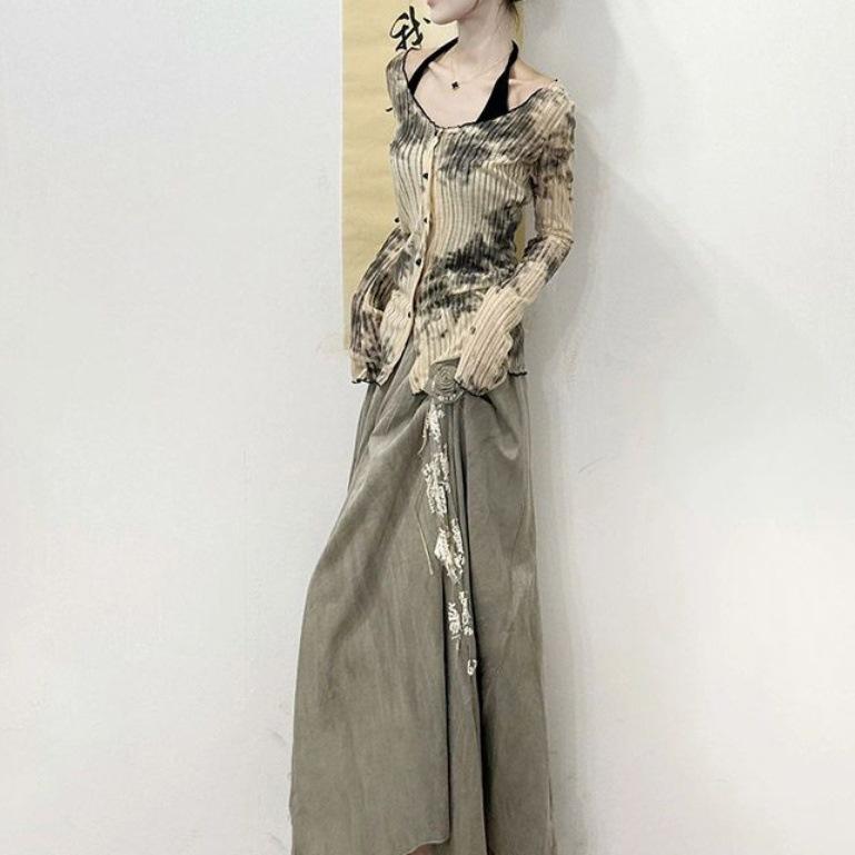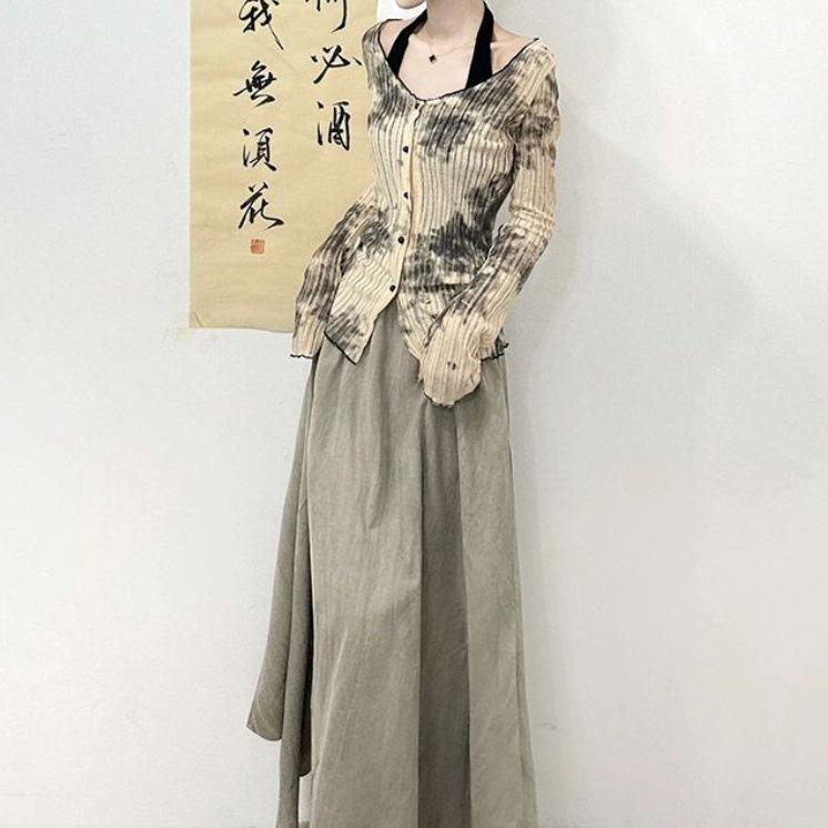 Cárdigan de punto de manga larga teñido anudado de diseño para mujer Primavera y Otoño 2025 Falda sencilla Conjunto de dos piezas de moda para mujer Ins
