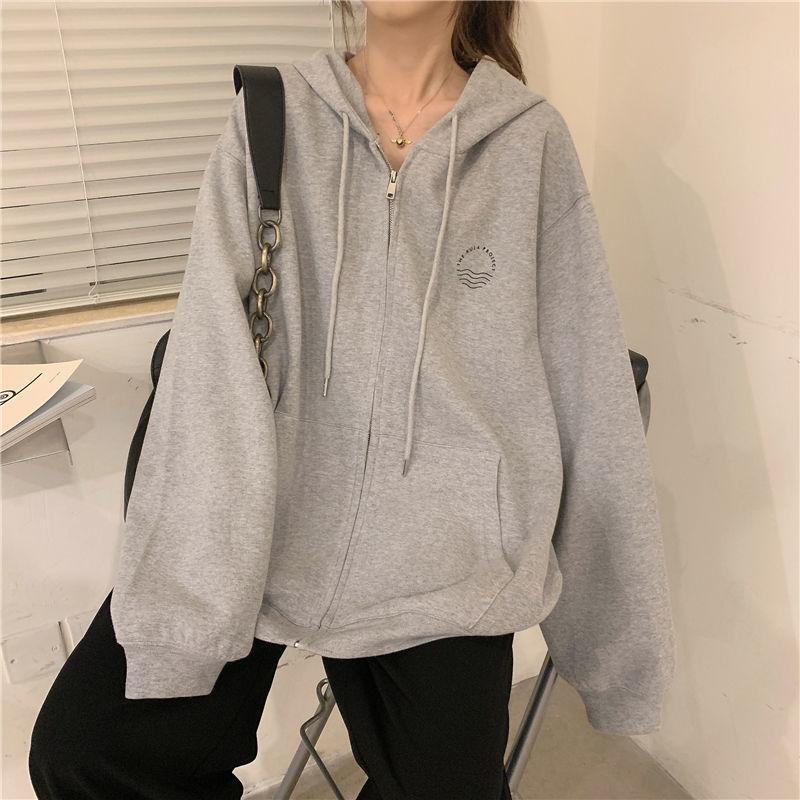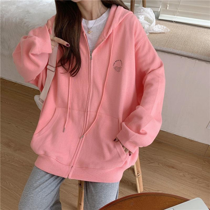 2025 Primavera y Otoño Nuevo Estilo Coreano Suelto y Versátil Sudadera de Terciopelo con Capucha para Estudiantes para Mujer Top de Longitud Media Chaqueta Ins