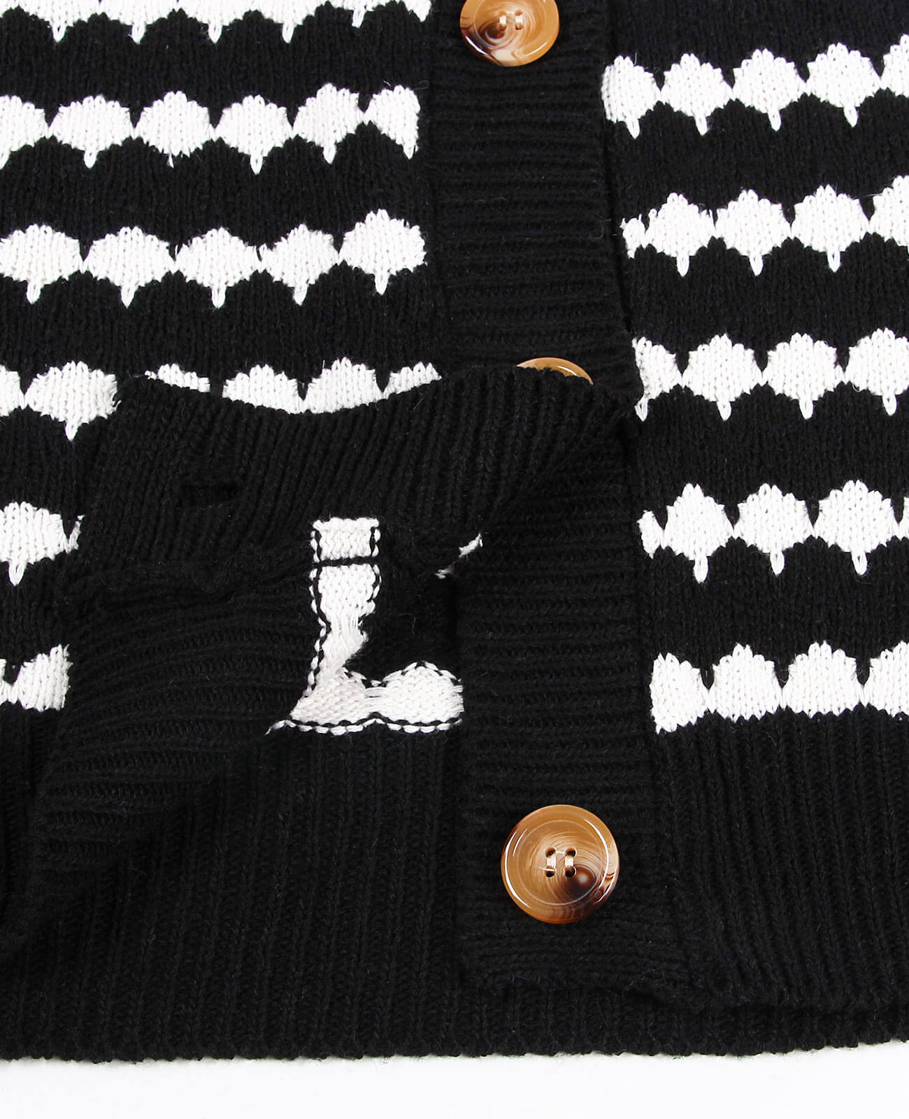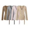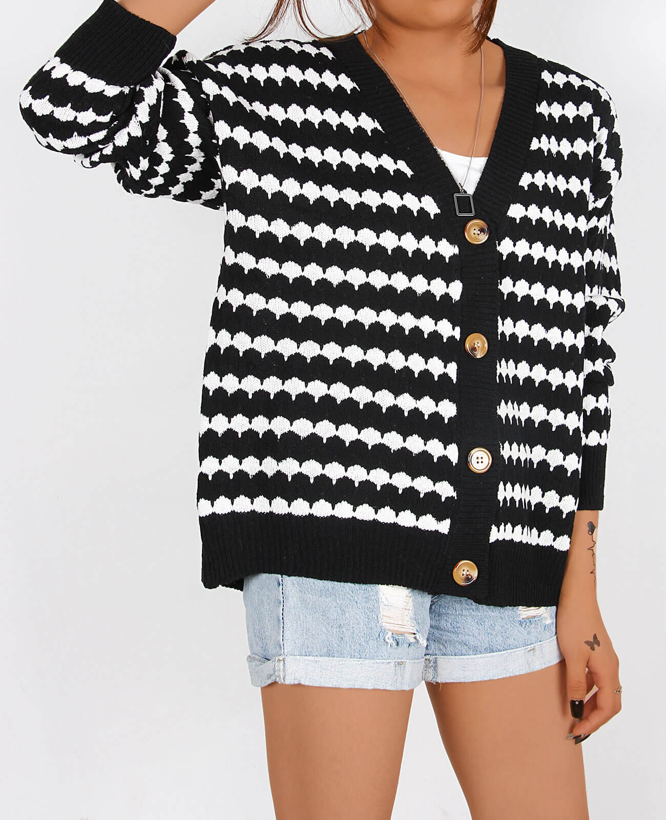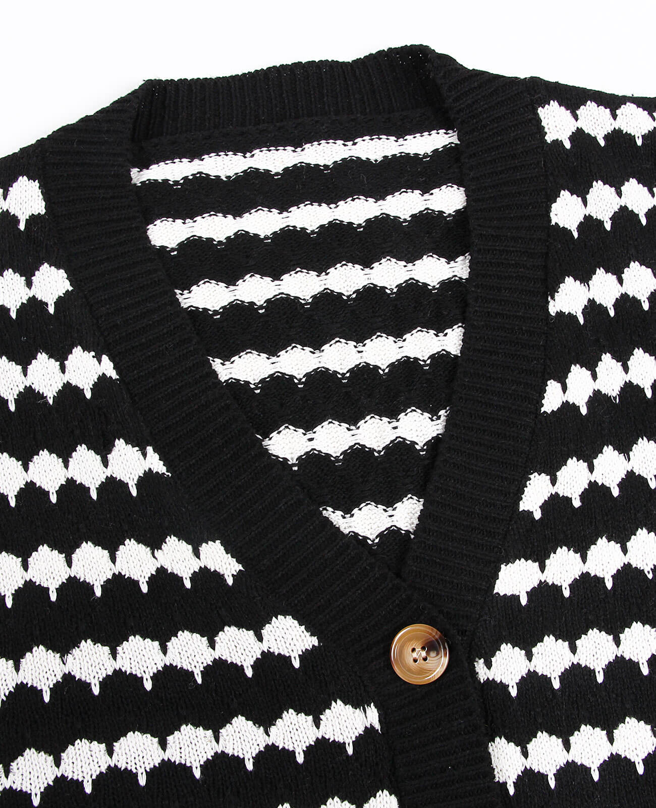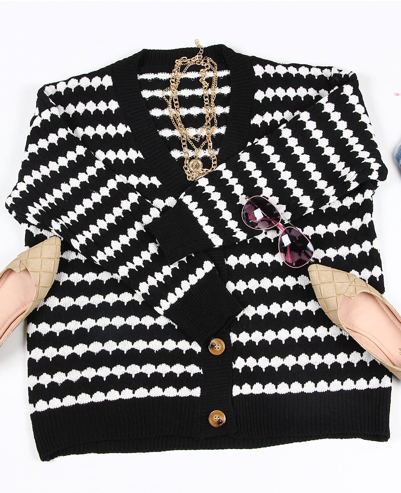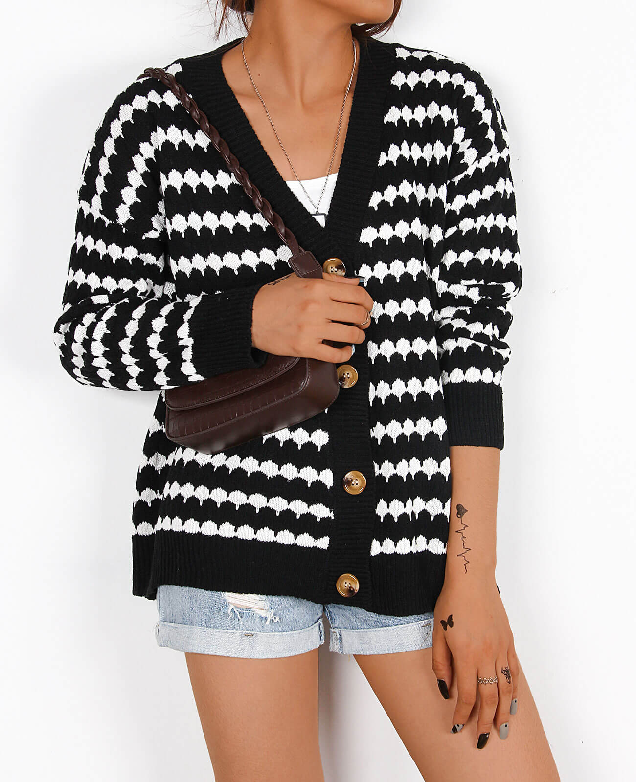 Otoño Nuevo Estilo Europeo y Americano Chaqueta Holgada de Moda para Mujer Cuello en V Rayado Bloque de Color Cárdigan Suéter de Un Solo Botón Top