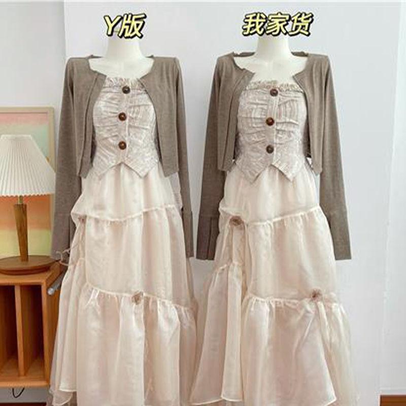 Vestido tubo francés para mujer, falda midi de hada de alta gama de nicho, cárdigan, traje de moda de dos piezas