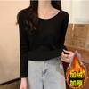 2023 nuevo suéter grueso con forro polar de otoño e invierno, camiseta de manga larga de algodón, jersey de cuello redondo para mujer, top suelto