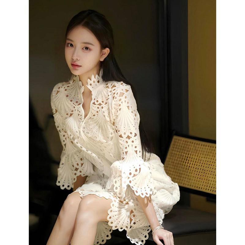 2024 verano nuevo vestido de encaje blanco exquisito hermoso de alta gama con temperamento francés súper hermoso
