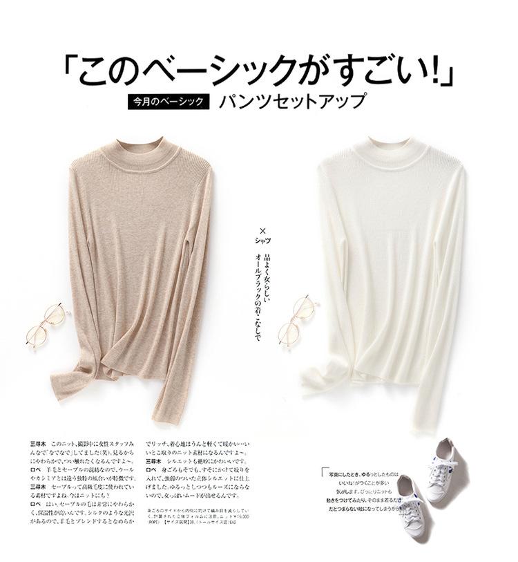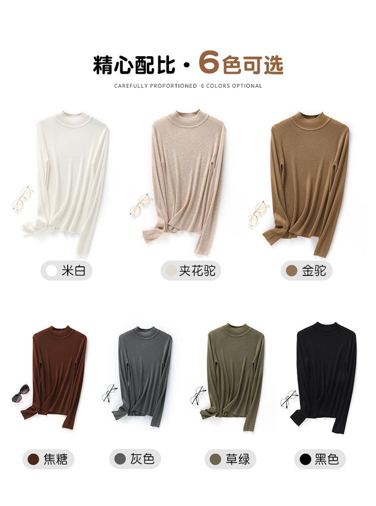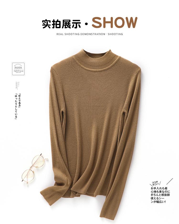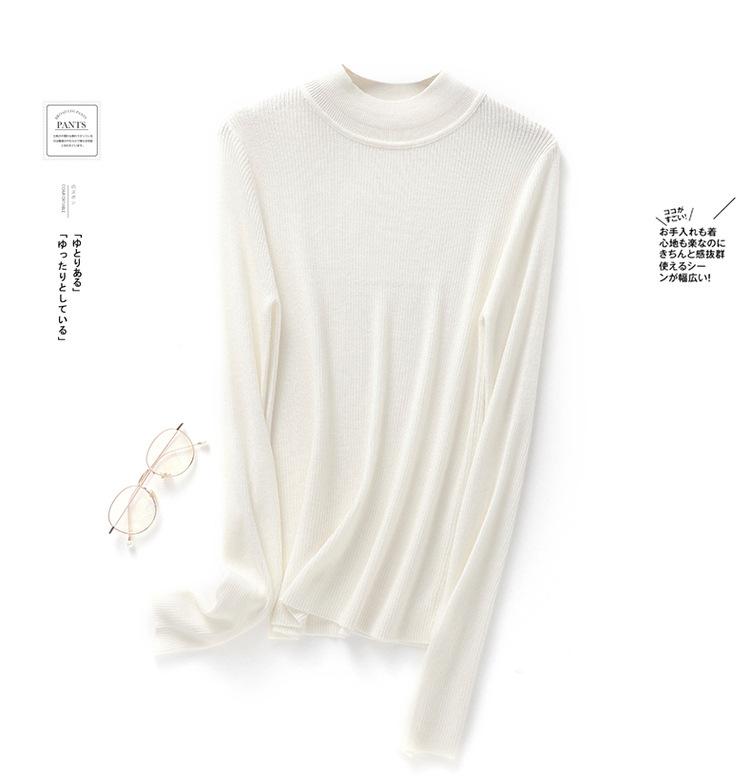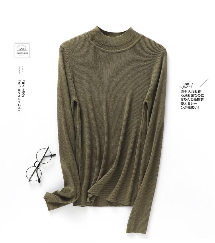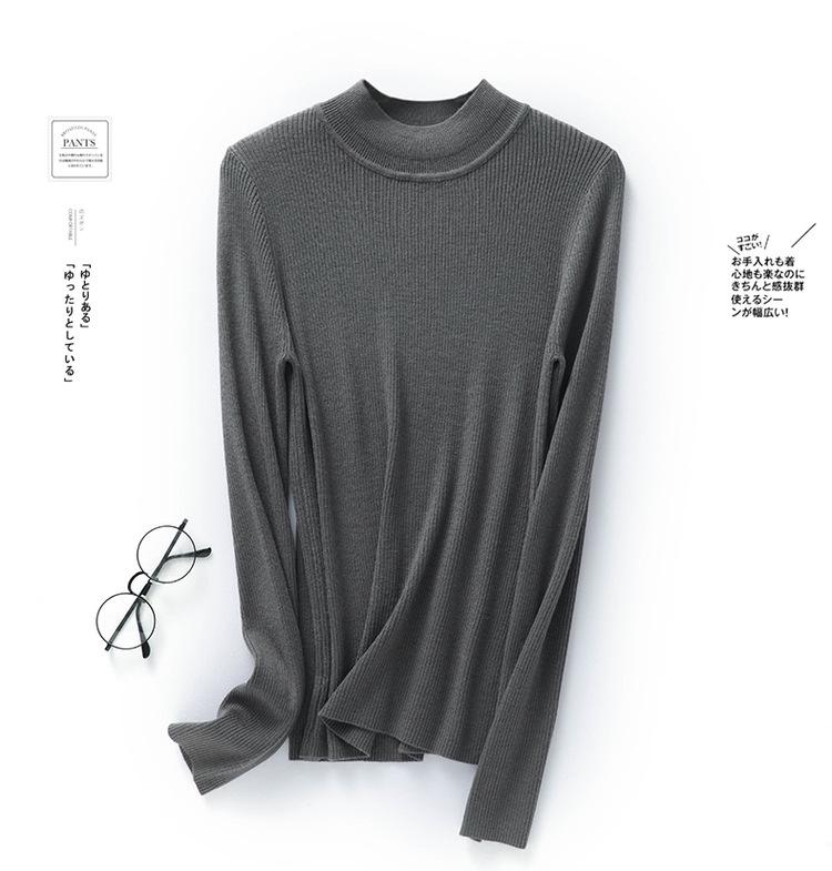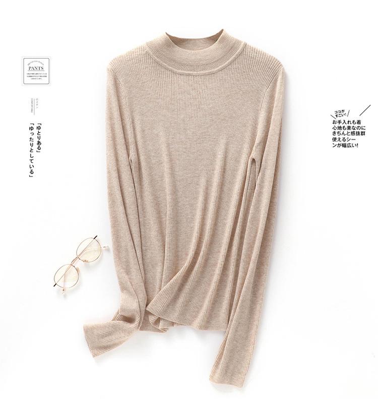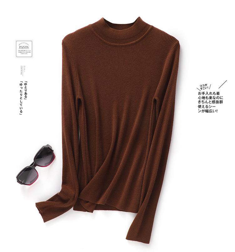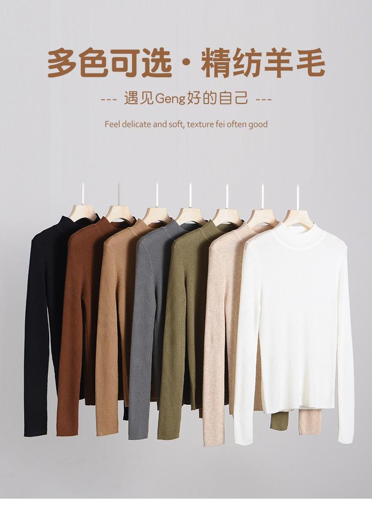 Suéter de lana de color sólido para mujer, prenda de punto nueva para otoño e invierno, estilo coreano, elegante, ajustado, de cuello alto medio, para mujer